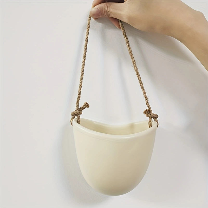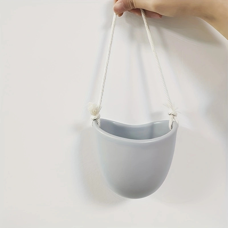 海乐跨境亚马逊绿植园艺摆件装饰壁挂式套2组合多肉陶瓷吊盆花盆带绳