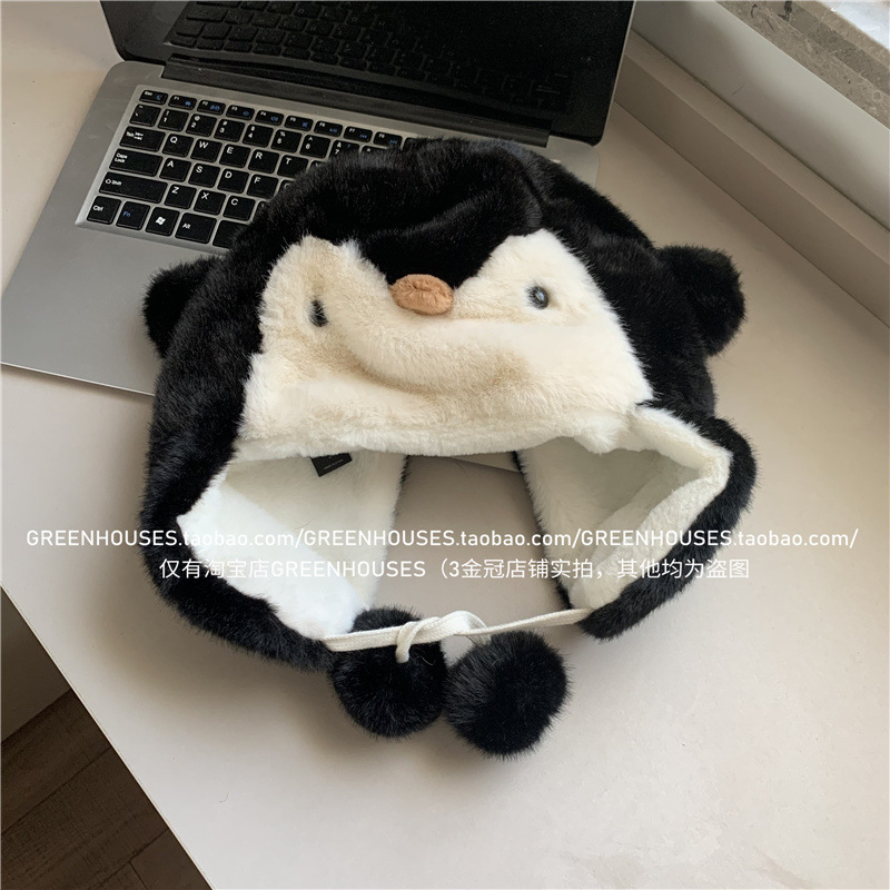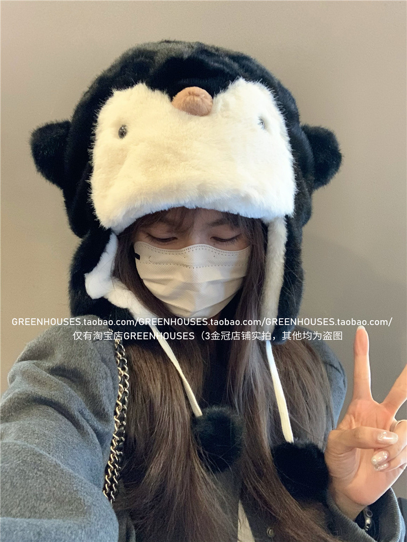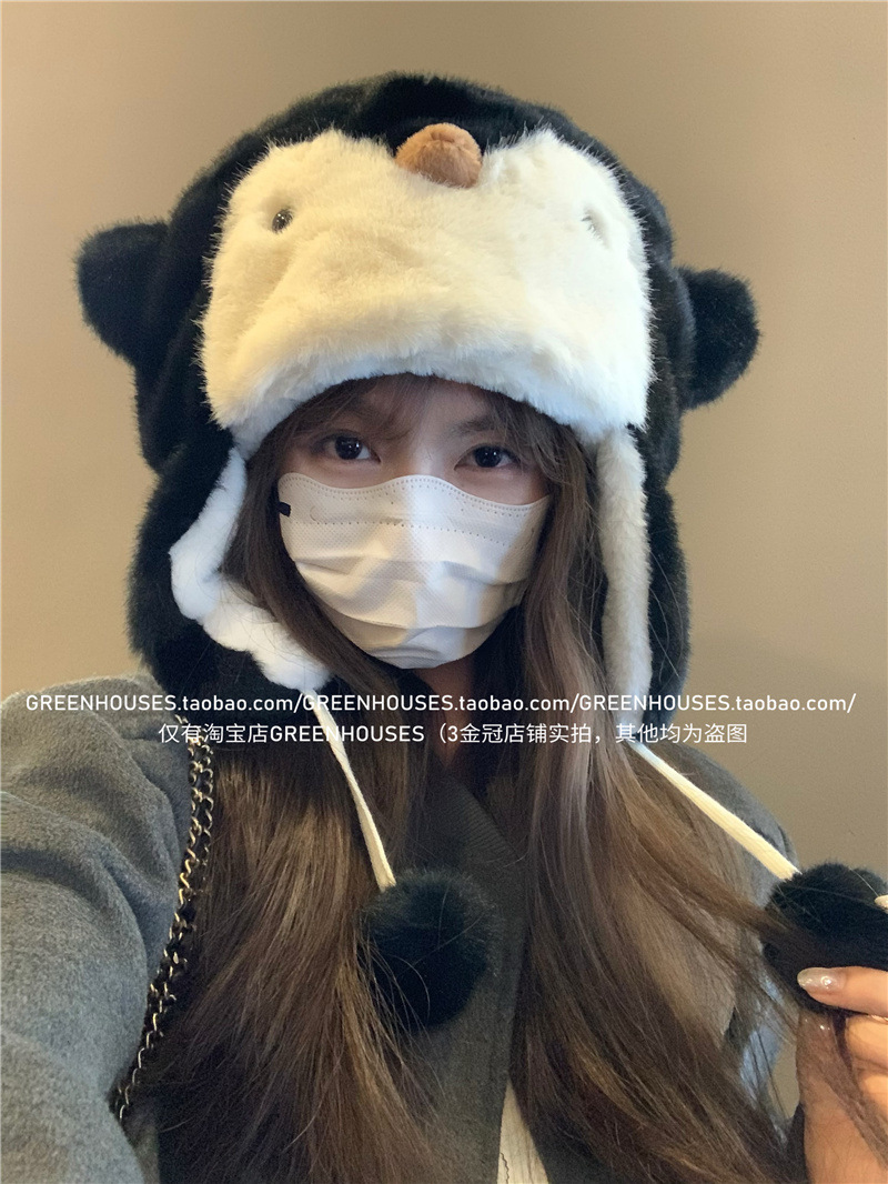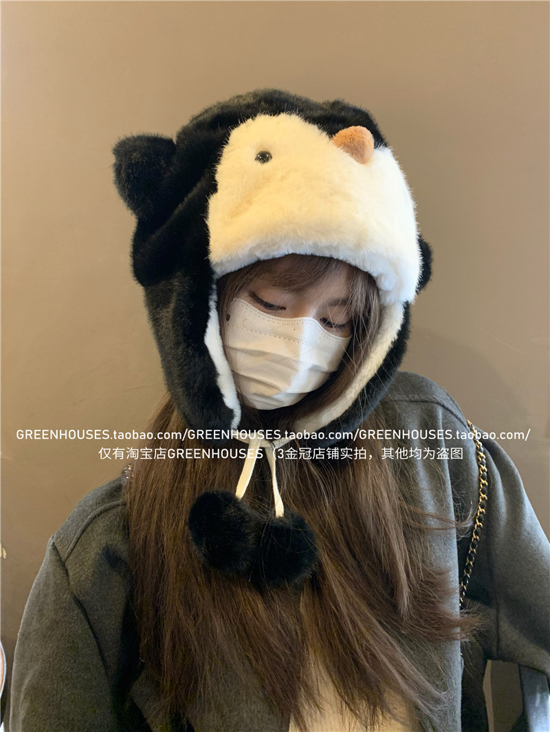 귀여운 펭귄 솜털 모자 어린이의 가을과 겨울 방한 따뜻한 귀 보호 레이 펑 모자 얼굴-작은 승마 스키 모자스토어 가기