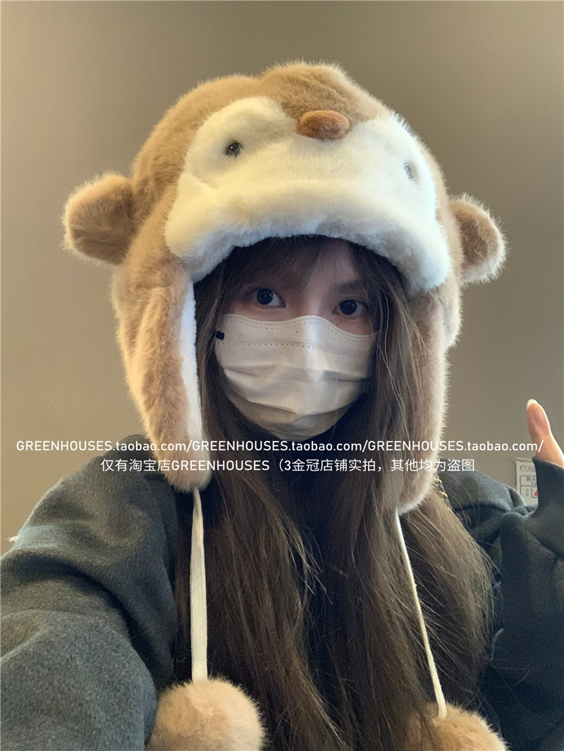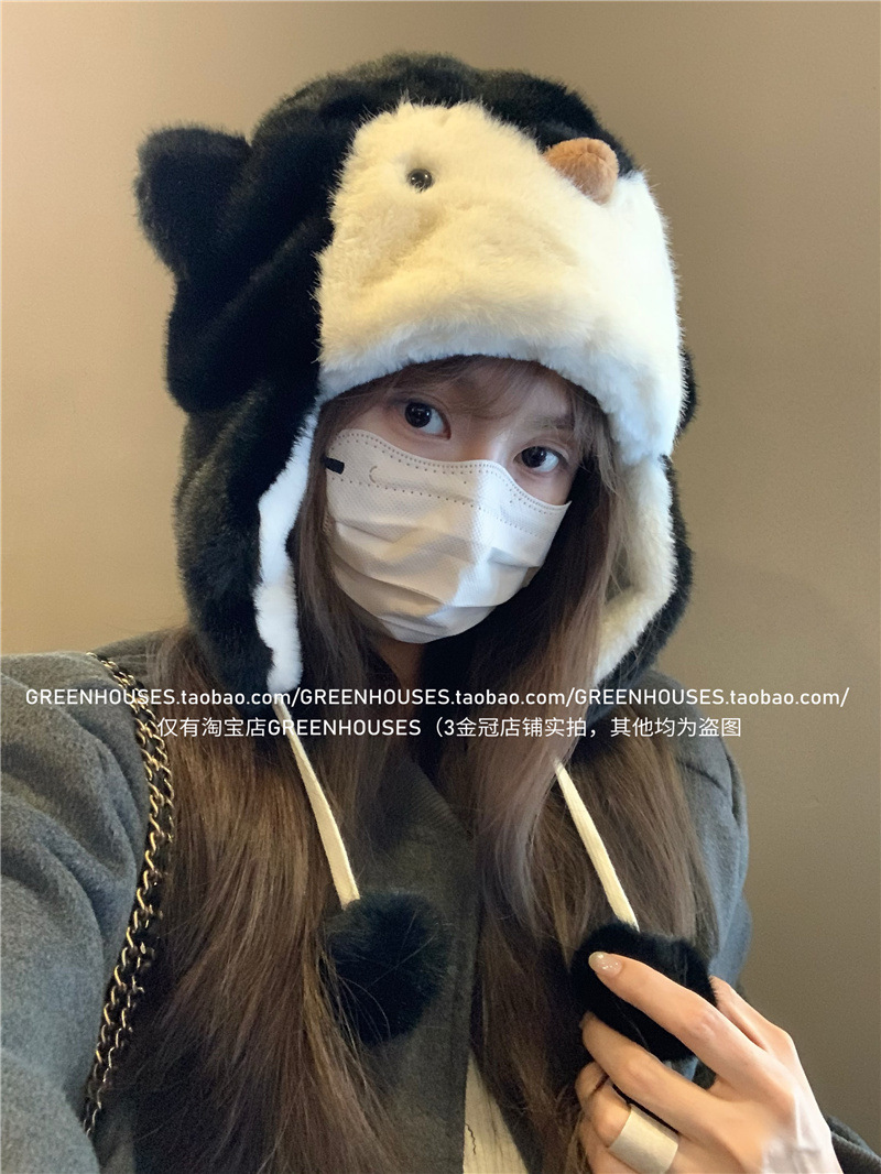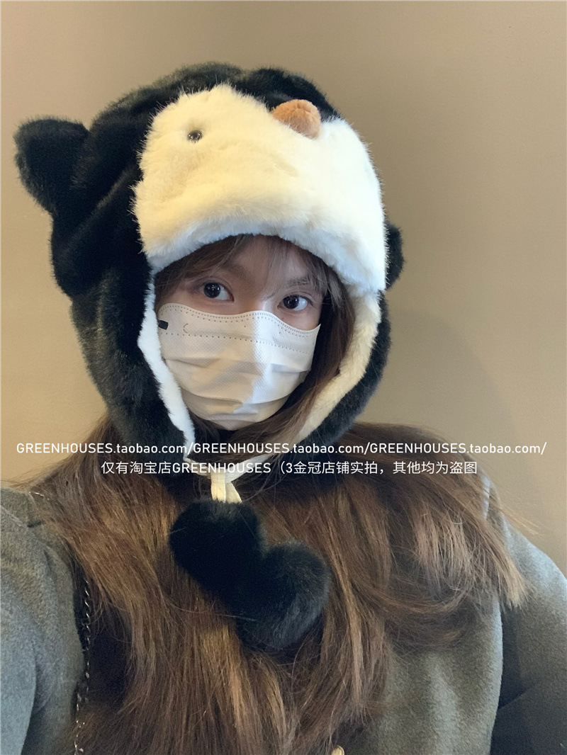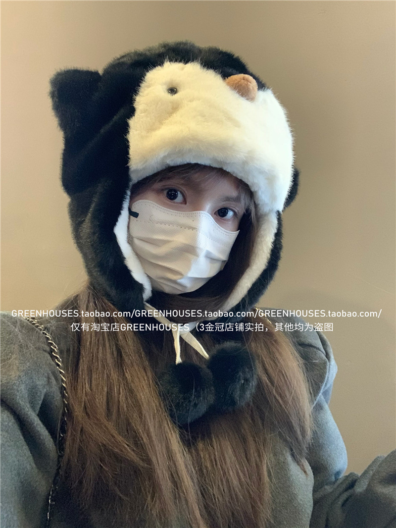 귀여운 펭귄 솜털 모자 어린이의 가을과 겨울 방한 따뜻한 귀 보호 레이 펑 모자 얼굴-작은 승마 스키 모자스토어 가기