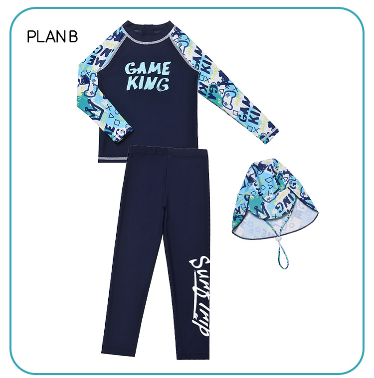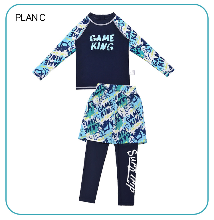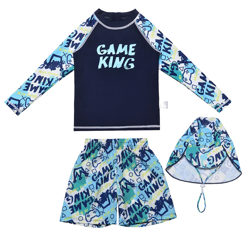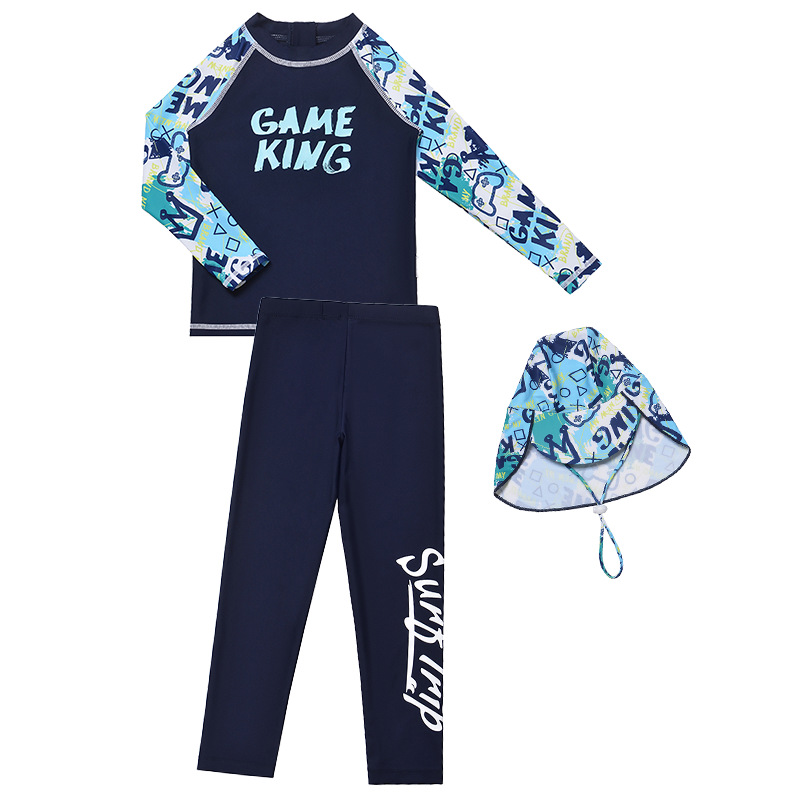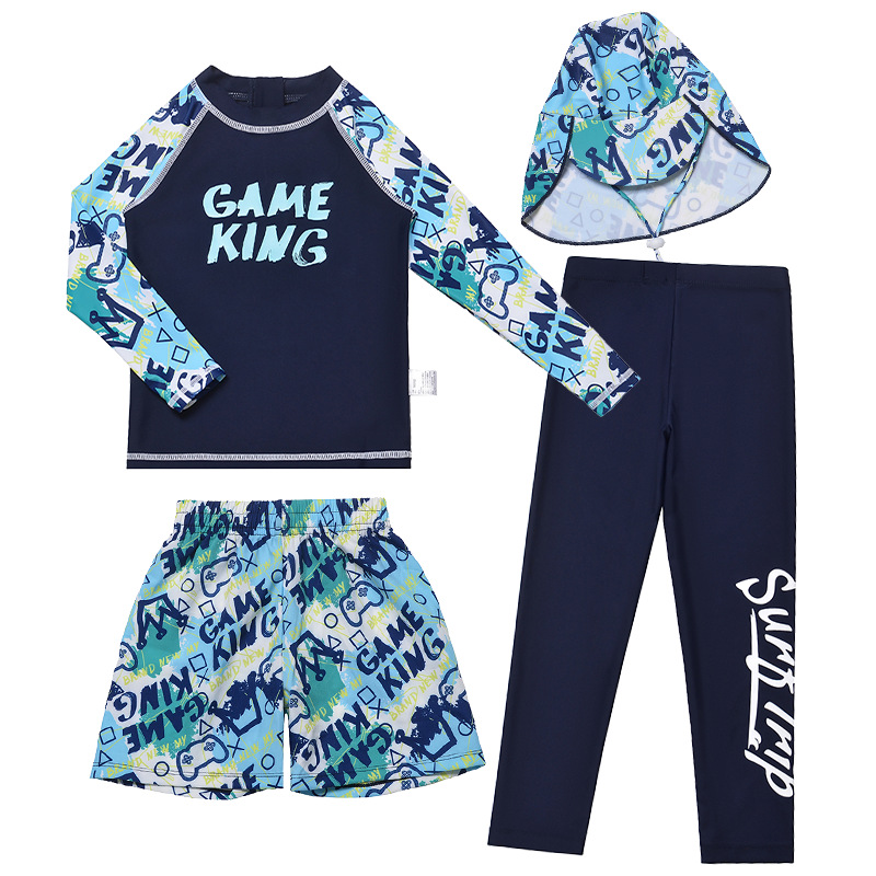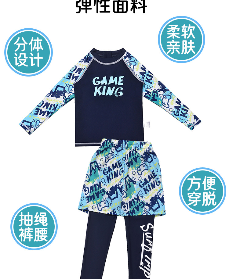 아동 수영복 소년 스플릿 긴팔 바지 2025 새로운 중대형 아동 소년 수영복 자외선 차단 수영 트렁크 정장