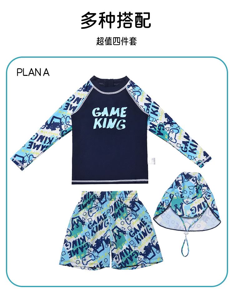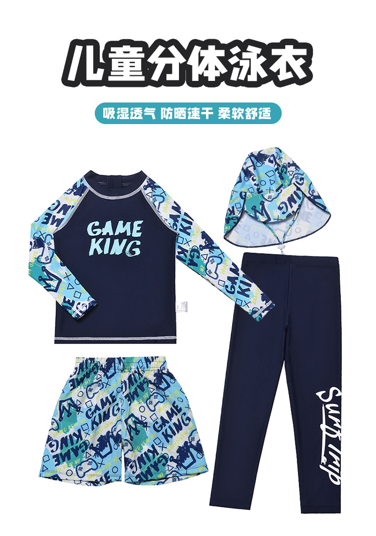 아동 수영복 소년 스플릿 긴팔 바지 2025 새로운 중대형 아동 소년 수영복 자외선 차단 수영 트렁크 정장스토어 가기