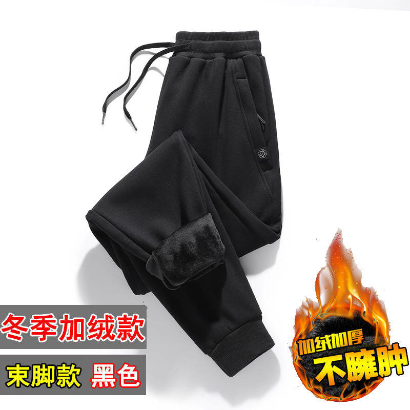 남자 바지 기모 두꺼운 따뜻한 바지 남자 캐주얼 바지 가을과 겨울 양털 바깥 옷 번들 발 스포츠 면 바지스토어 가기