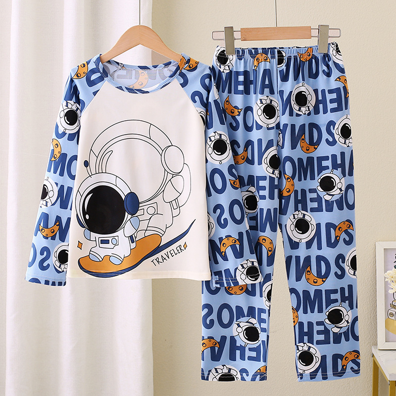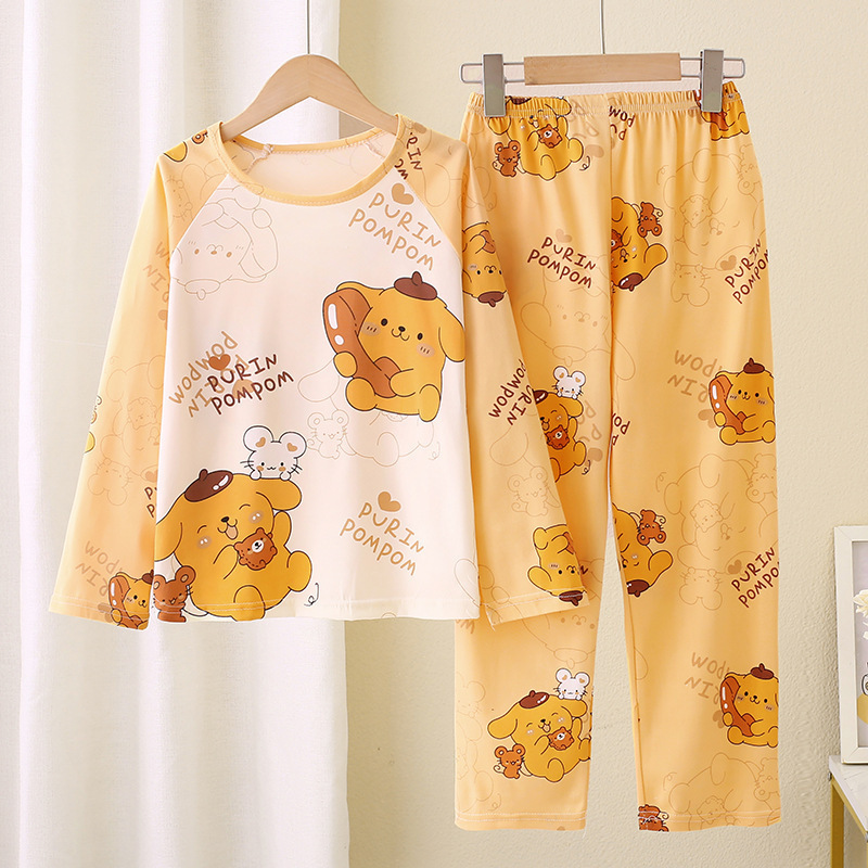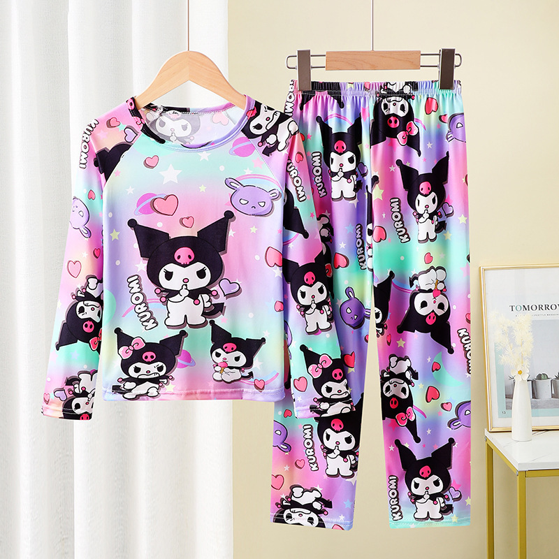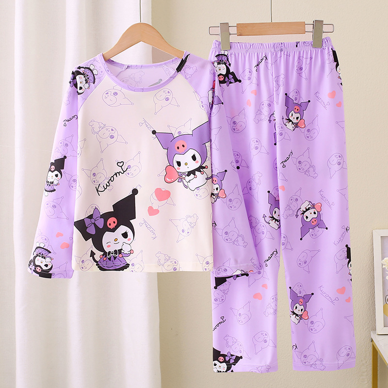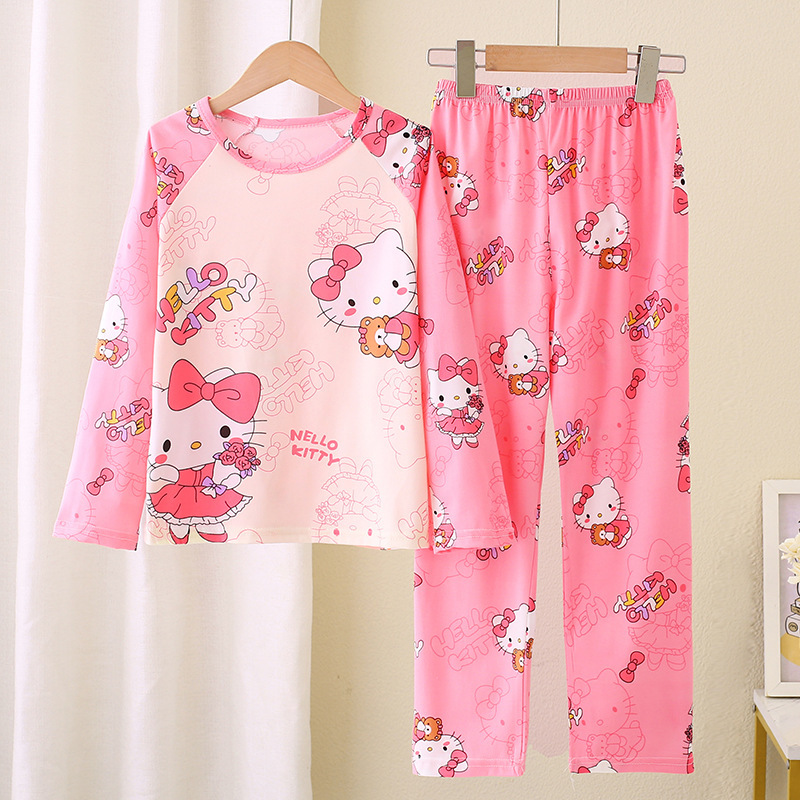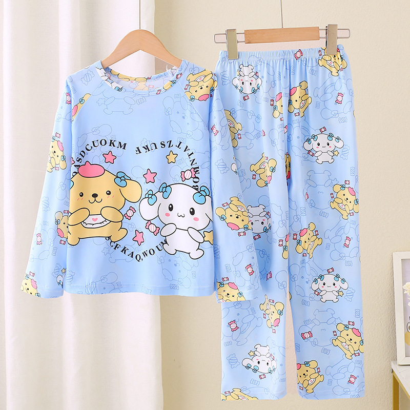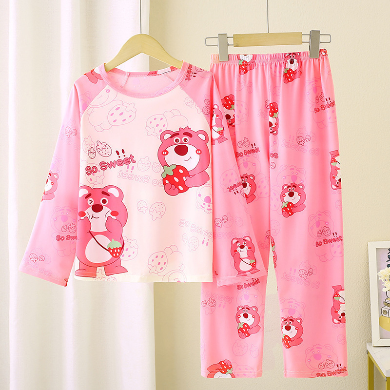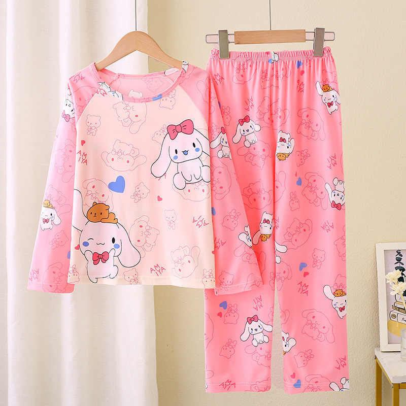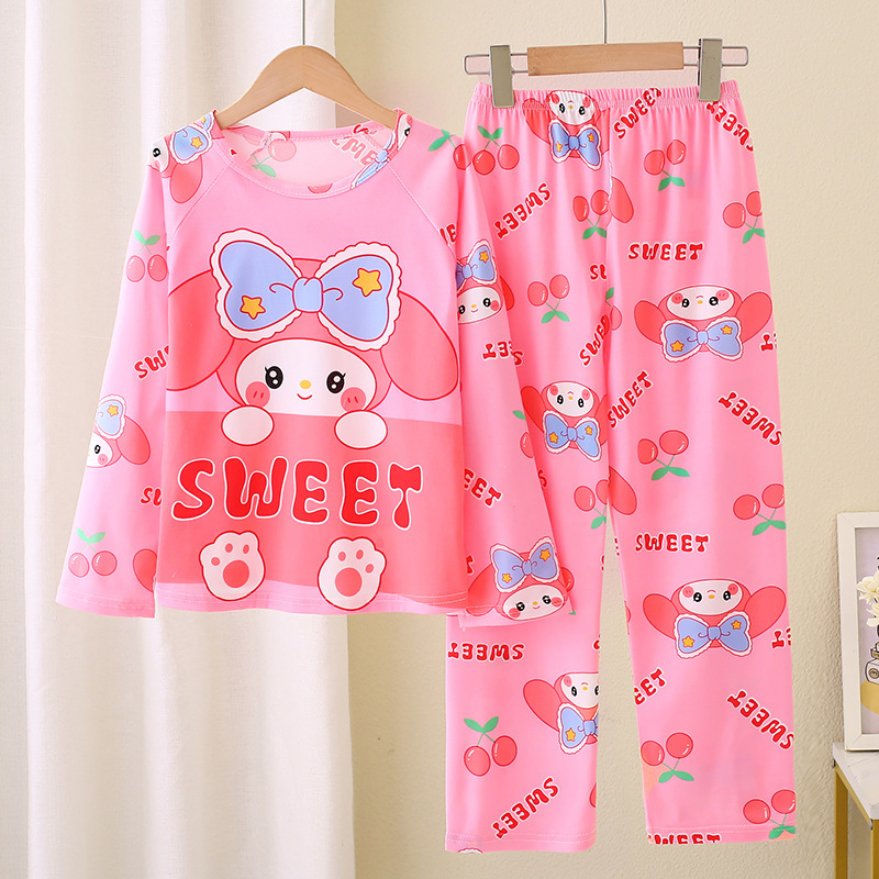 2024 새로운 어린이 잠옷 소녀 봄, 가을 긴팔 얇은 양복 어린 소녀와 큰 어린이 여름 가정 의류 도매스토어 가기