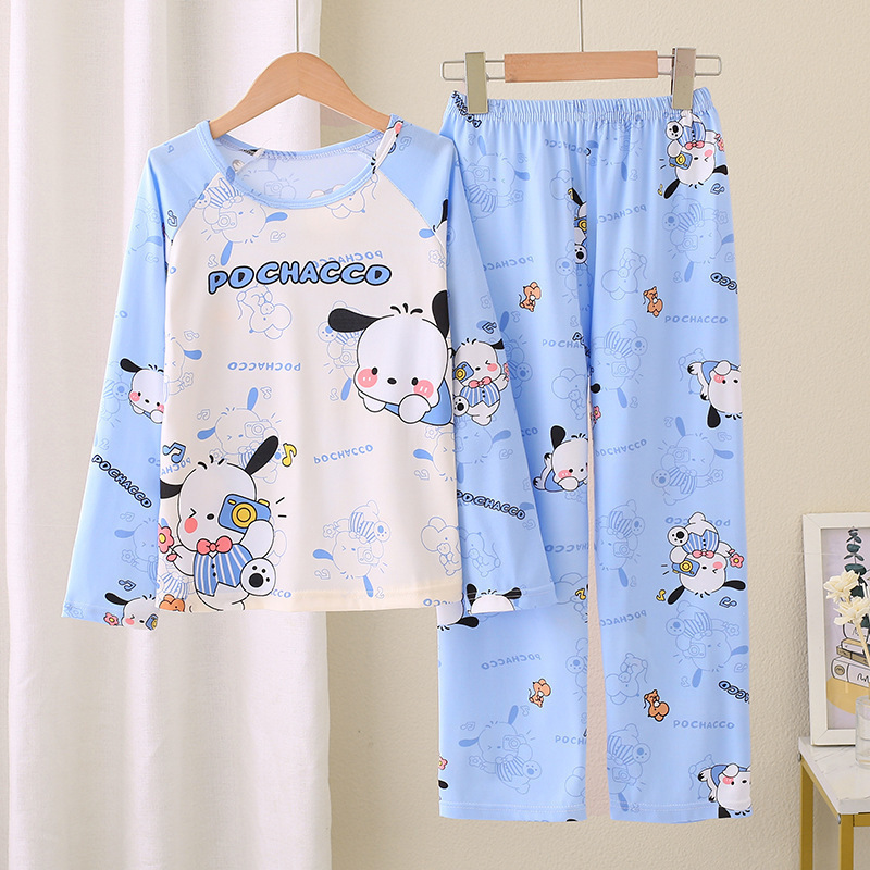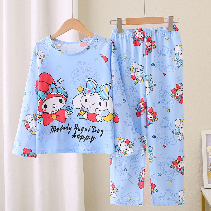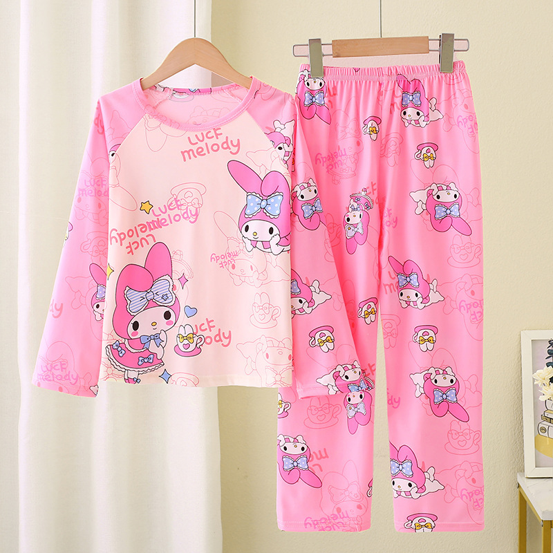 2024 새로운 어린이 잠옷 소녀 봄, 가을 긴팔 얇은 양복 어린 소녀와 큰 어린이 여름 가정 의류 도매