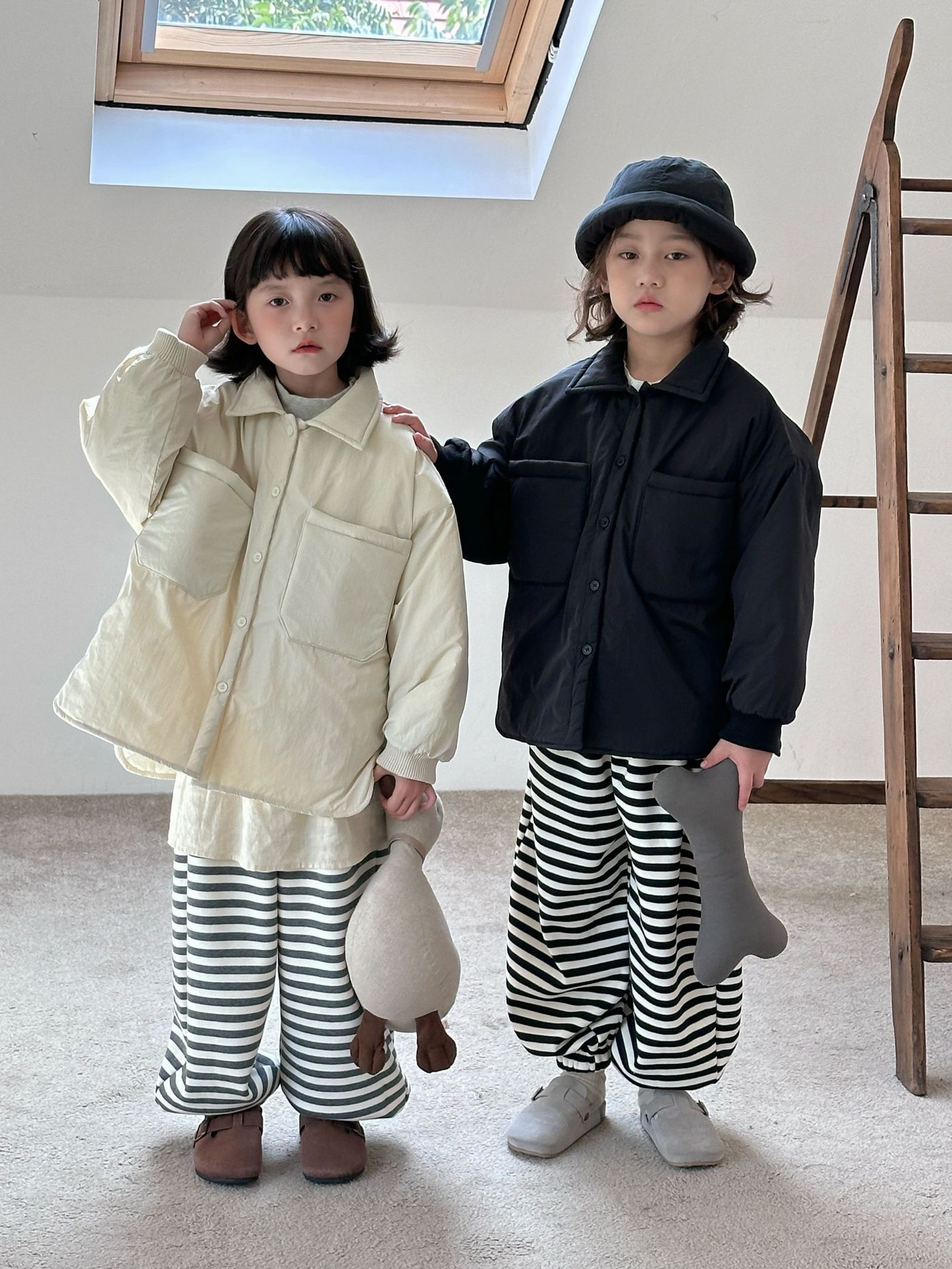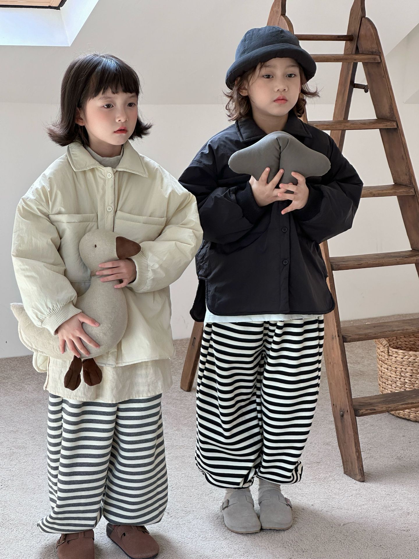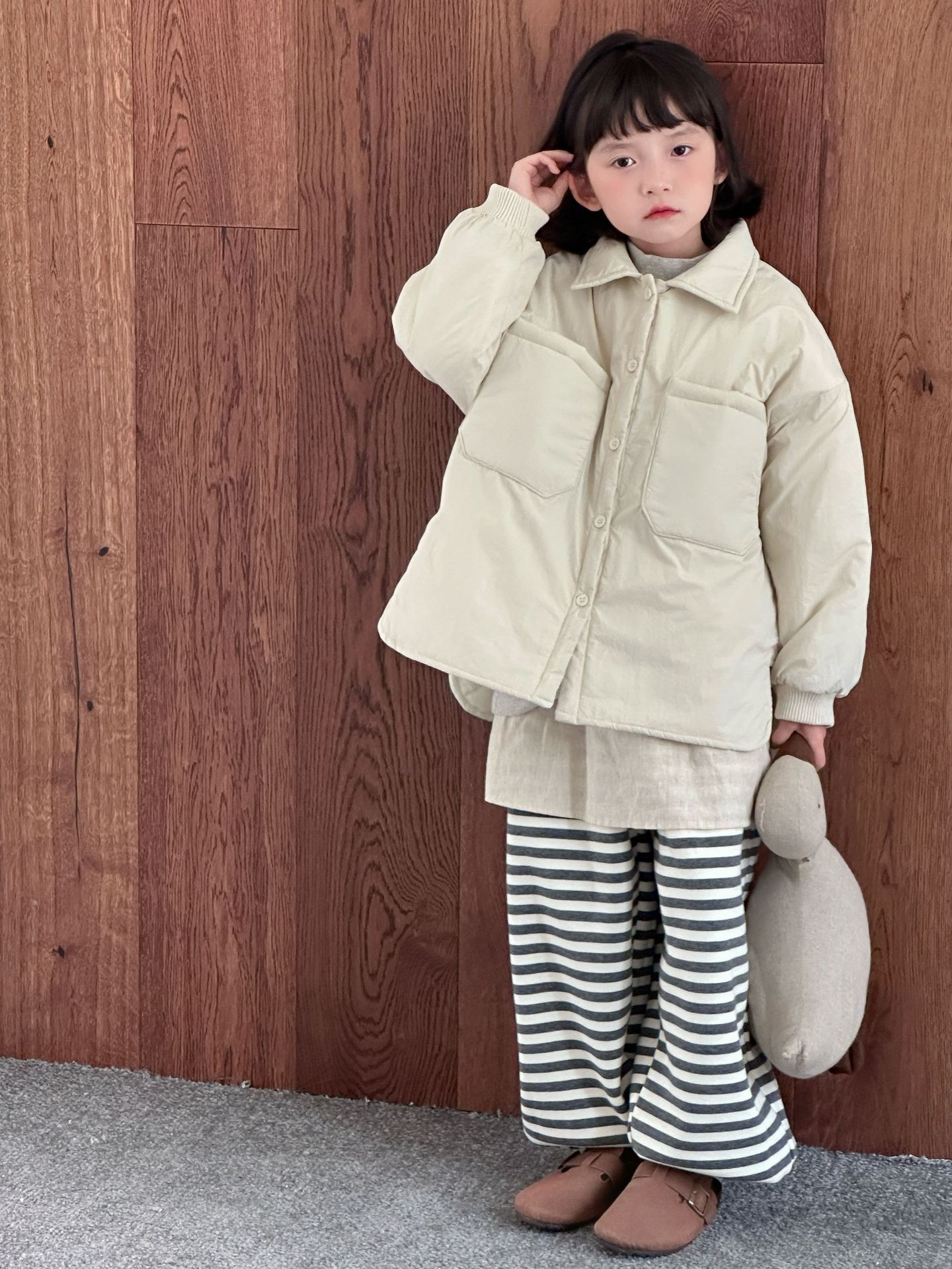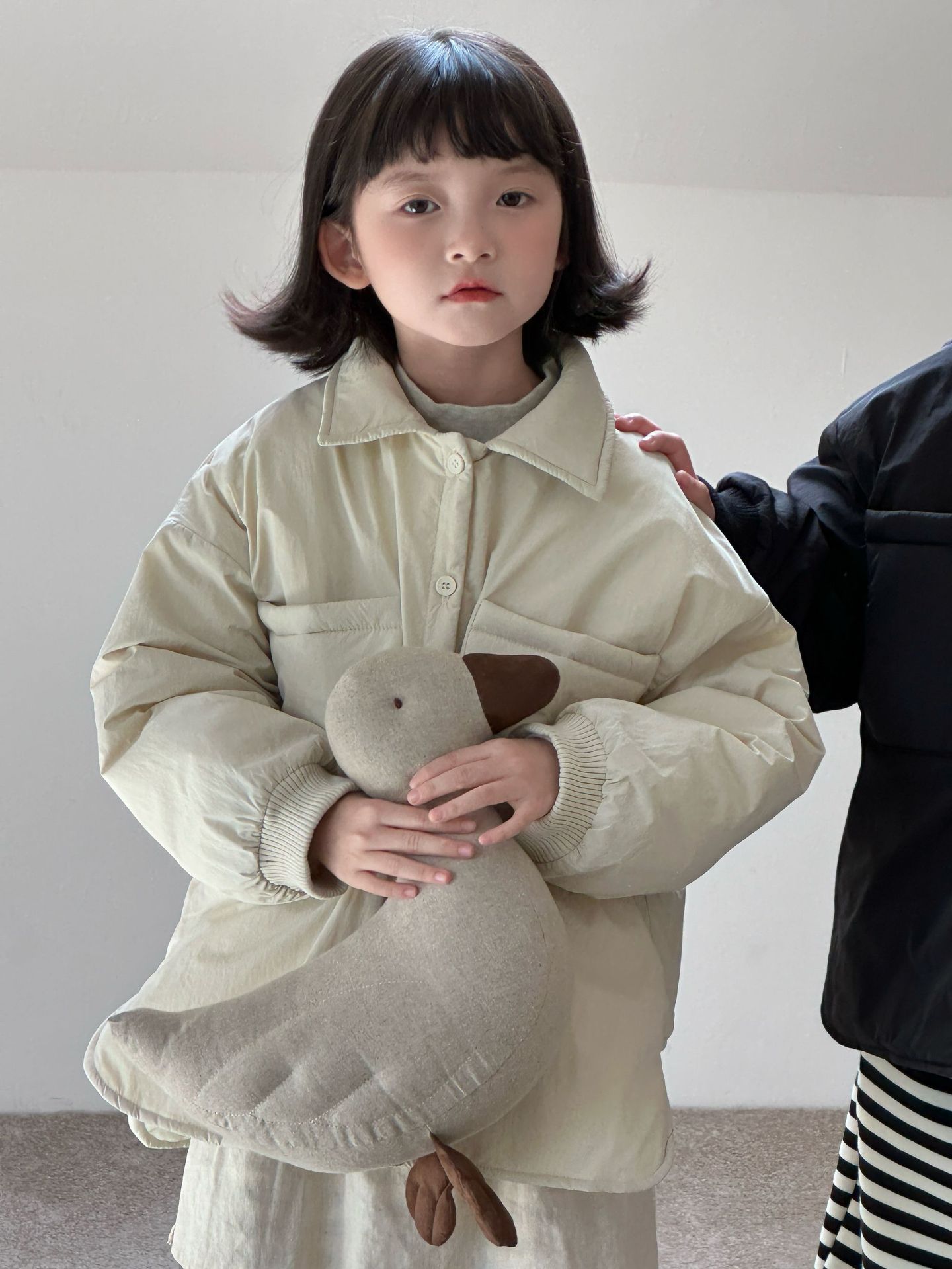 【클리어런스 세일】2025 겨울 신상 아동용 단색 캐주얼 누빔 셔츠 남녀 아동용 보온 면 셔츠스토어 가기