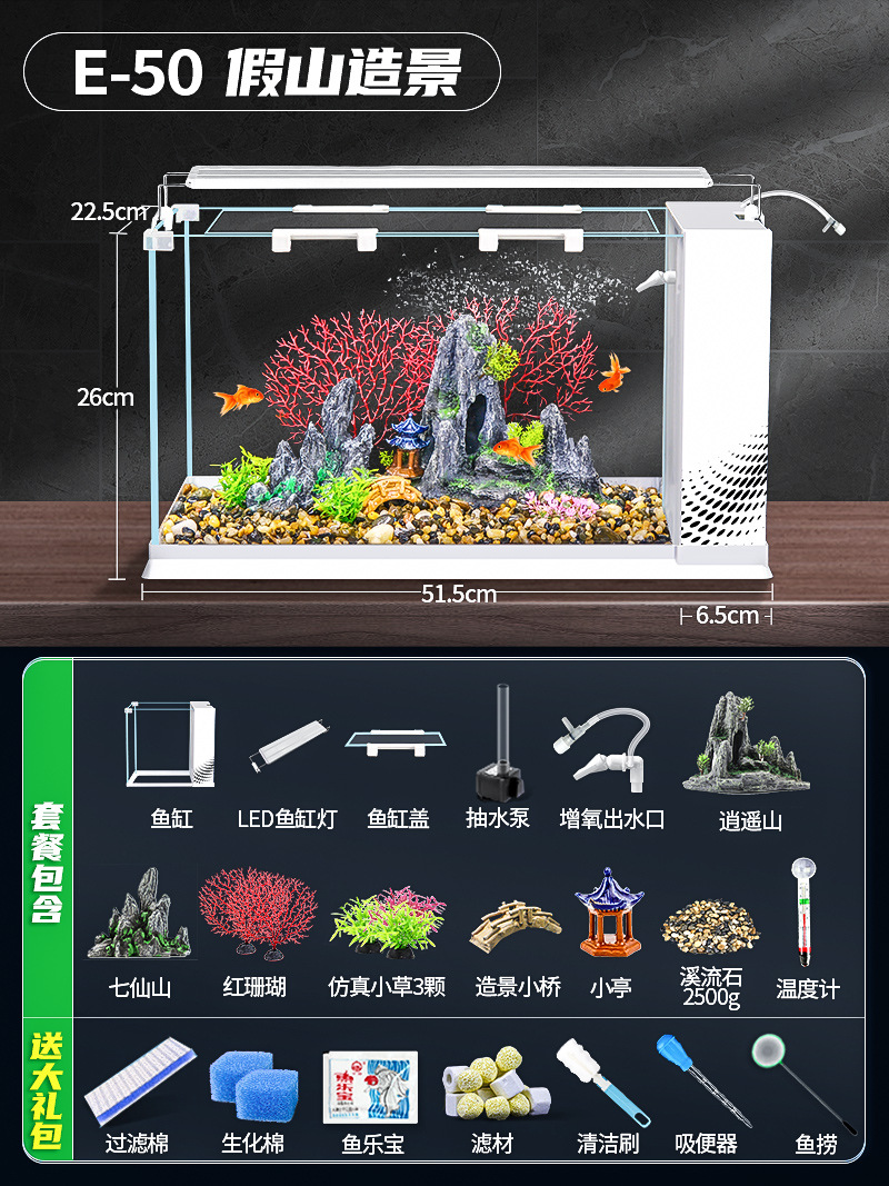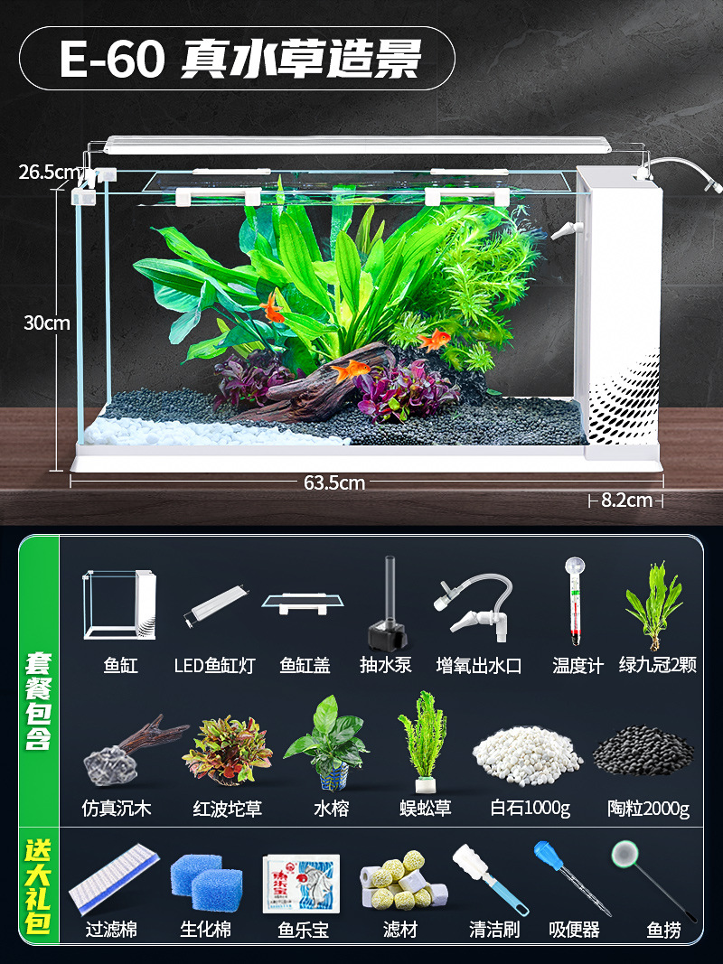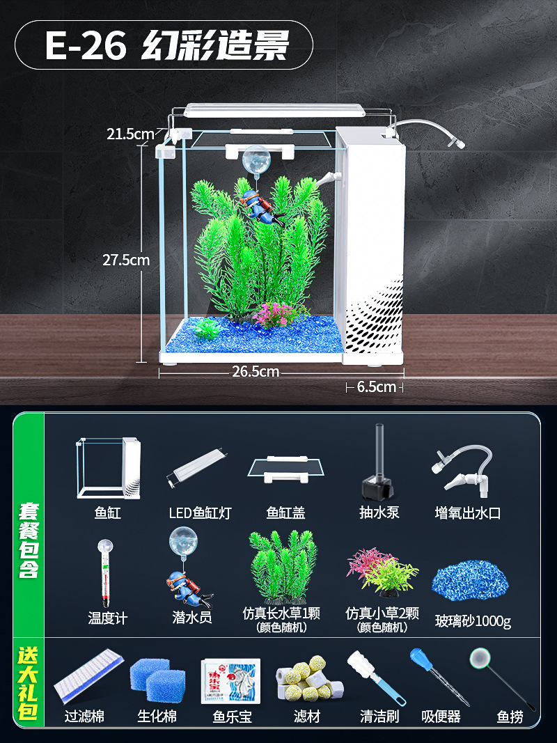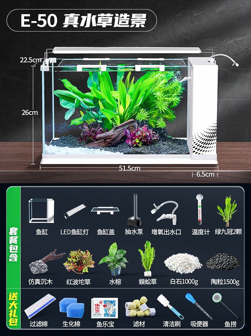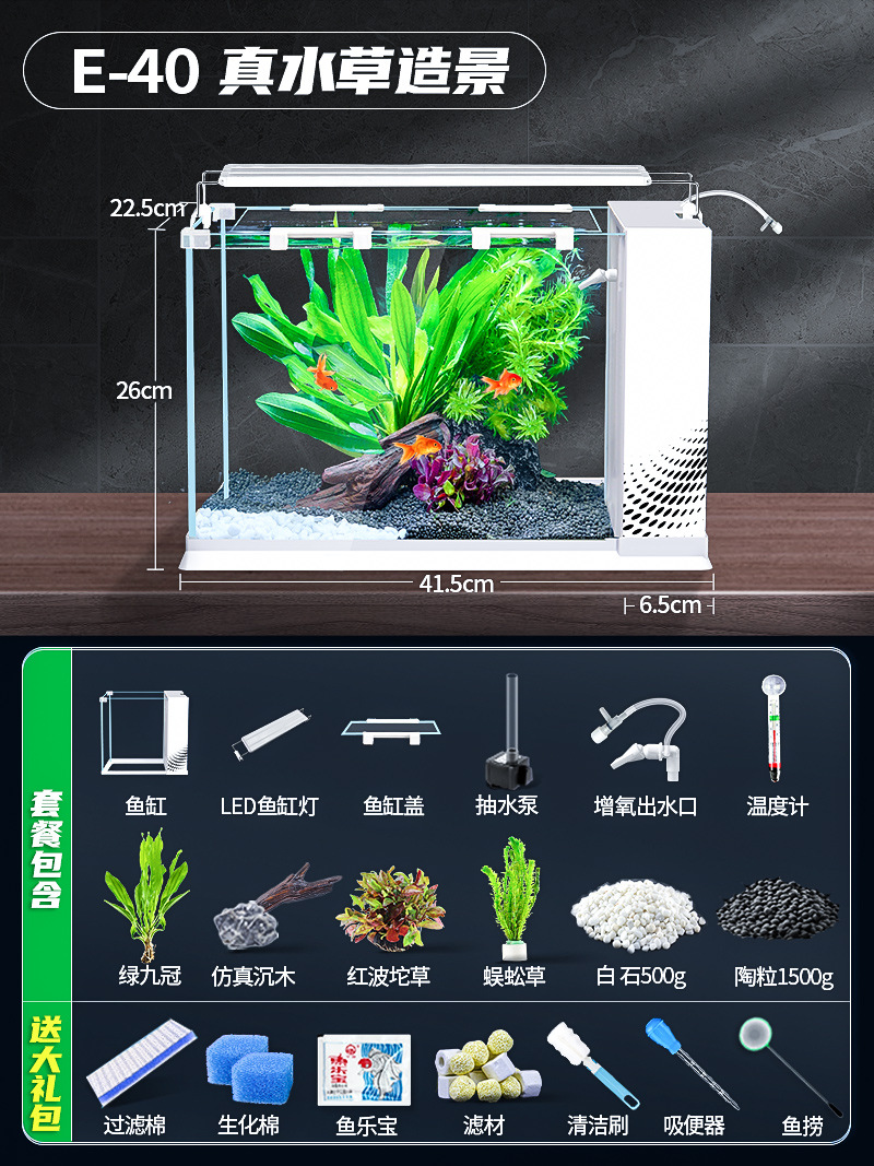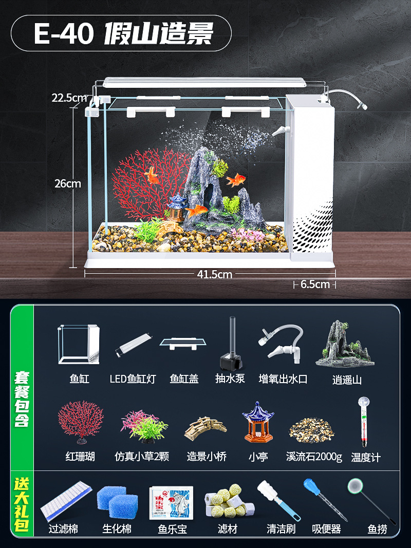 데스크탑 생태 새로운 금붕어 유리 슈퍼 화이트 사이드 필터 산소 조경 2024 양동이 물고기 수족관 작은 거실