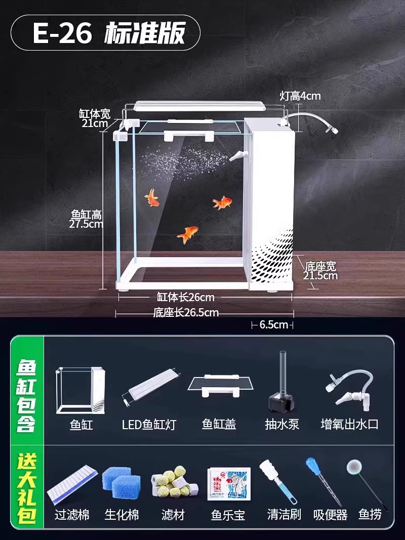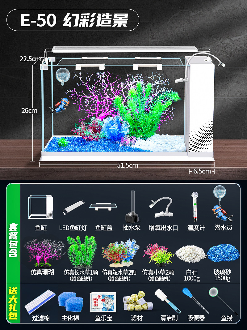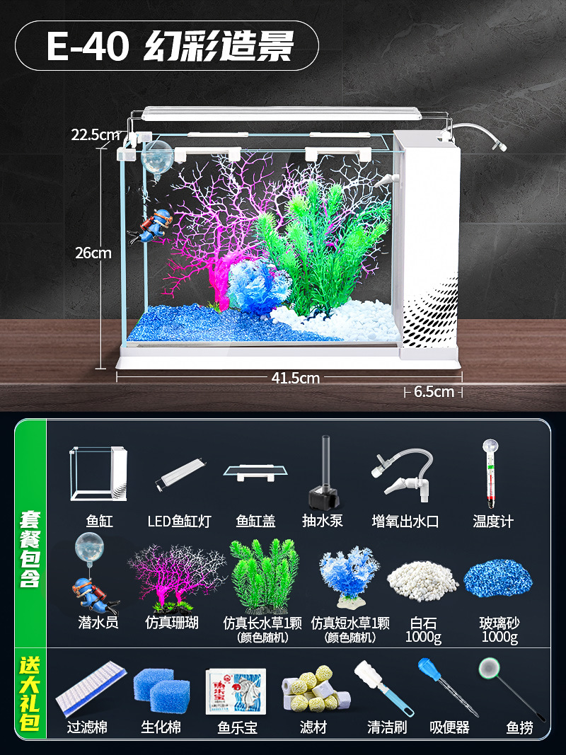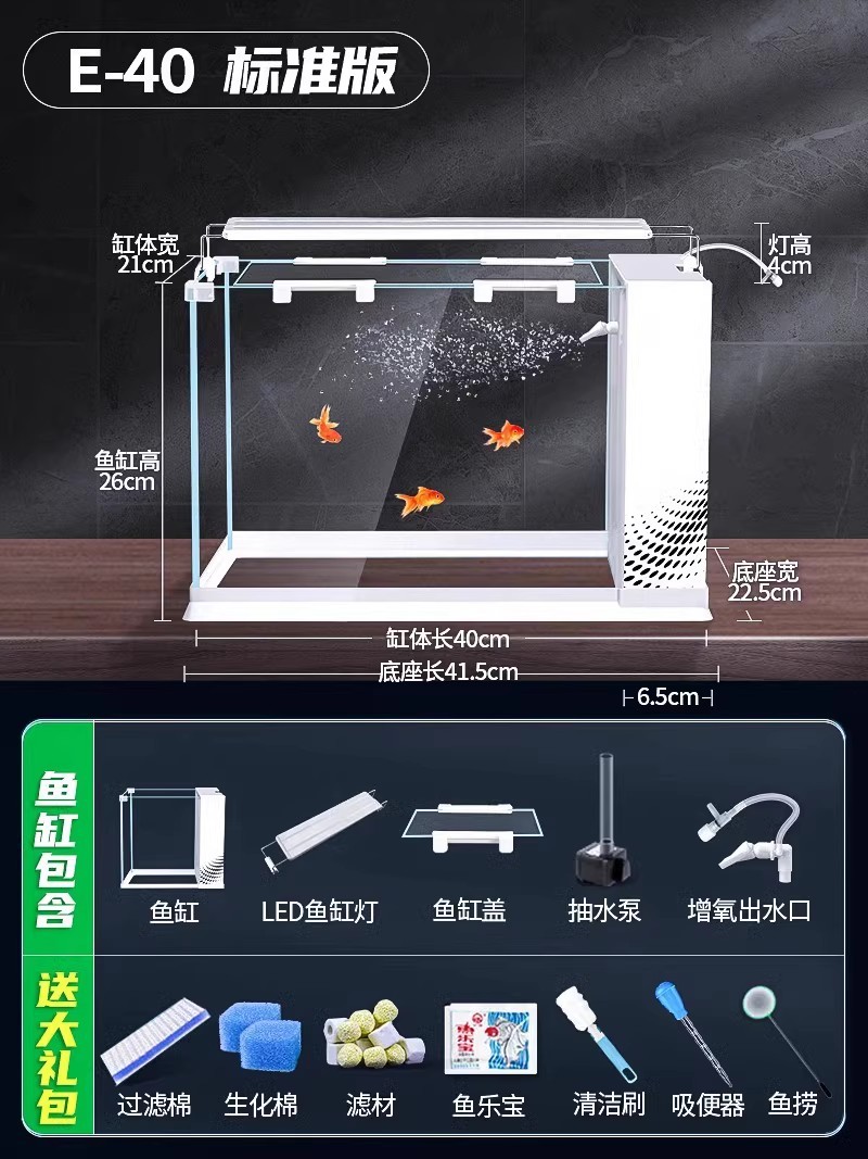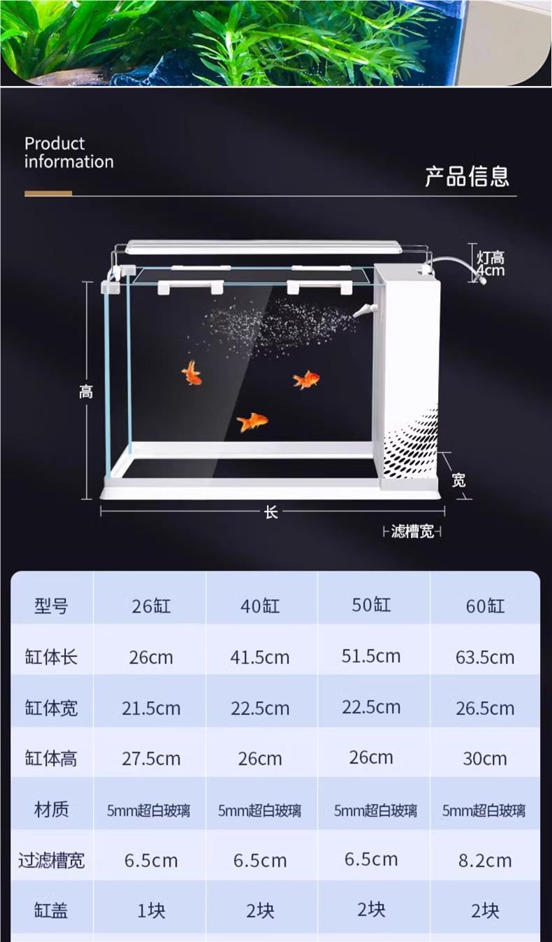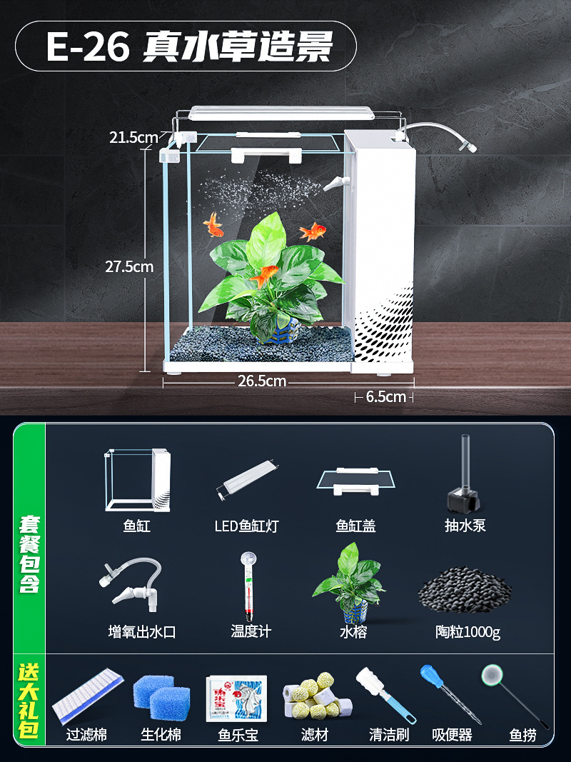 데스크탑 생태 새로운 금붕어 유리 슈퍼 화이트 사이드 필터 산소 조경 2024 양동이 물고기 수족관 작은 거실
