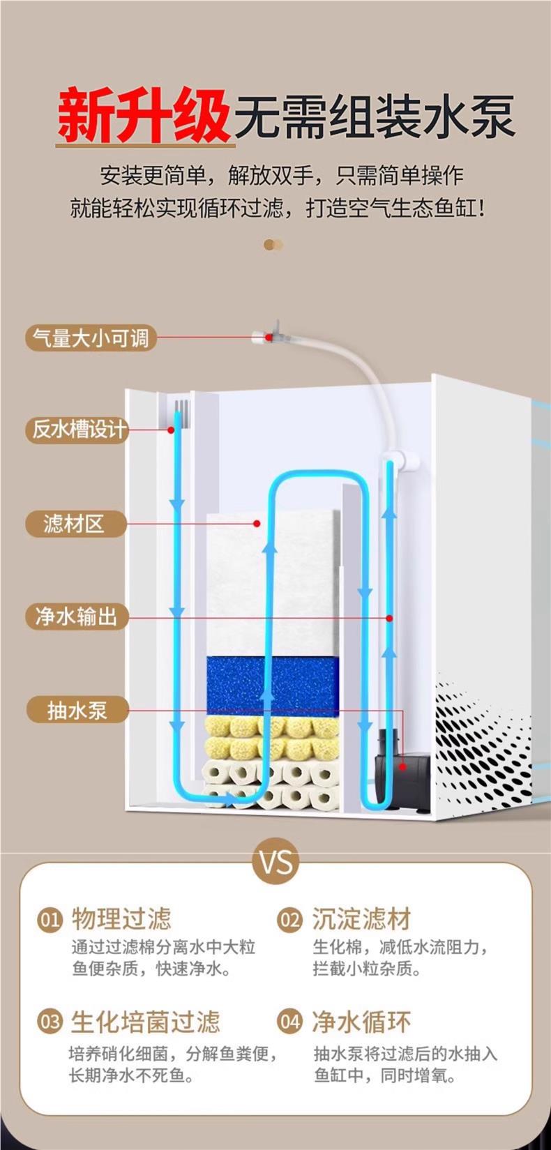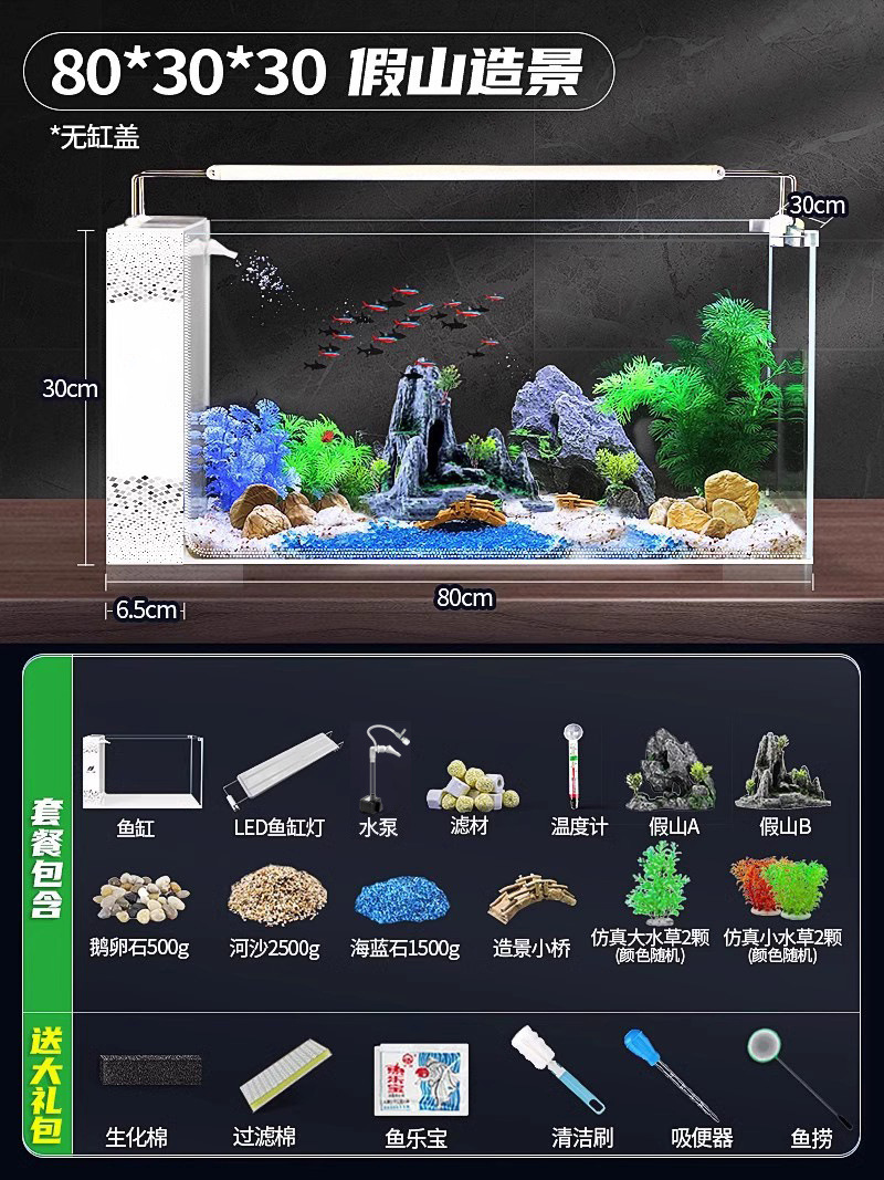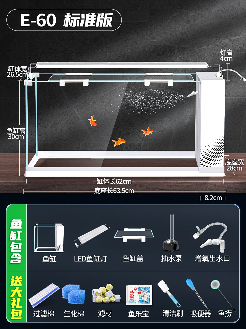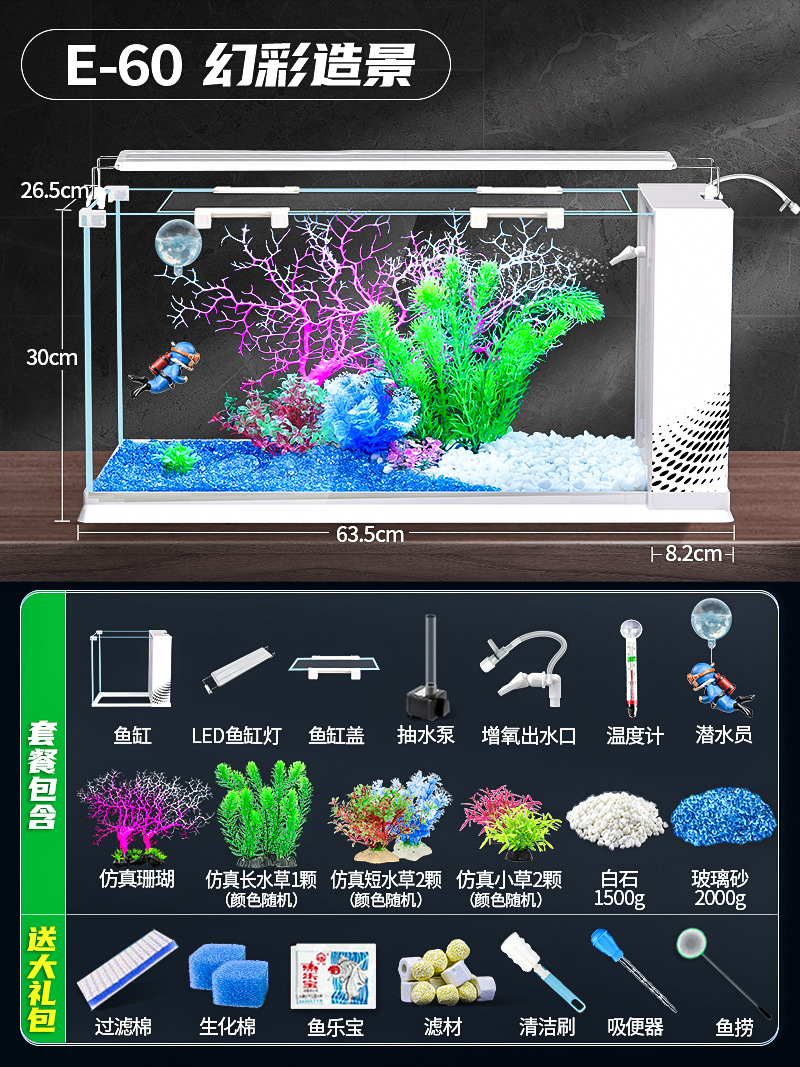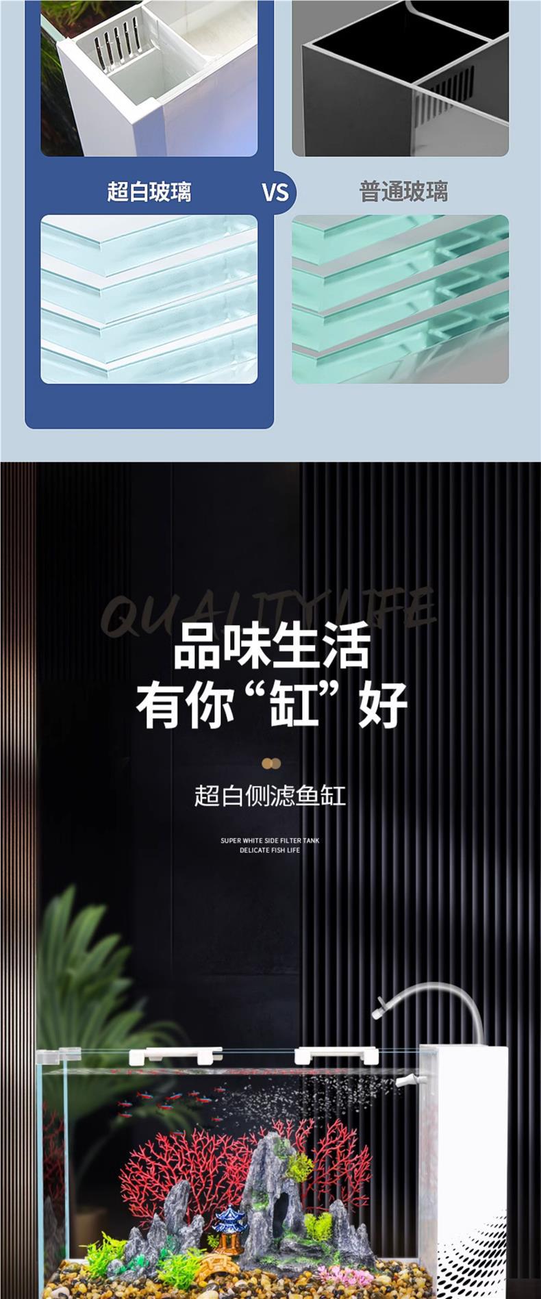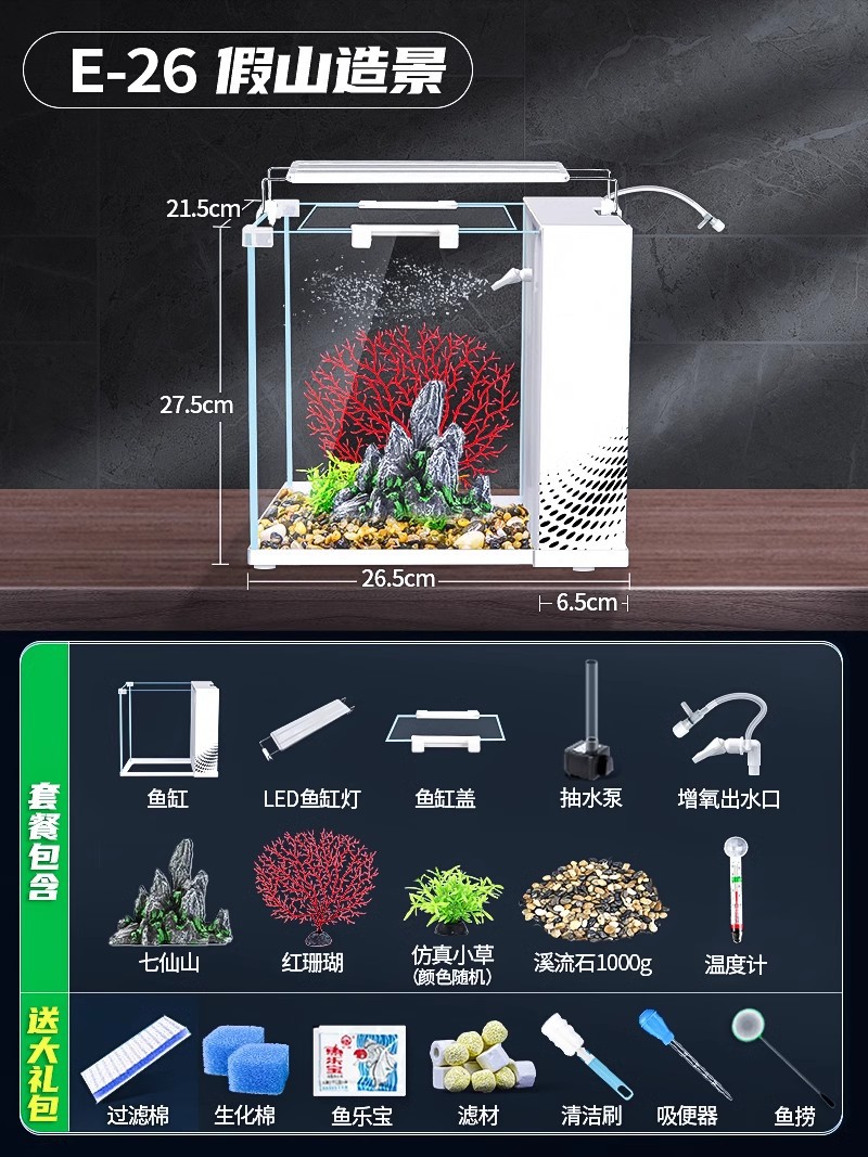 데스크탑 생태 새로운 금붕어 유리 슈퍼 화이트 사이드 필터 산소 조경 2024 양동이 물고기 수족관 작은 거실
