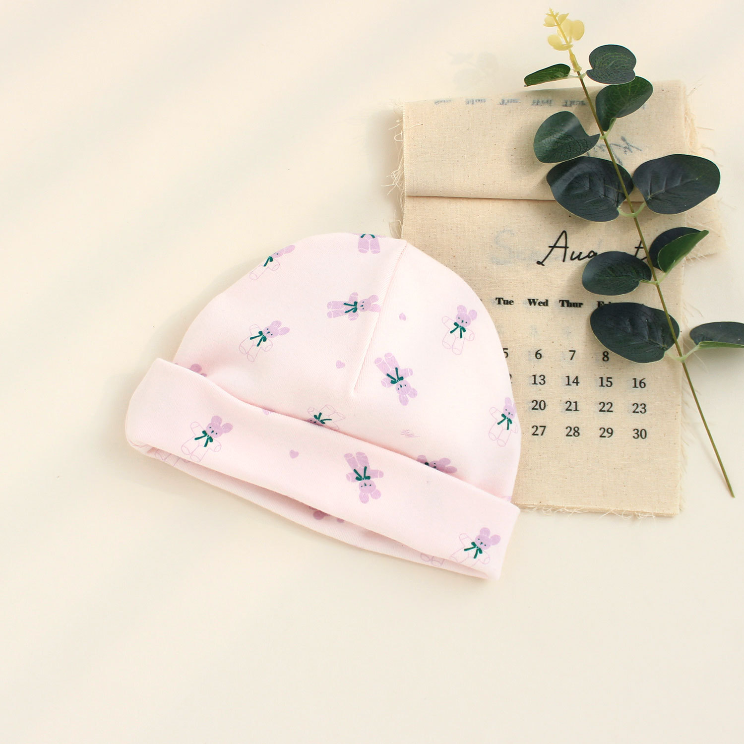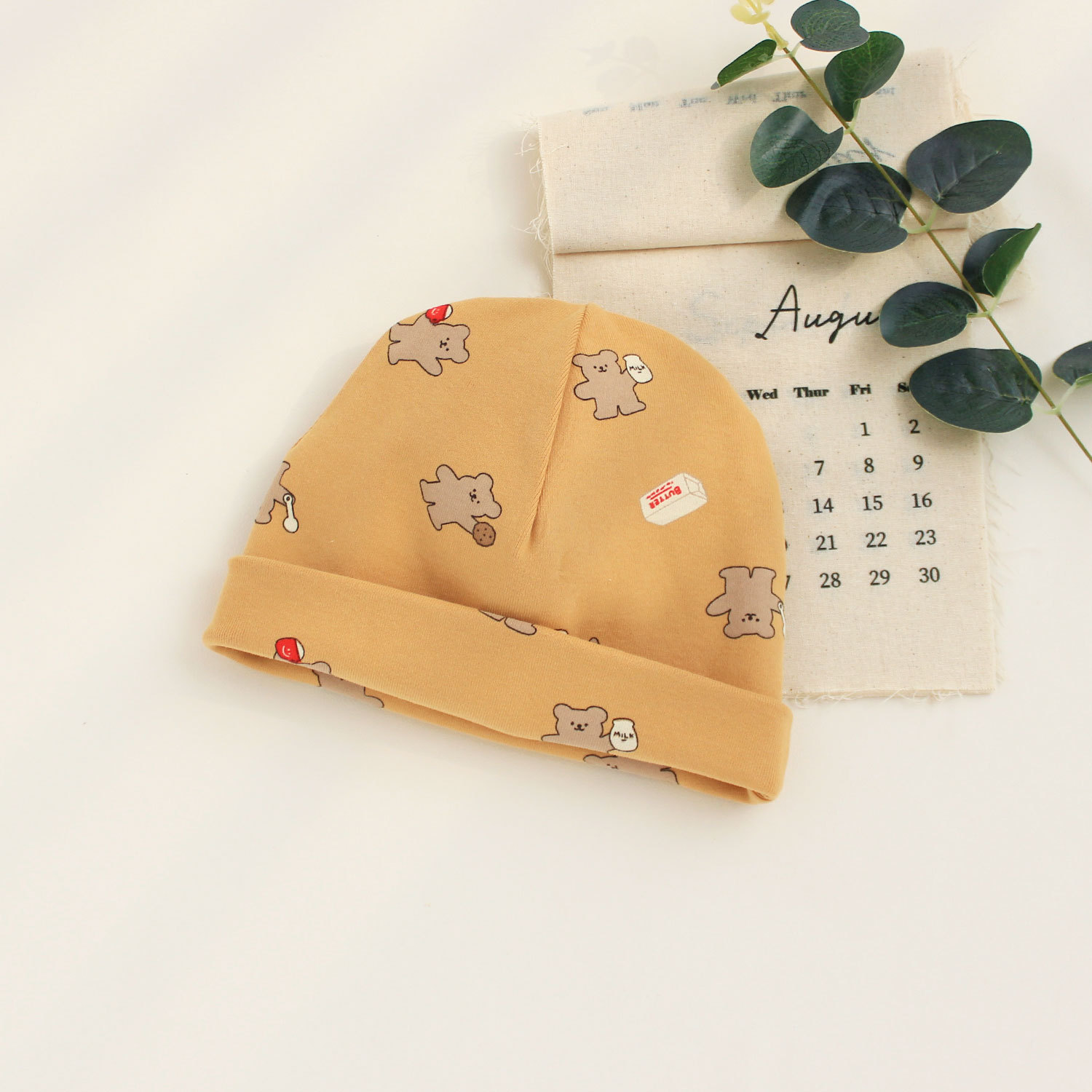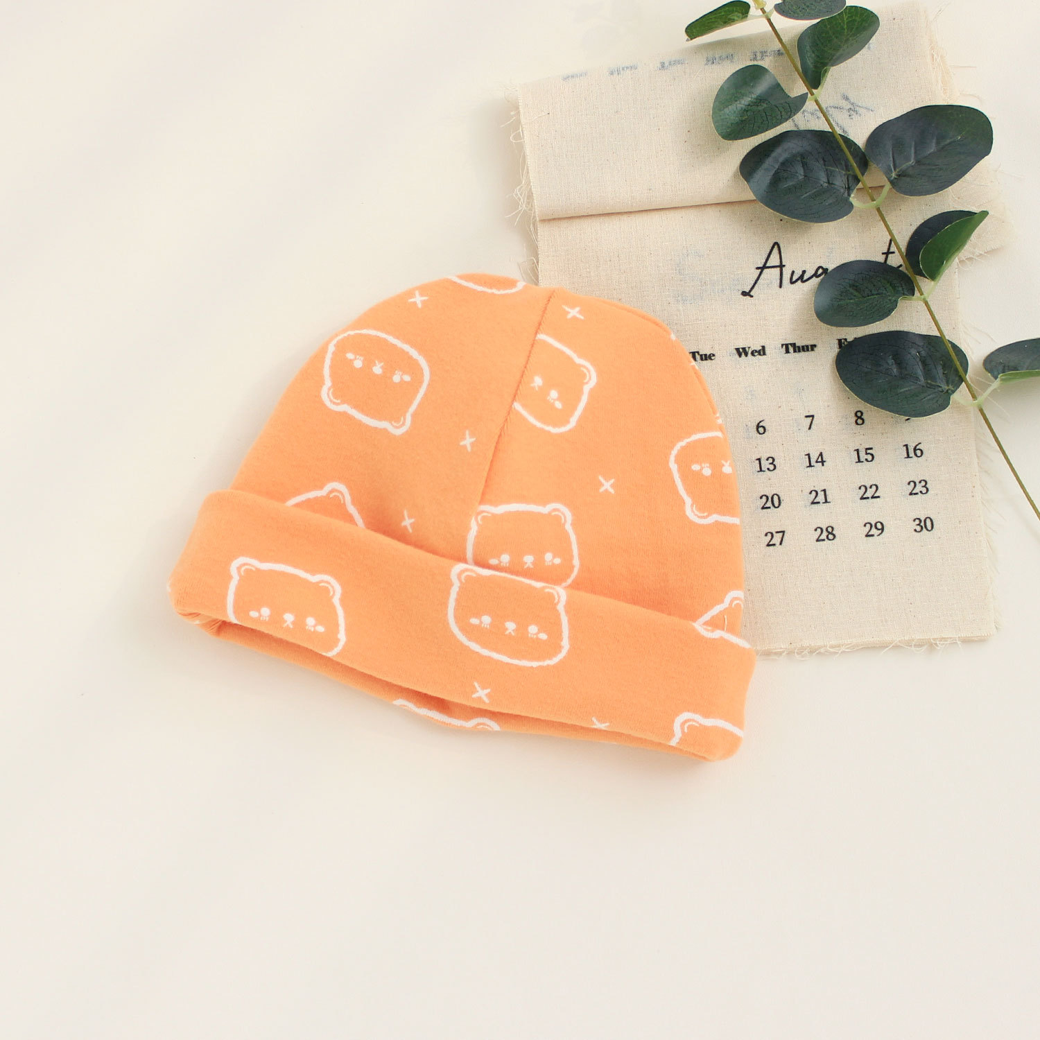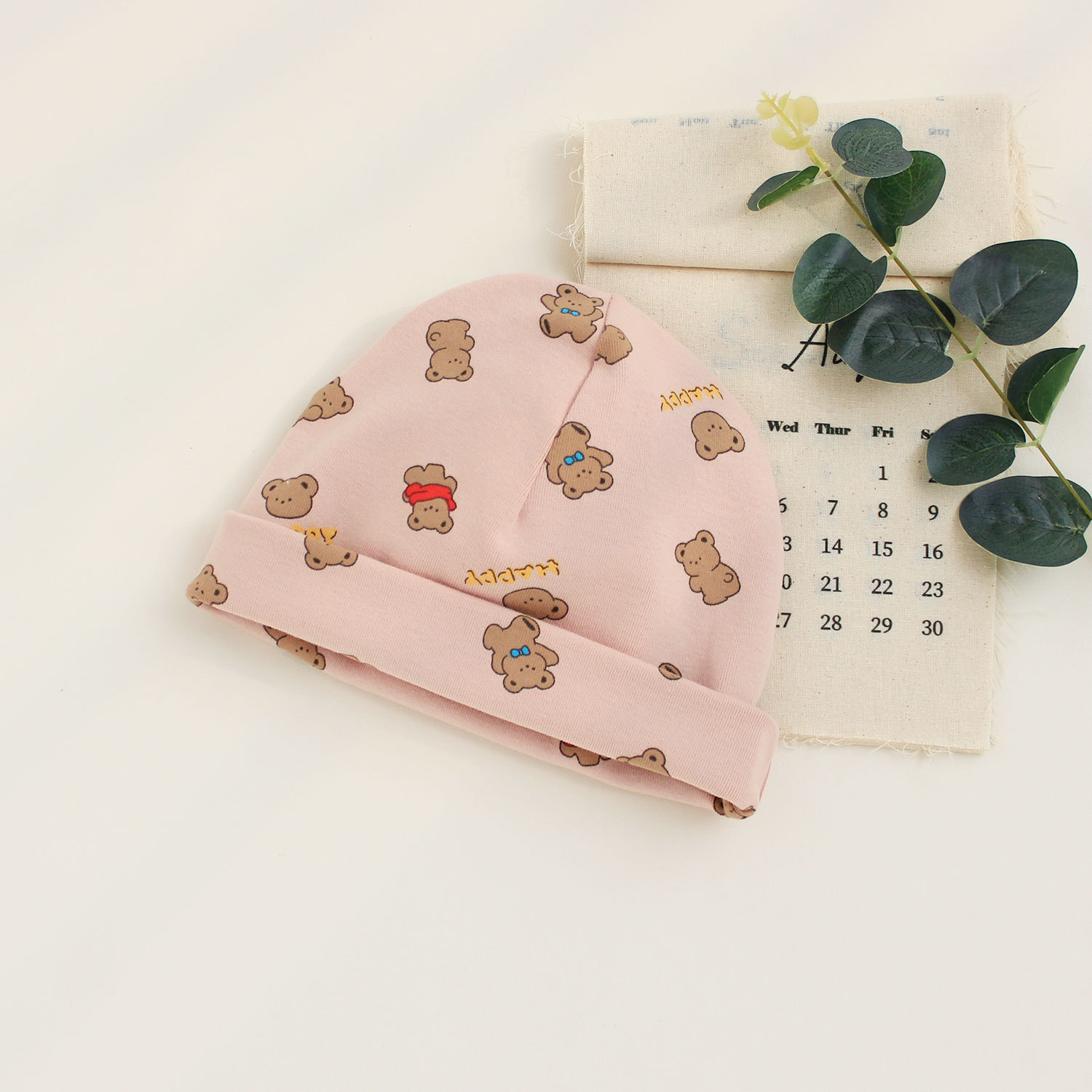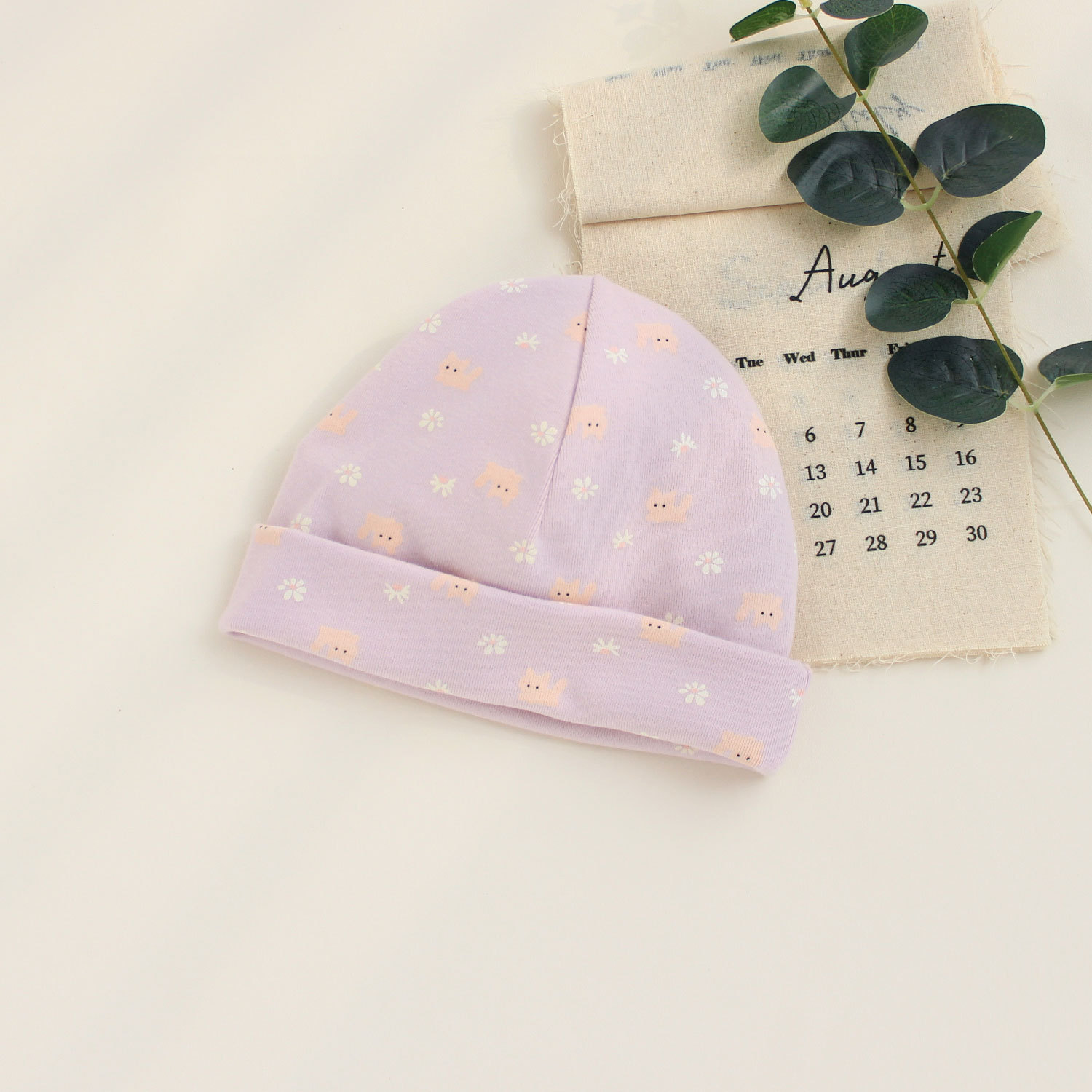 카테고리 a 뼈없는 아기 모자 한국어 ins 가을, 겨울 모자 유아 및 어린이 인쇄 순수 코튼 귀 보호 아기 모자
