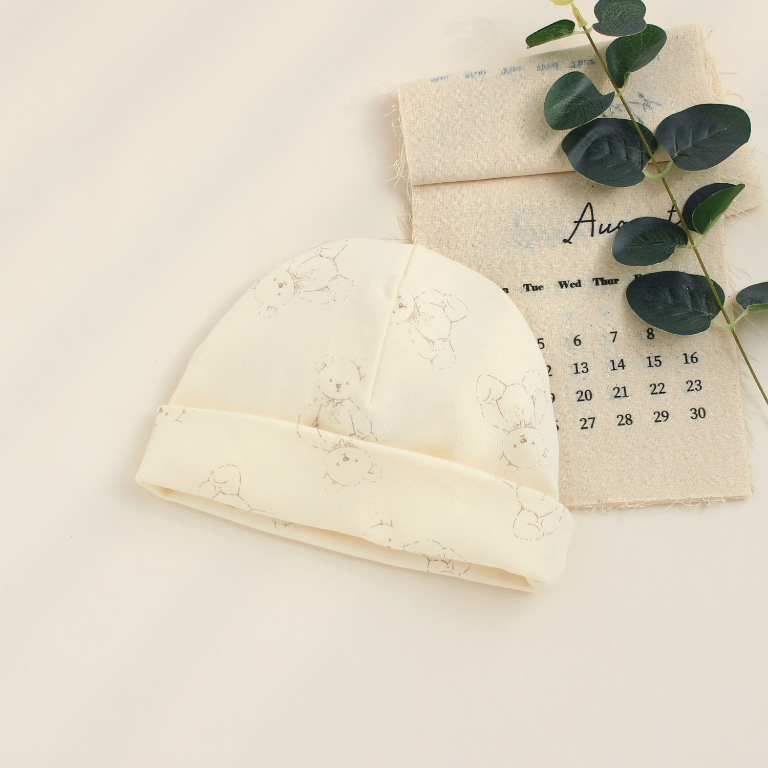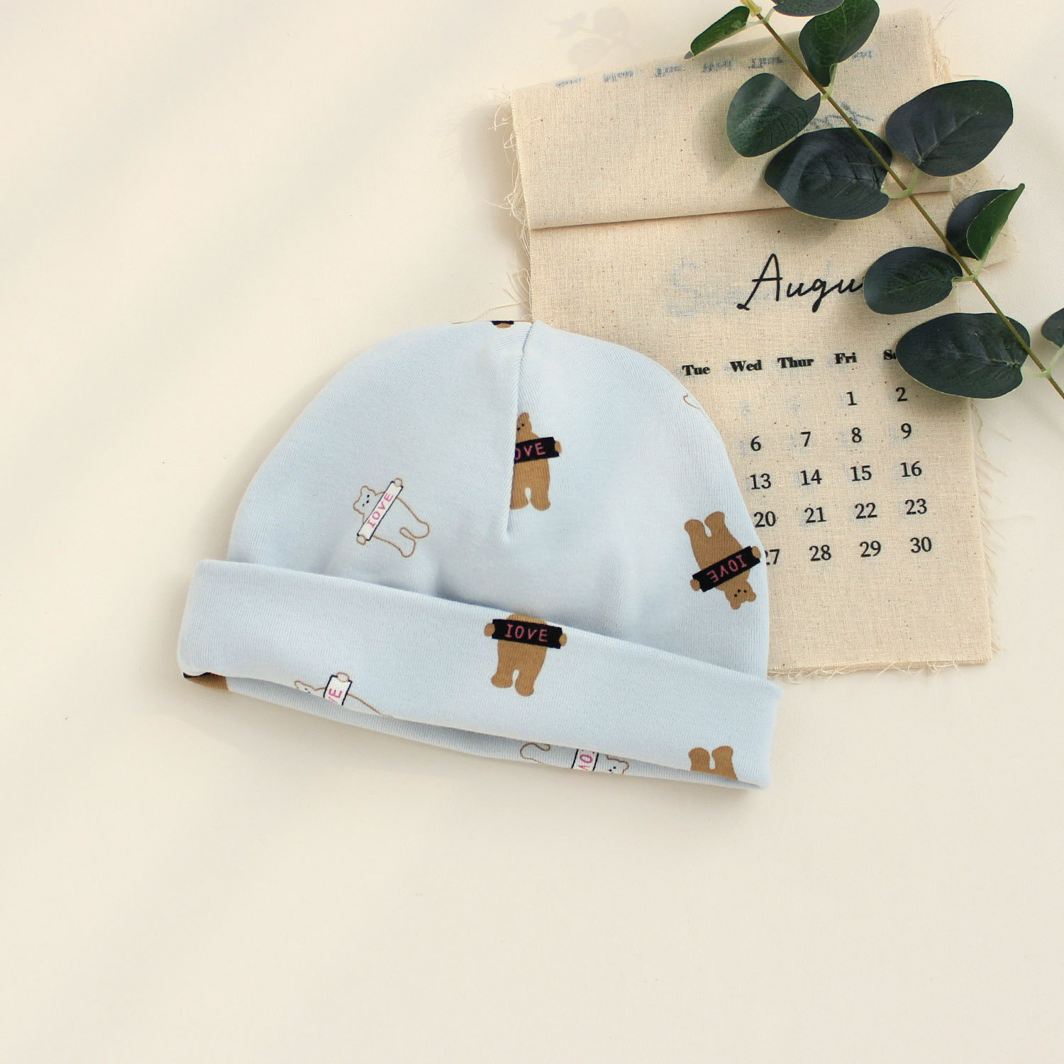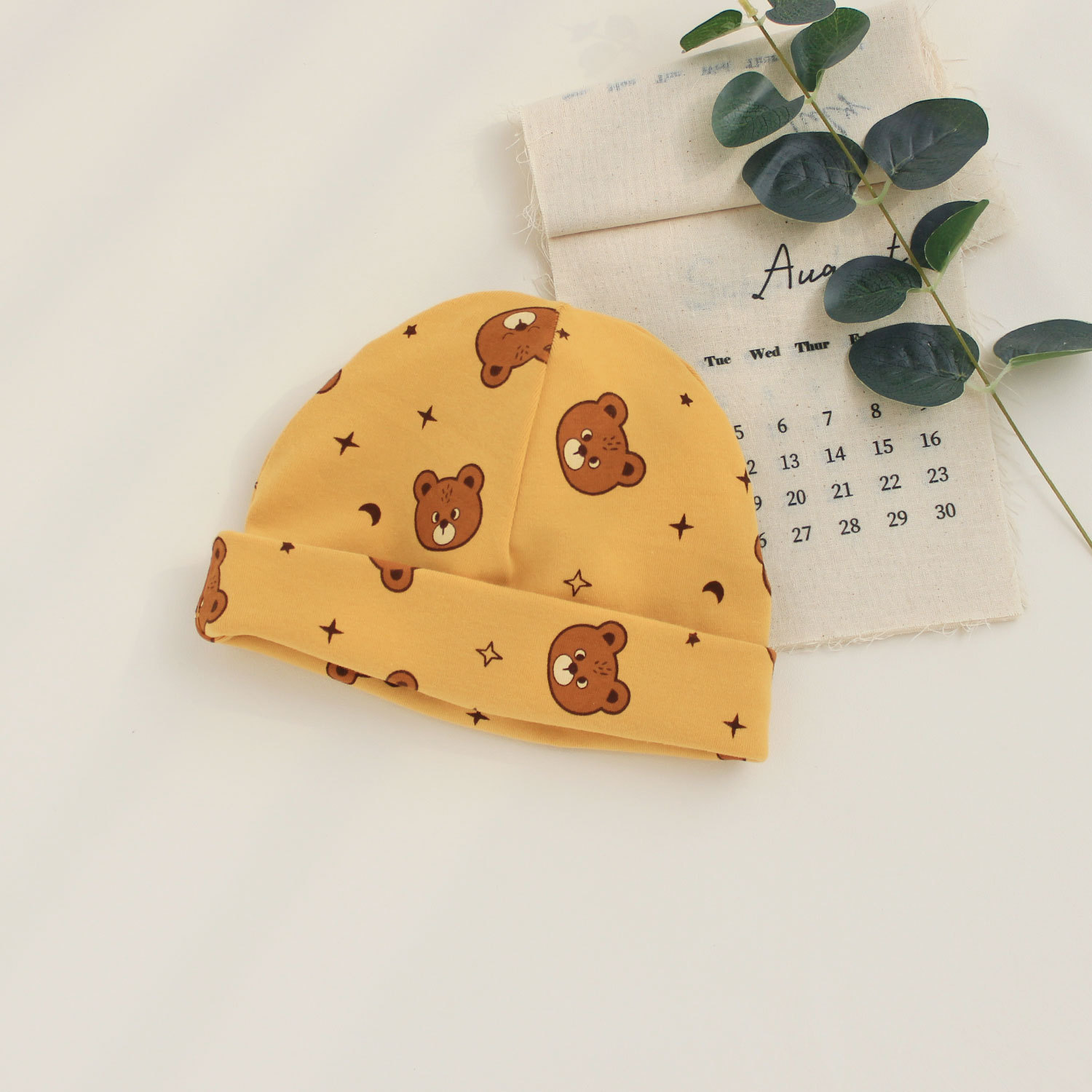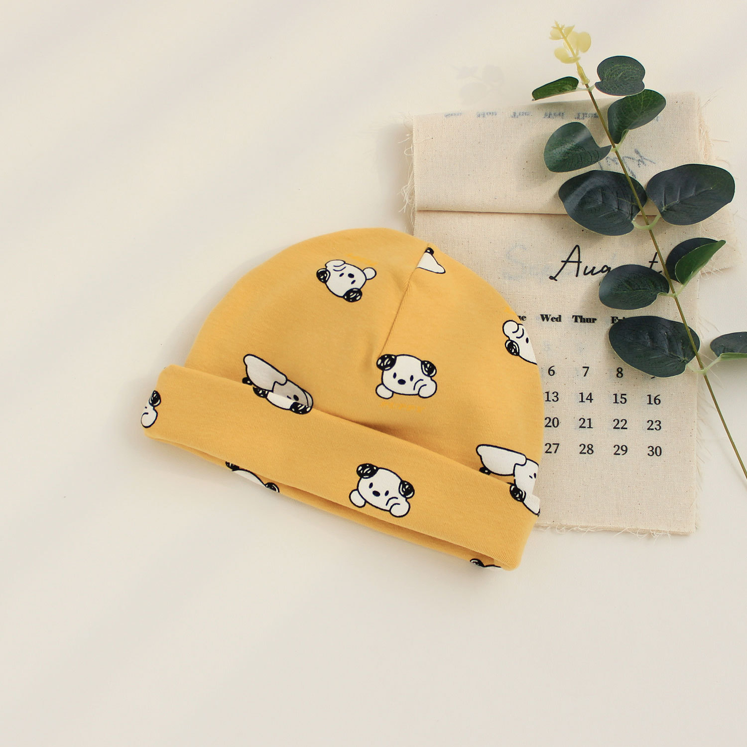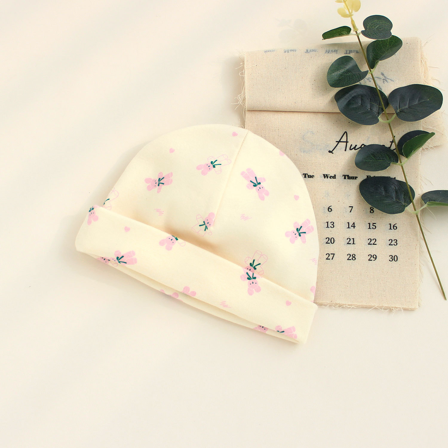 카테고리 a 뼈없는 아기 모자 한국어 ins 가을, 겨울 모자 유아 및 어린이 인쇄 순수 코튼 귀 보호 아기 모자