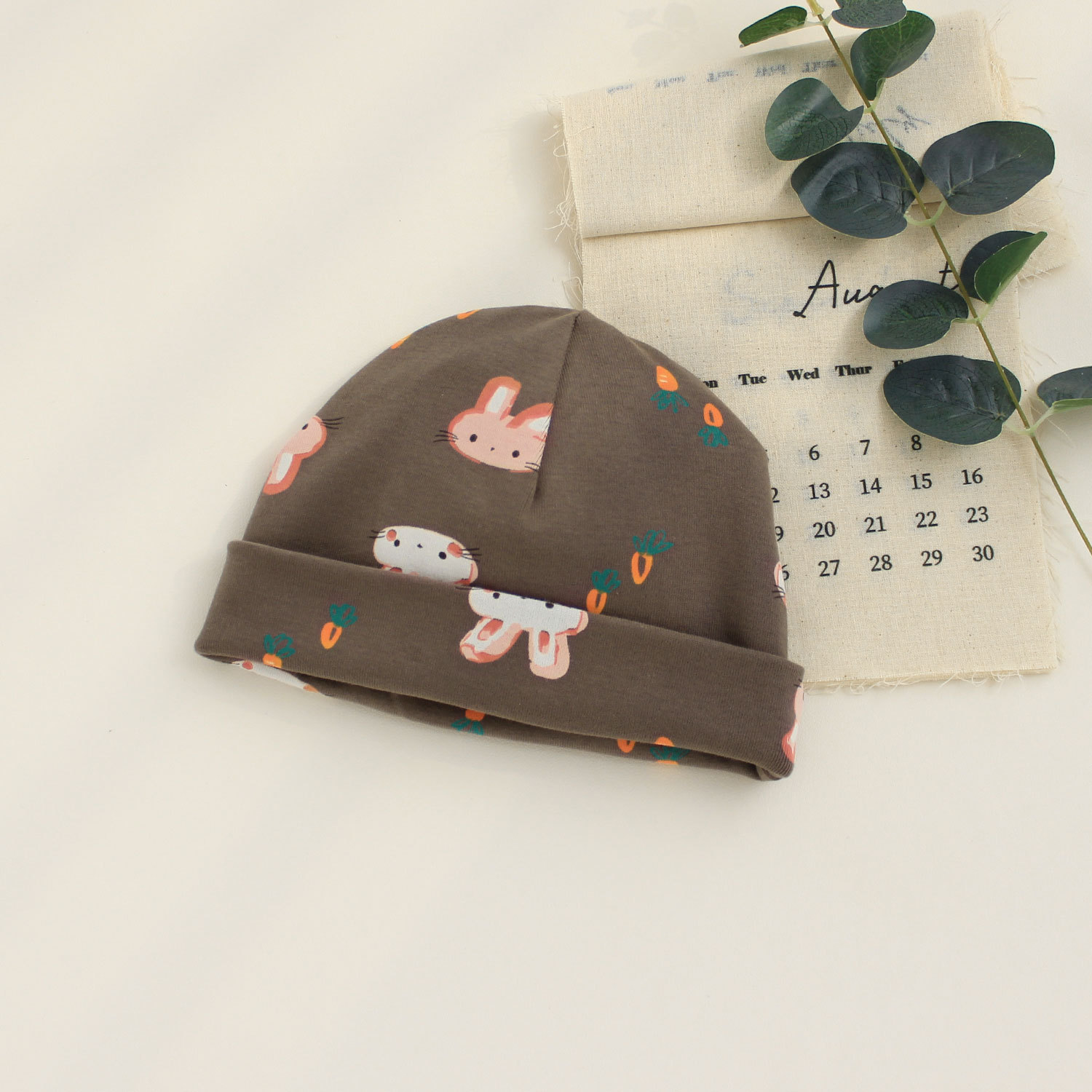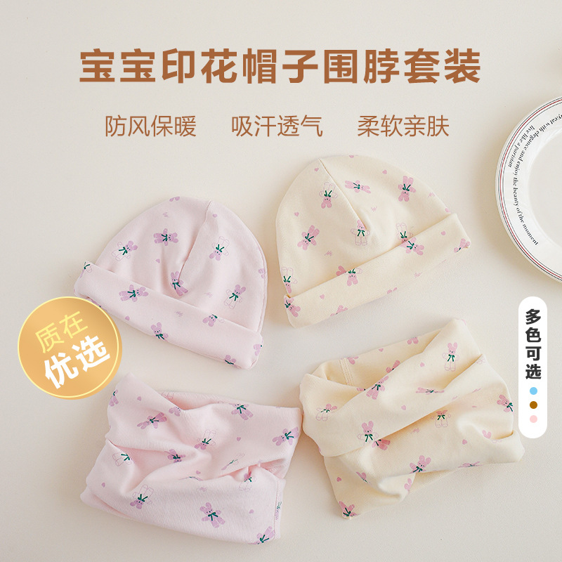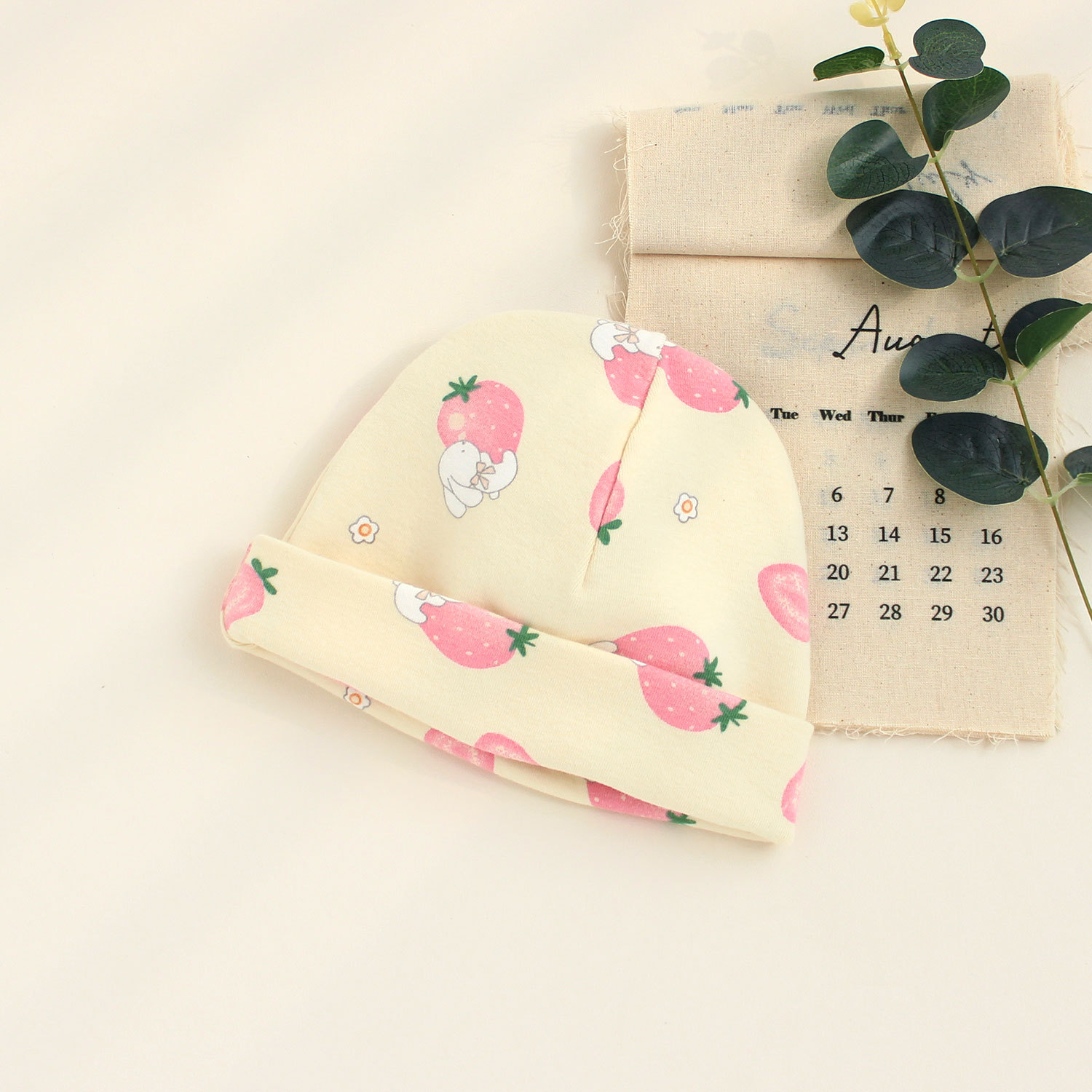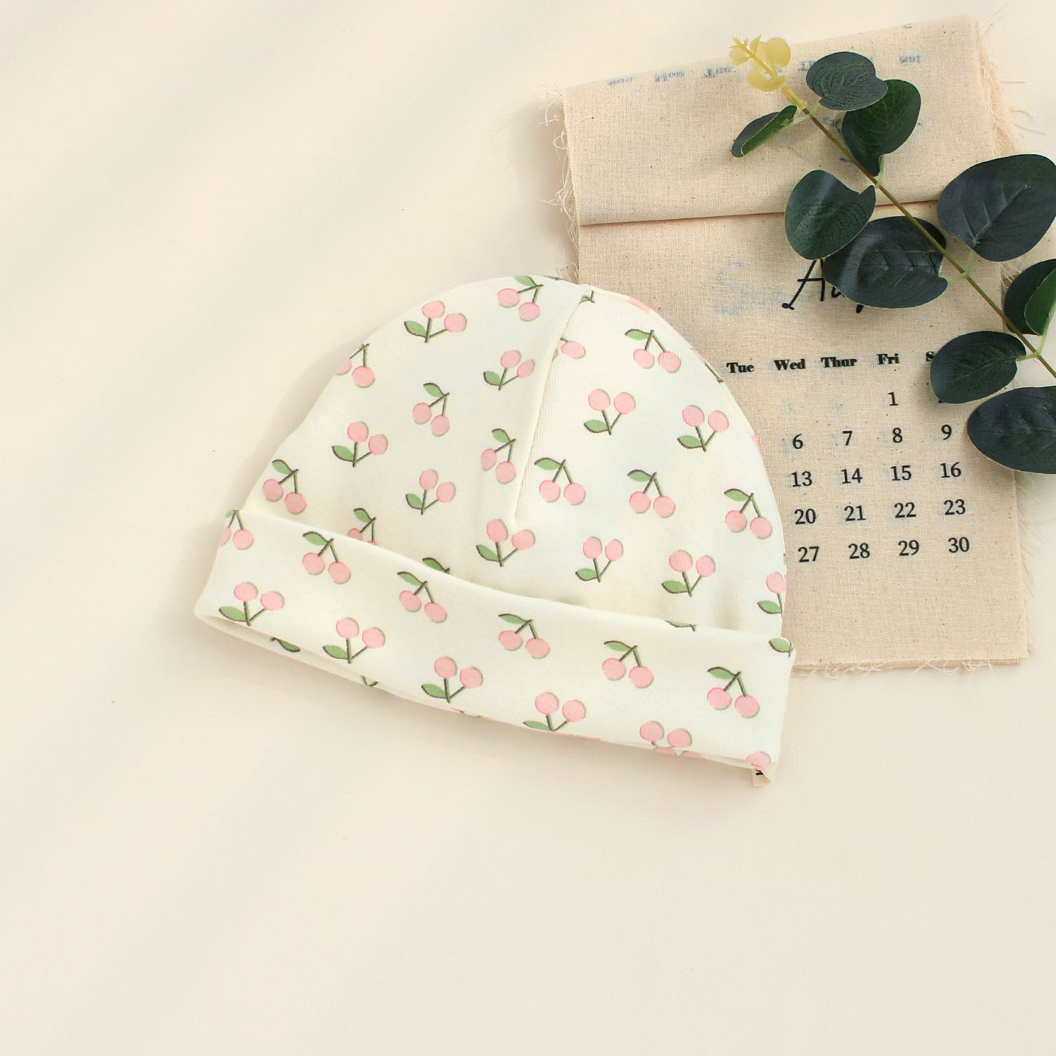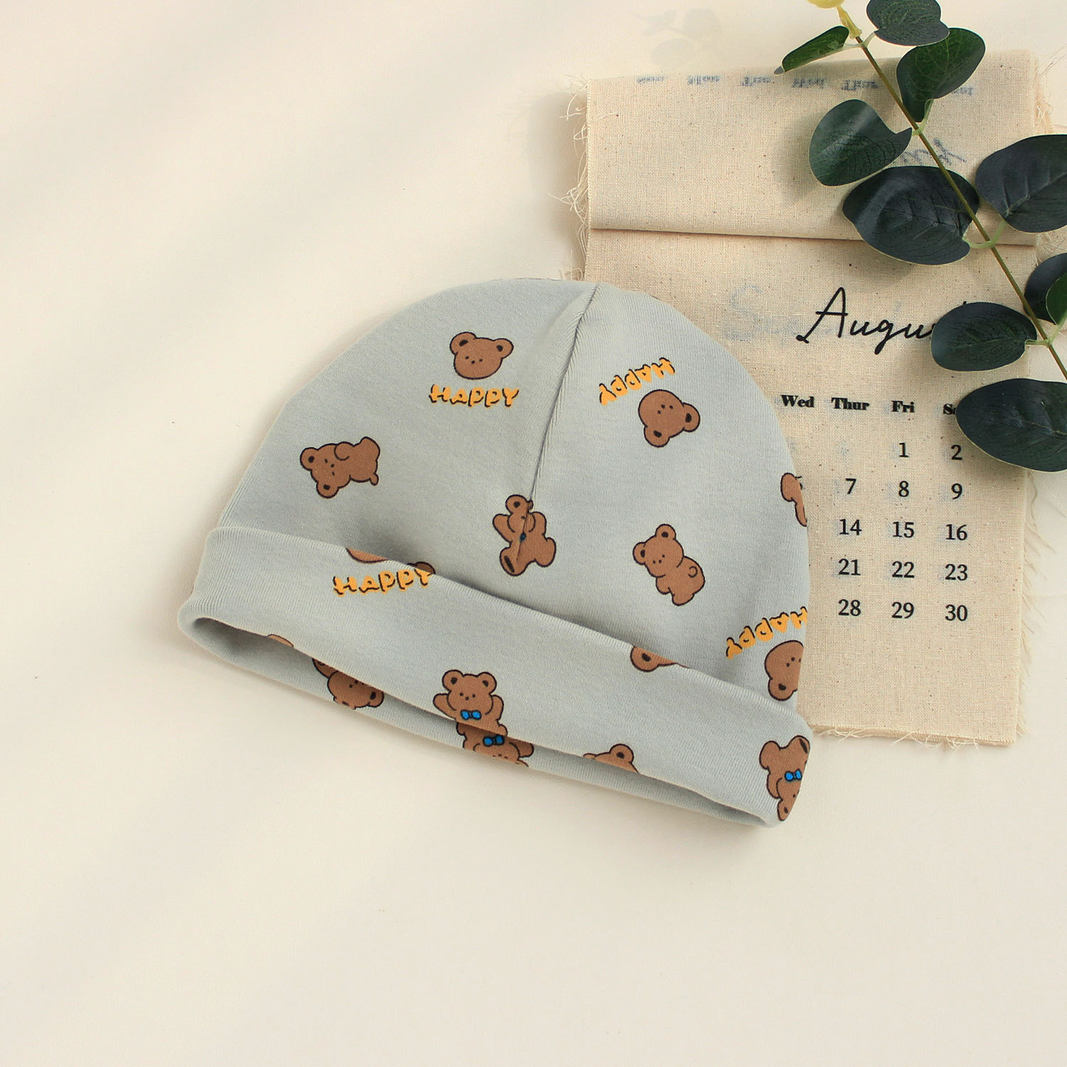 카테고리 a 뼈없는 아기 모자 한국어 ins 가을, 겨울 모자 유아 및 어린이 인쇄 순수 코튼 귀 보호 아기 모자
