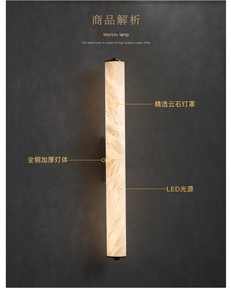 모든 구리 빛 럭셔리 천연 대리석 벽 램프 새로운 중국 디자인 거실 배경 벽 침실 통로 연구 현관 벽 램프스토어 가기