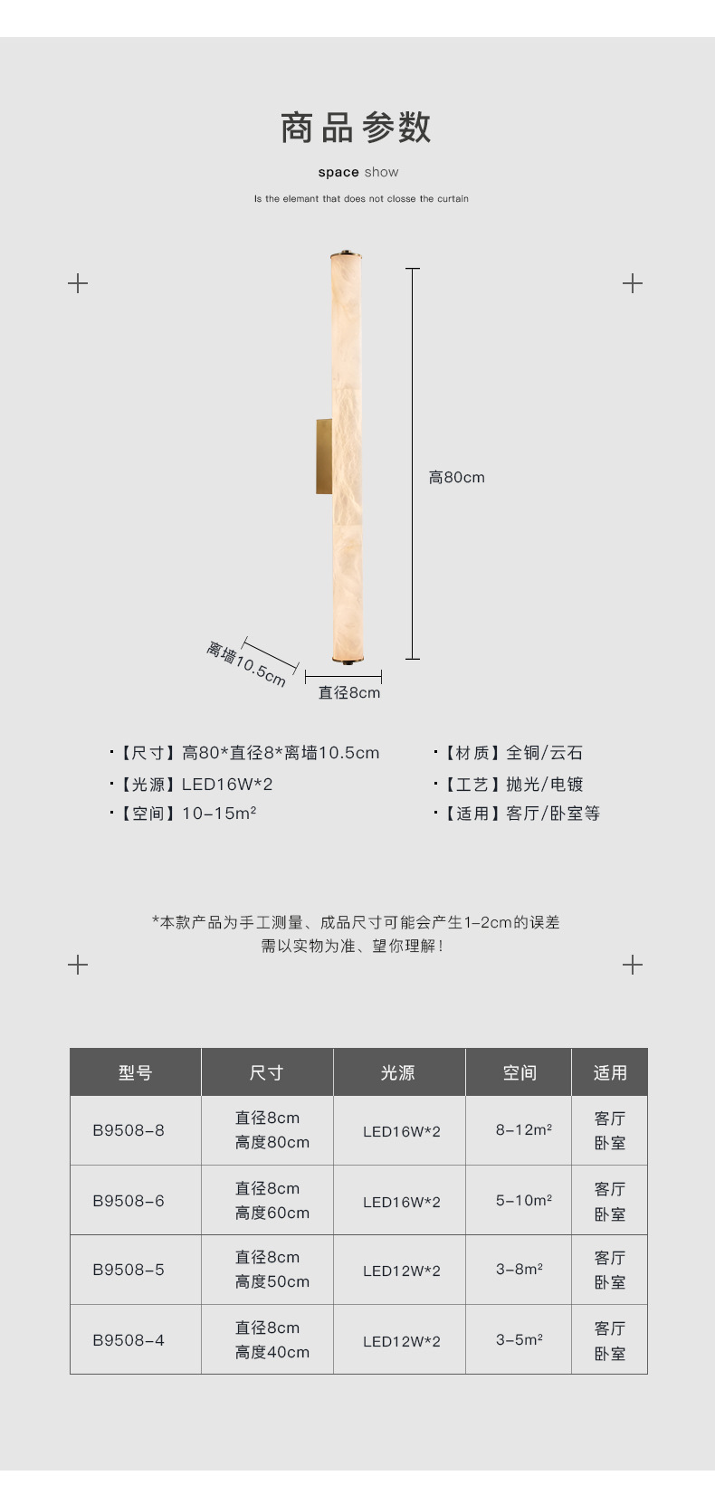 • [전체 구리 + 천연 대리석] 검정색, 높이 80CM