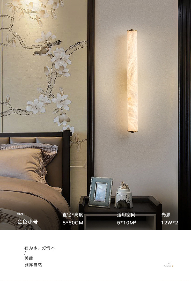 모든 구리 빛 럭셔리 천연 대리석 벽 램프 새로운 중국 디자인 거실 배경 벽 침실 통로 연구 현관 벽 램프