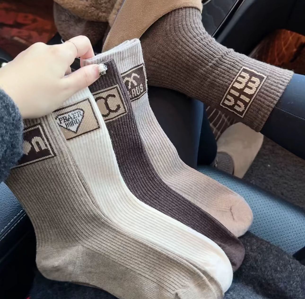 오트밀 컬러 레트로 유럽 높은 허리 스태킹 양말 어린이를위한 가을과 겨울 양말 Maillard 높은 컬러 값 아웃웨어 유행 양말스토어 가기