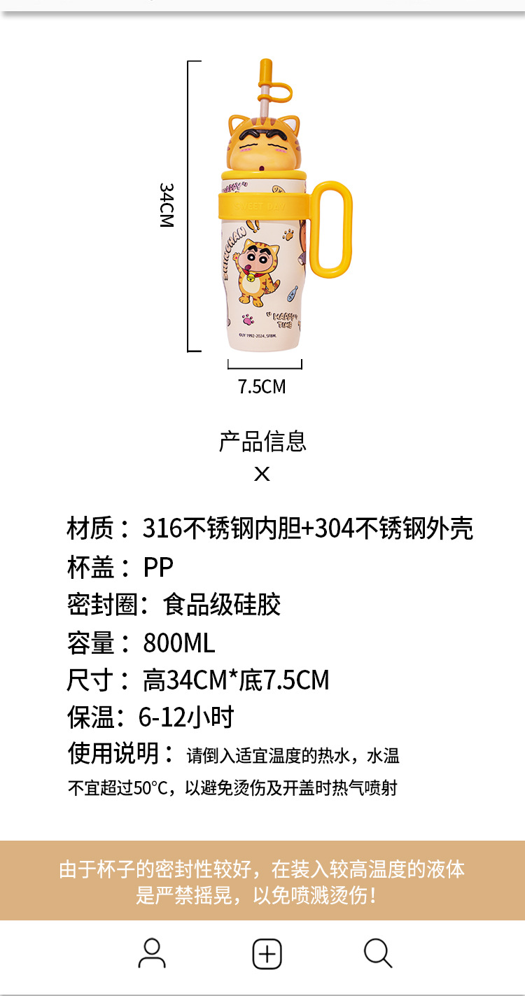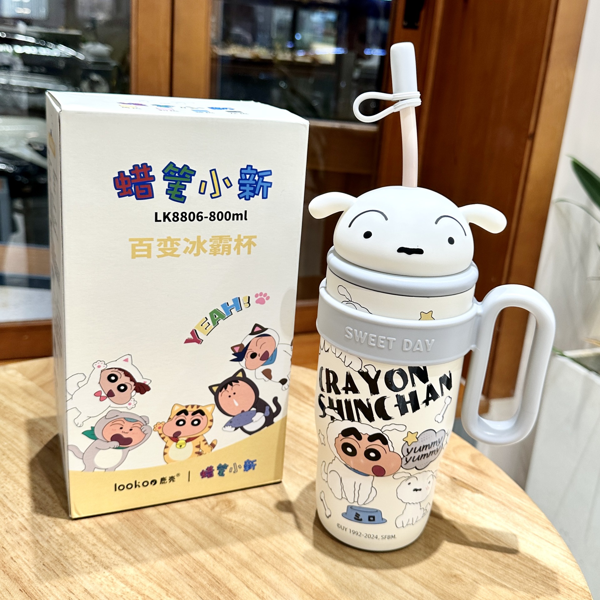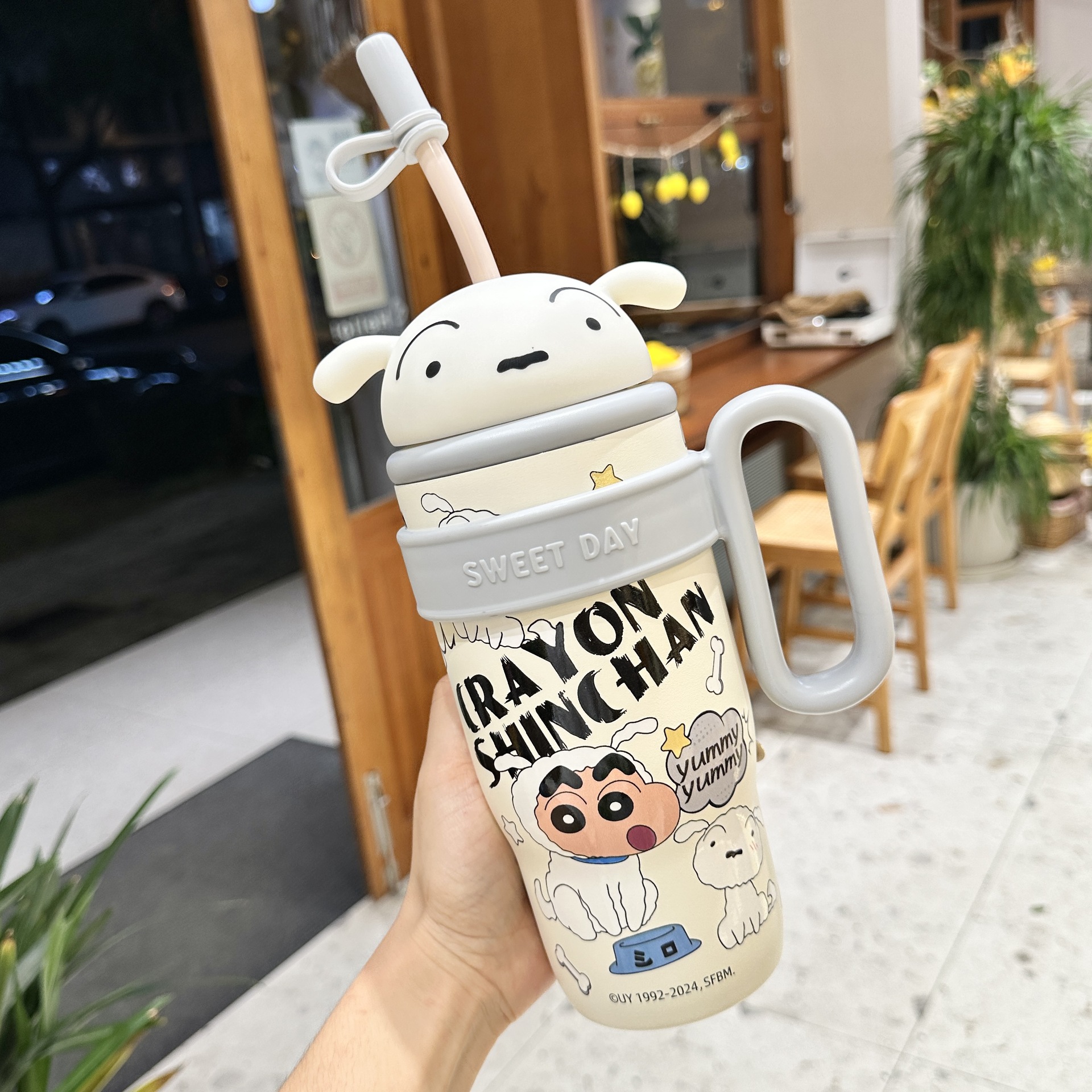 크레용 작은 새로운 큰 손잡이 컵 316 스테인레스 스틸 어린이 찻잔 새로운 귀여운 대용량 밀짚 컵스토어 가기