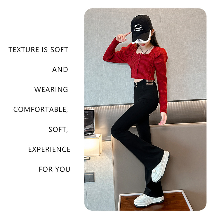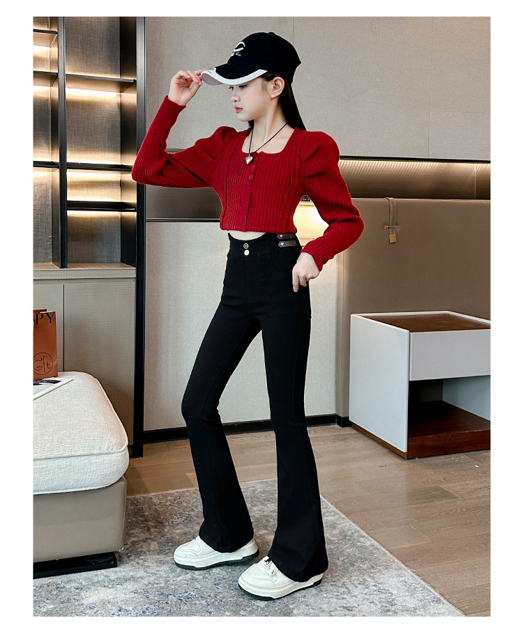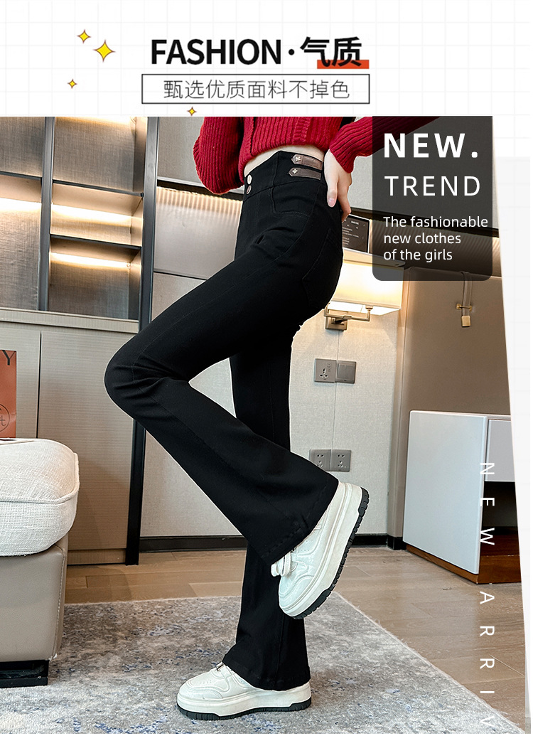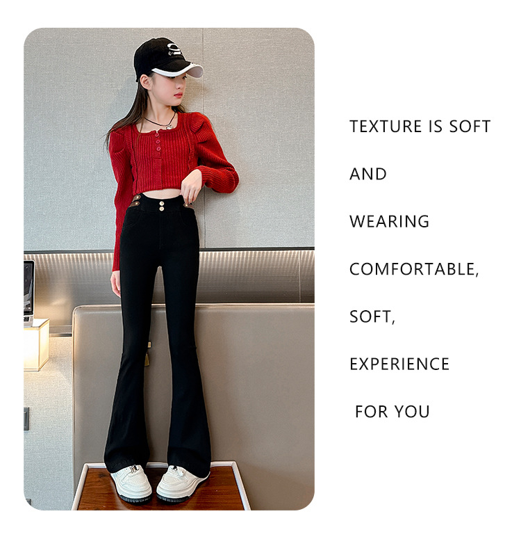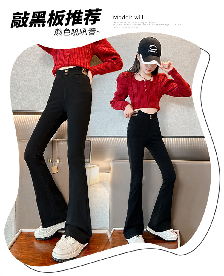 여아 벨벳 플레어 팬츠 2024 가을 겨울 신상 중대형 아동 패셔너블 하이웨이스트 슬리밍 마이크로 플레어 롱 팬츠