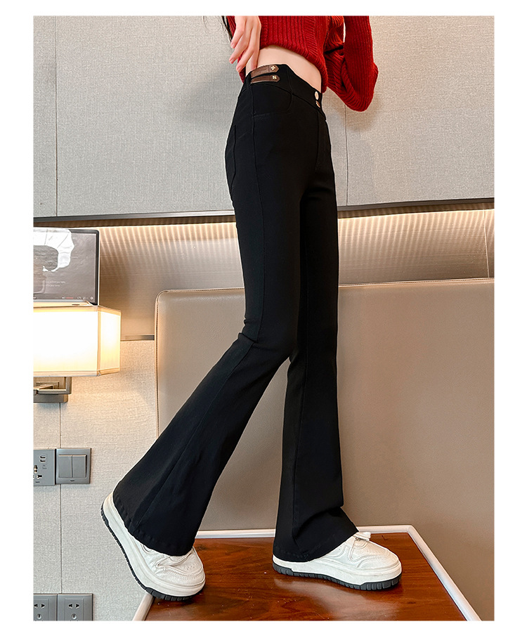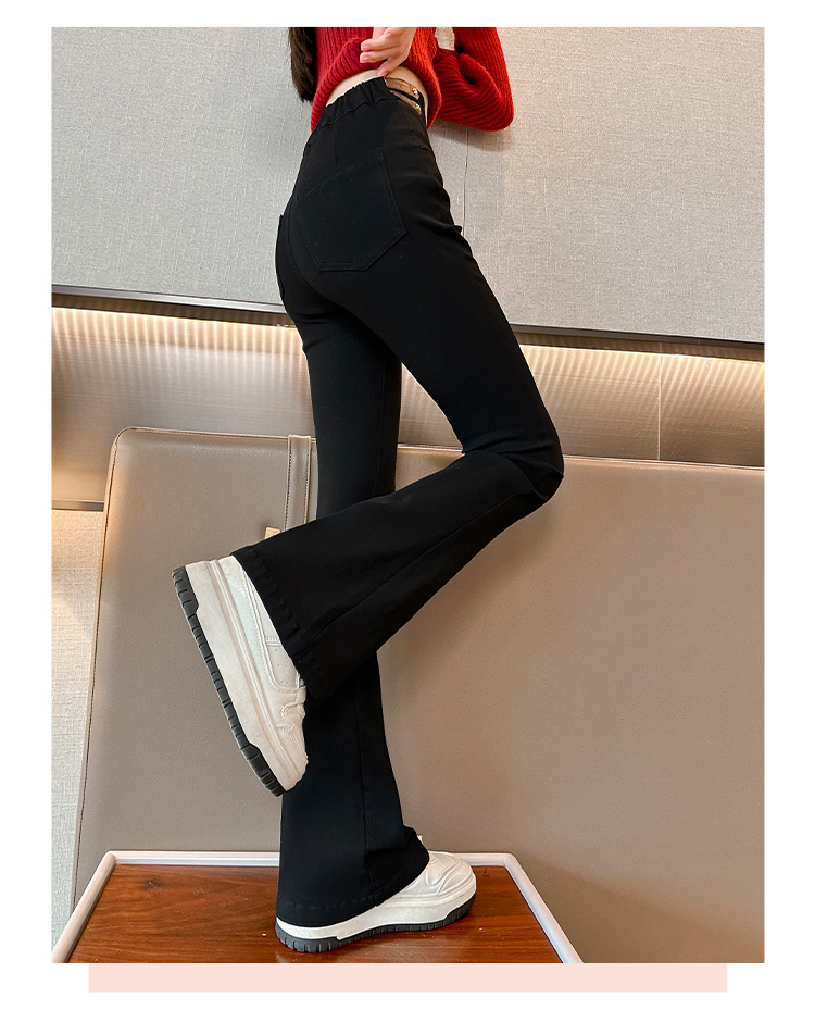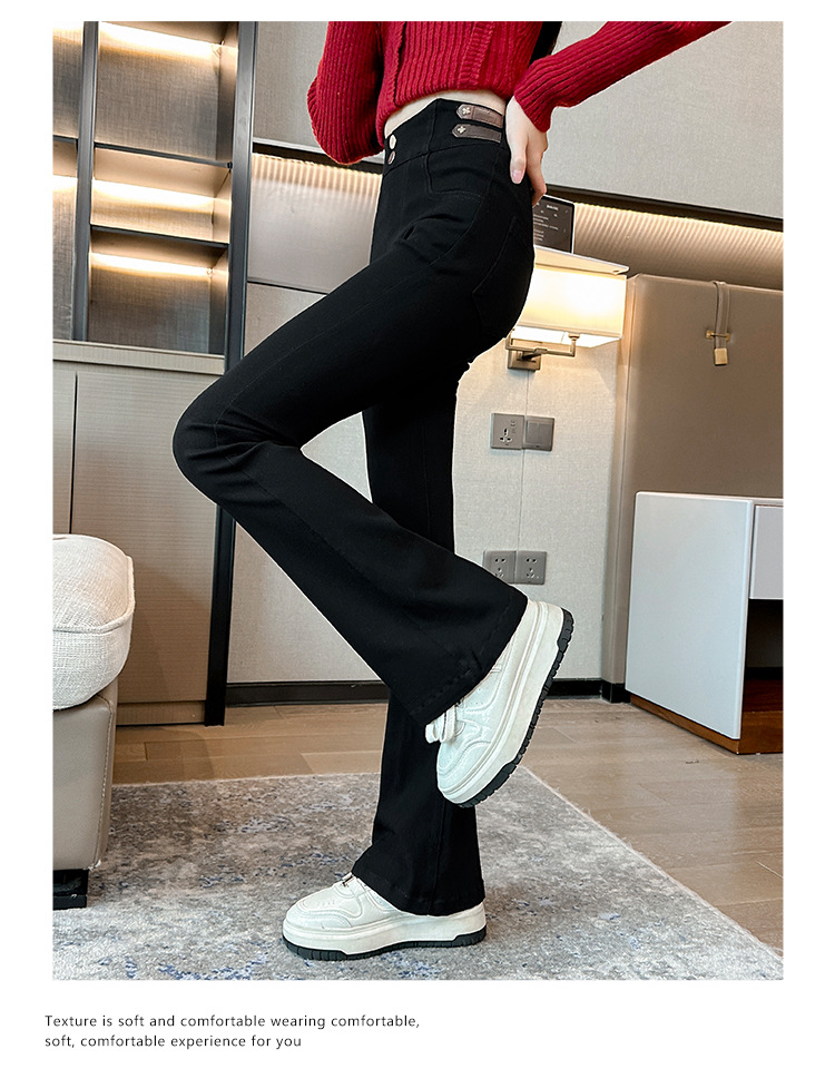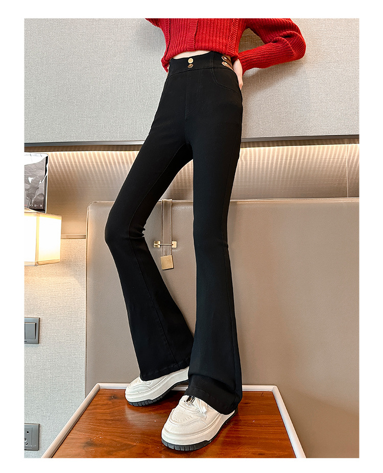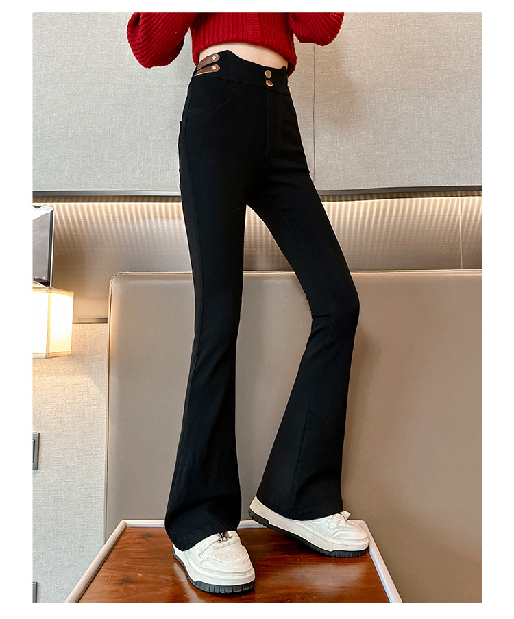 여아 벨벳 플레어 팬츠 2024 가을 겨울 신상 중대형 아동 패셔너블 하이웨이스트 슬리밍 마이크로 플레어 롱 팬츠