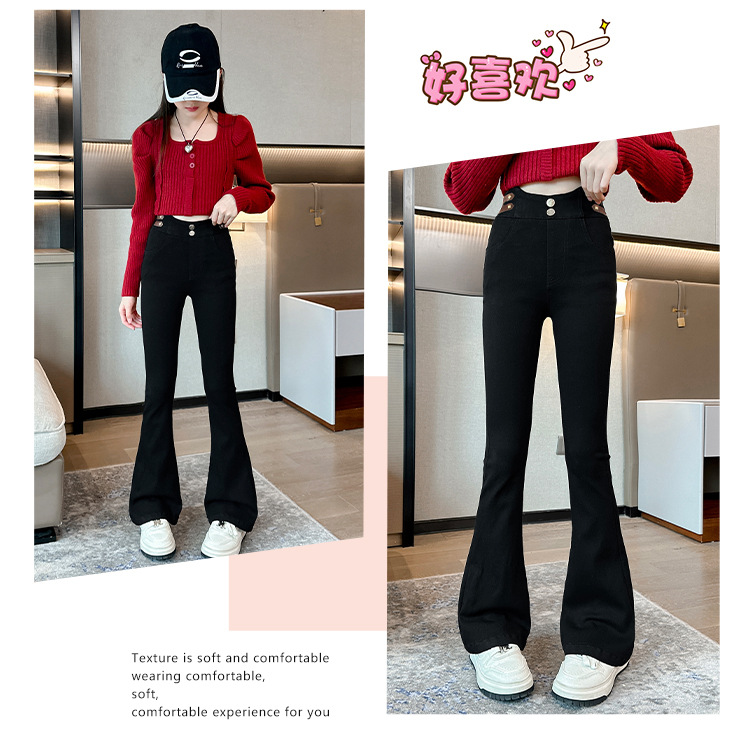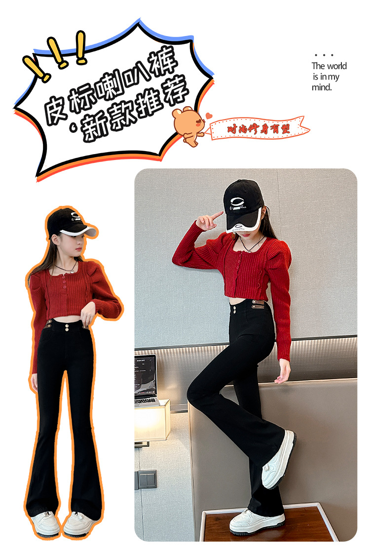 여아 벨벳 플레어 팬츠 2024 가을 겨울 신상 중대형 아동 패셔너블 하이웨이스트 슬리밍 마이크로 플레어 롱 팬츠스토어 가기