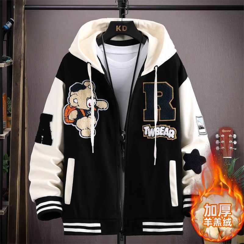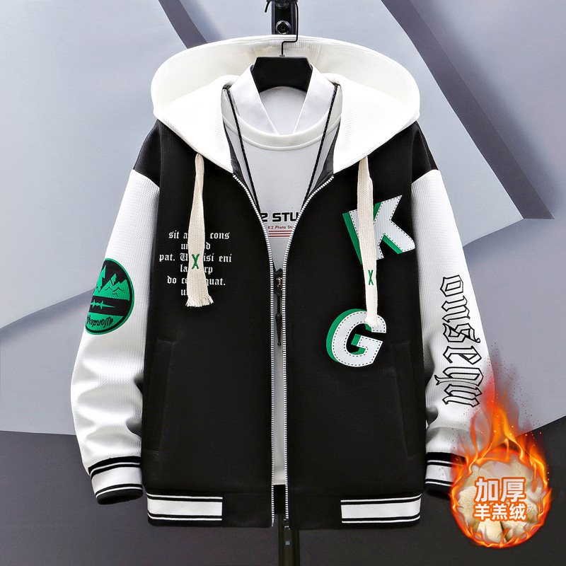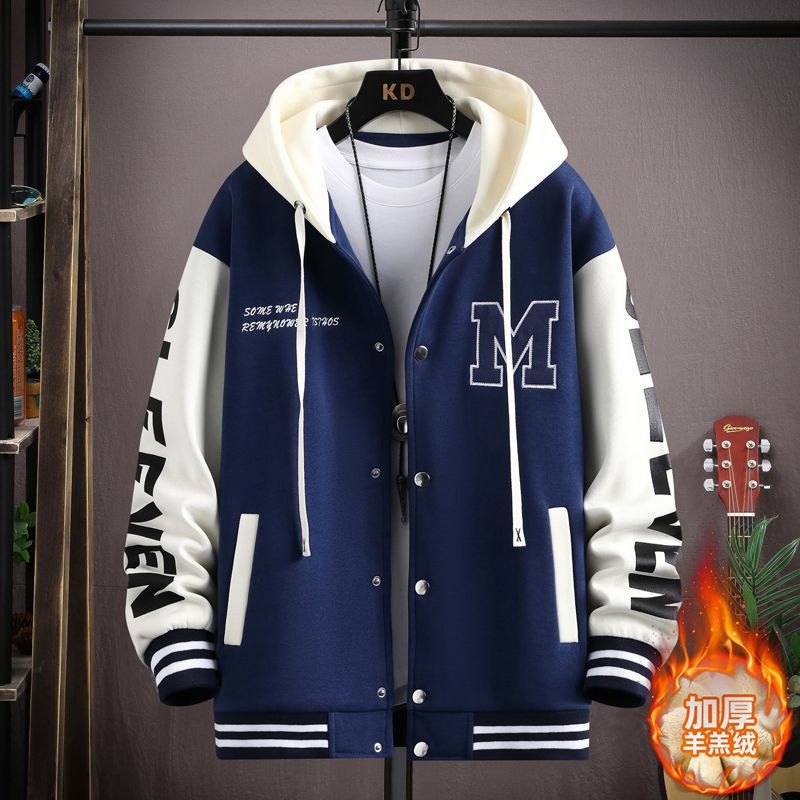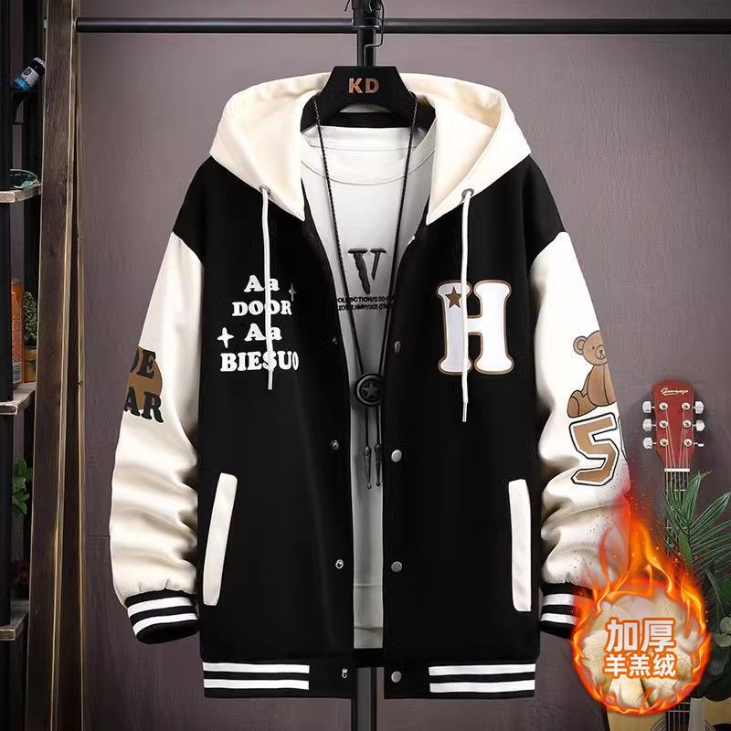 가을과 겨울 기모 두꺼운 코트 남자 시니어 고등학교 중학생 면 패딩 재킷 십대 잘 생긴 큰 소년 남자 야구 유니폼