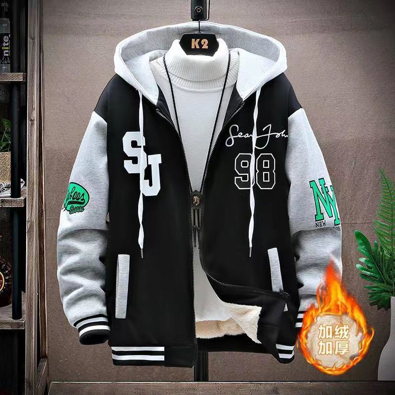 가을과 겨울 기모 두꺼운 코트 남자 시니어 고등학교 중학생 면 패딩 재킷 십대 잘 생긴 큰 소년 남자 야구 유니폼스토어 가기