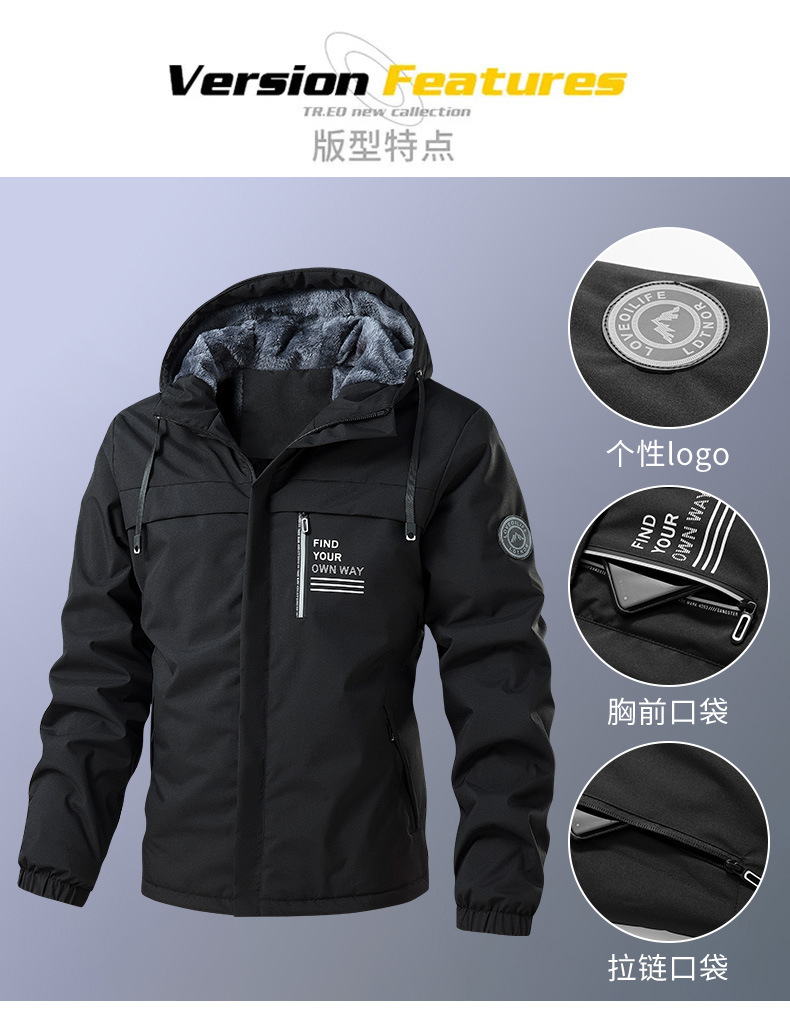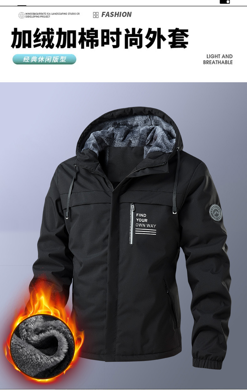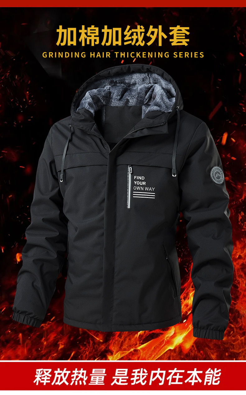 2025 가을 겨울 신상품 플러스 벨벳 두꺼운 재킷 남성용 후드 캐주얼 재킷 남성용 루즈핏 상의스토어 가기