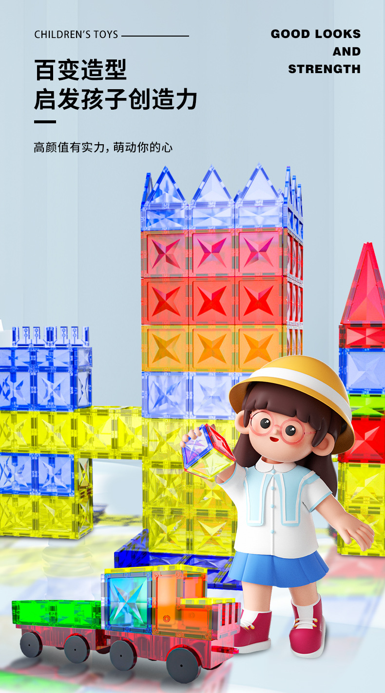 국경 간 자연 색상 창 자기 필름 공장 직접 장난감 조기 교육 어린이 도매 자기 빌딩 블록 머리카락 세대스토어 가기