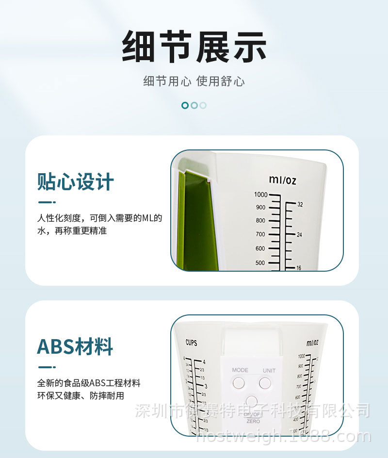 대외 무역 인기 판매 전자 측정 컵 저울 1000ml 대용량 분리형 주방 베이킹 저울 5kg 가정용 우유스토어 가기