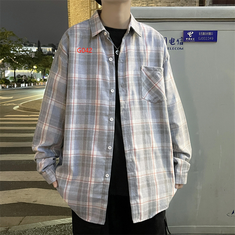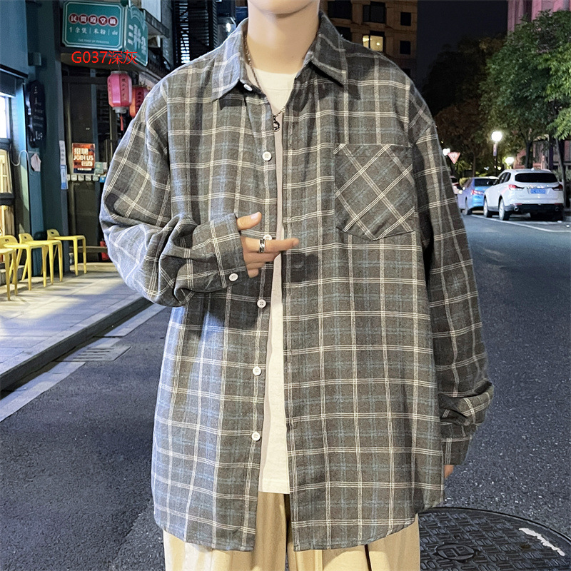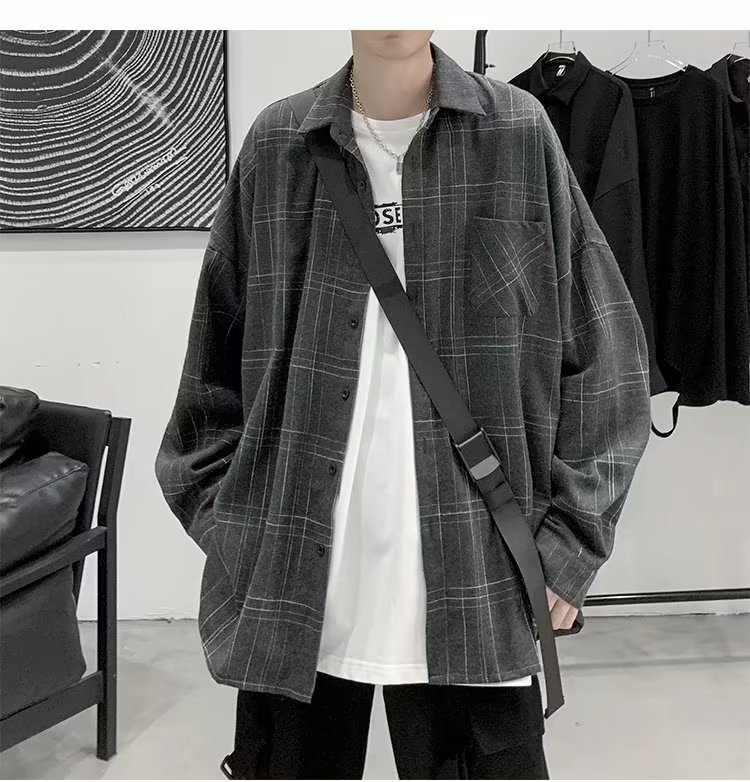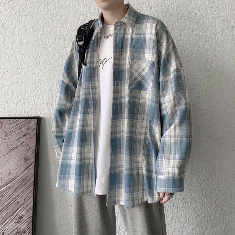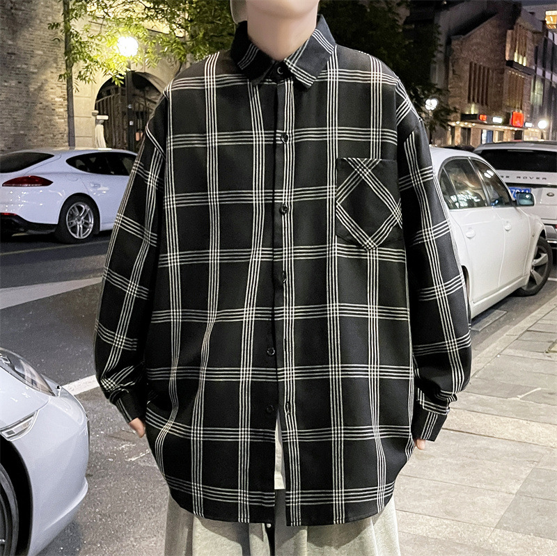 가을 격자 무늬 긴팔 셔츠 남자의 유행 새로운 느슨한 학생 셔츠 한국 스타일 유행 브랜드 탑 얇은 코트 트렌디