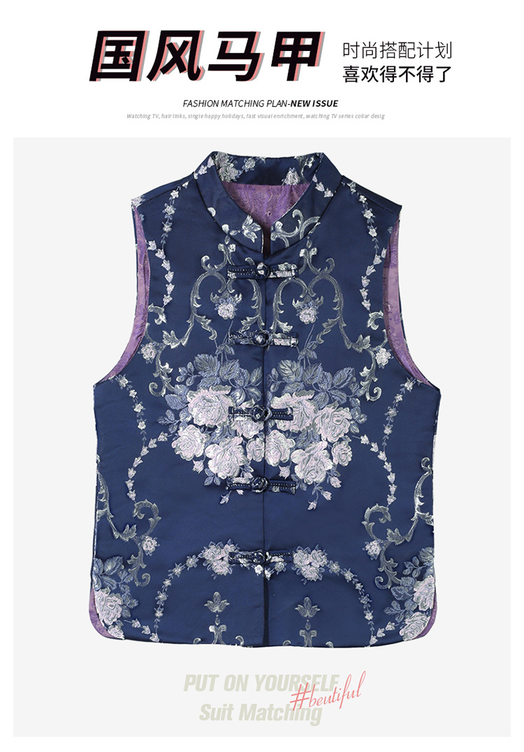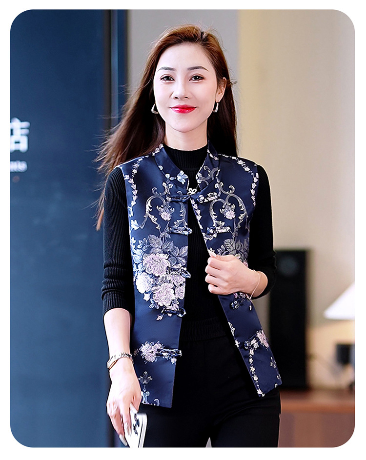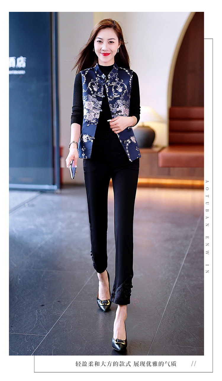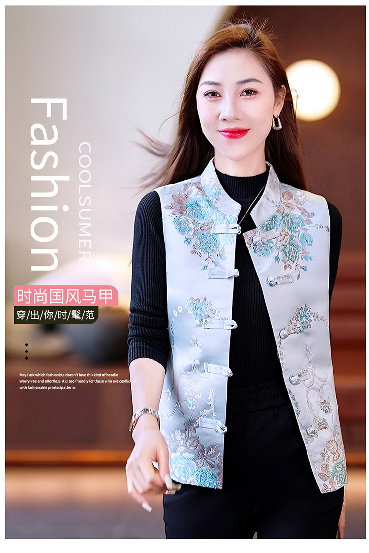 봄과 가을 새로운 중국 스타일 유행 짧은 민소매 조끼 여성 조끼 올 매치 트렌디 프린트 여성 의류스토어 가기