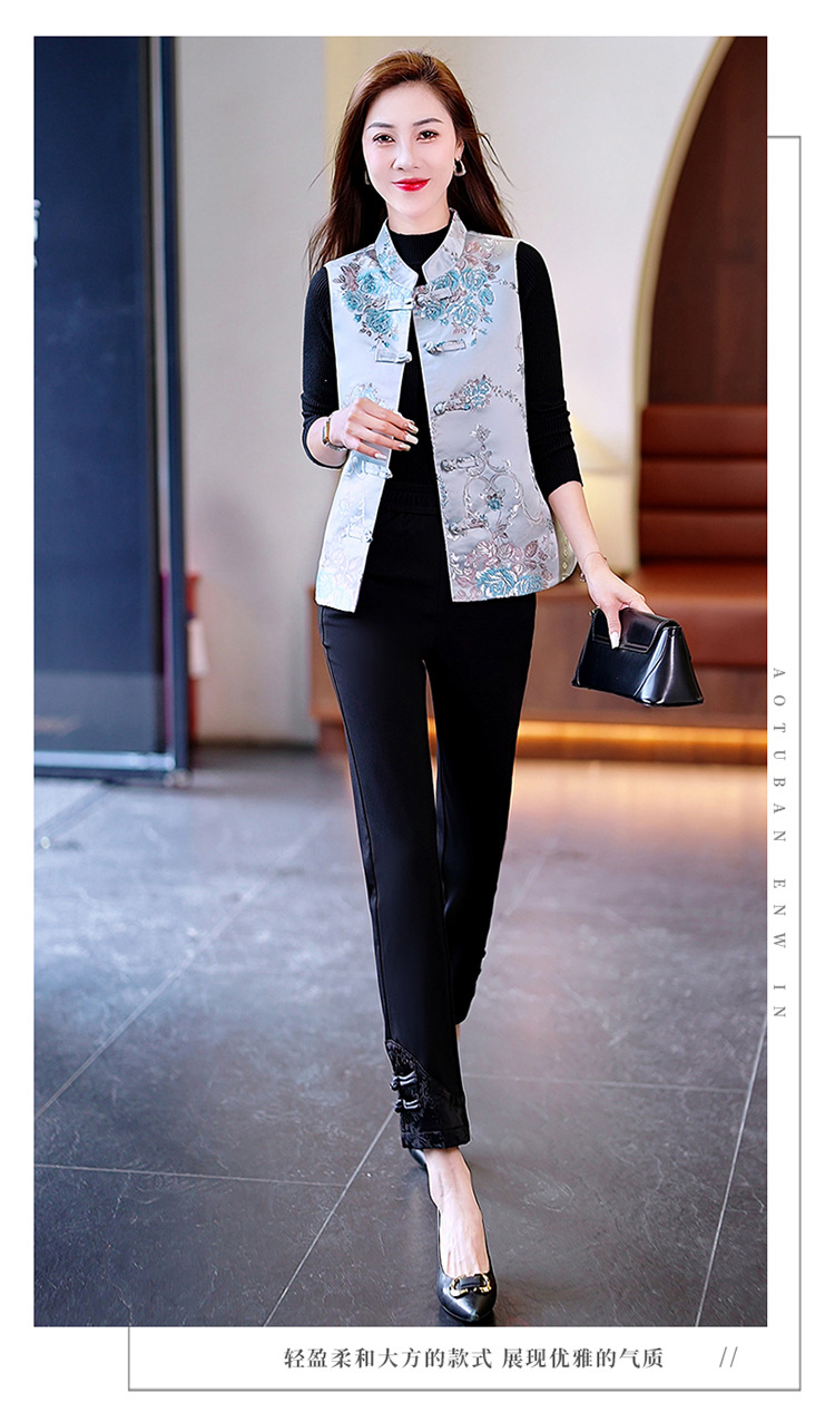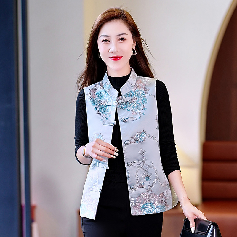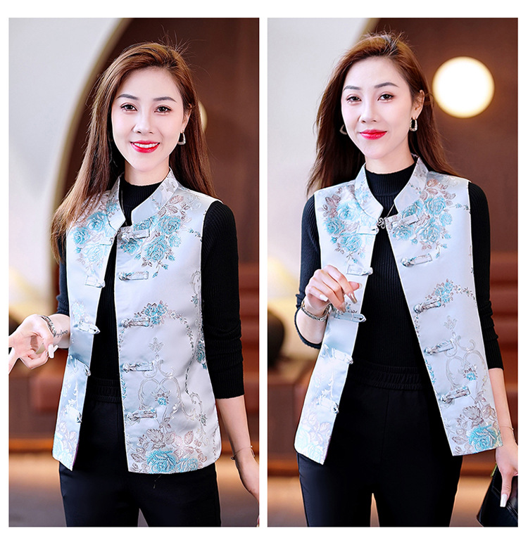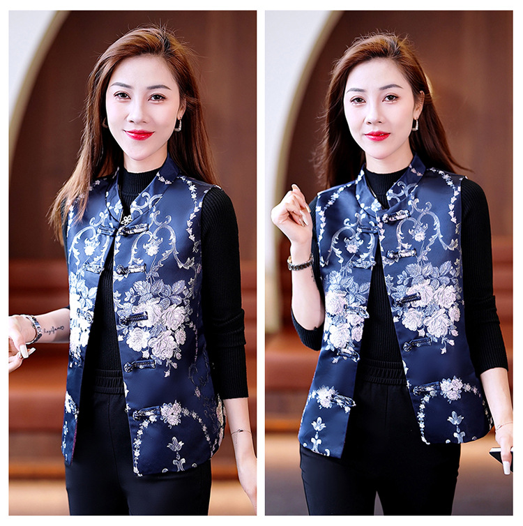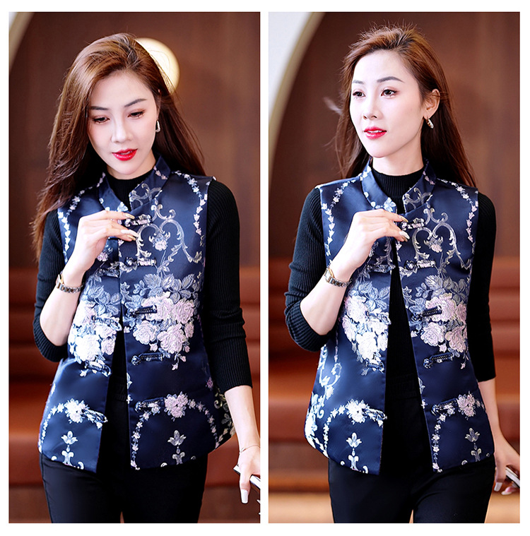 봄과 가을 새로운 중국 스타일 유행 짧은 민소매 조끼 여성 조끼 올 매치 트렌디 프린트 여성 의류스토어 가기