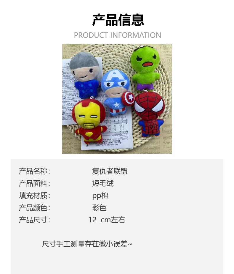 캡틴 아메리카 어벤저 스 피규어 스파이더 맨 플러시 장난감 펜던트 헝겊 인형 만화 애니메이션 선물스토어 가기