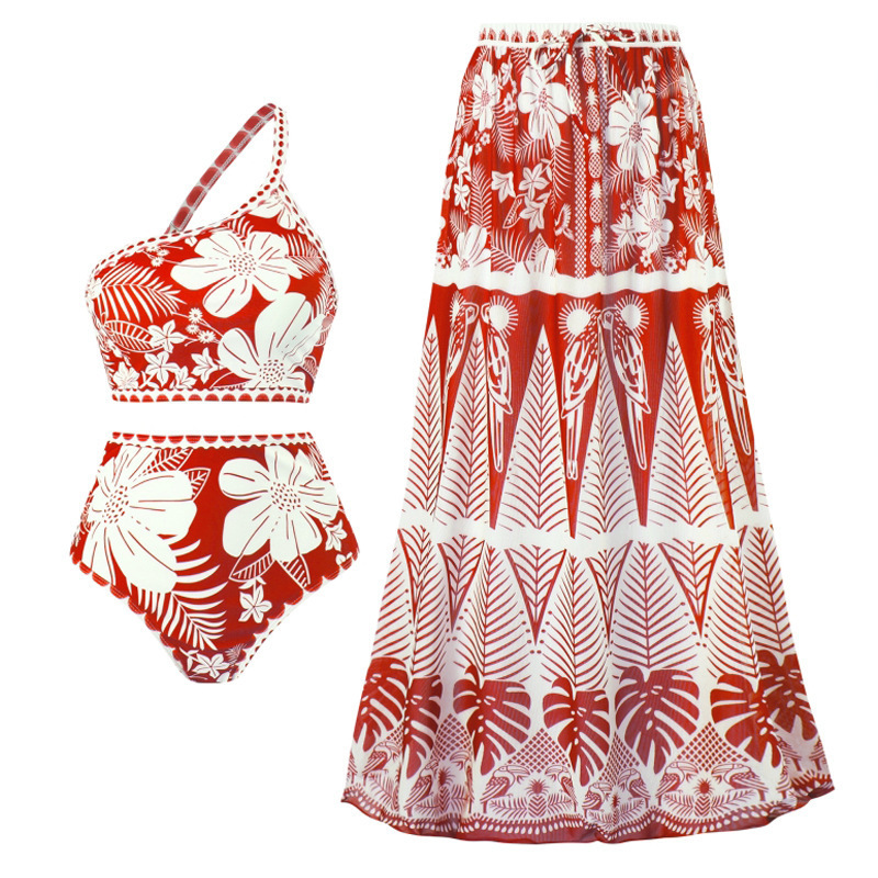 2024 새로운 빈티지 어깨 튜브 탑 분할 수영복 아마존 섹시한 메쉬 선 스크린 비치 원피스 세트 여성