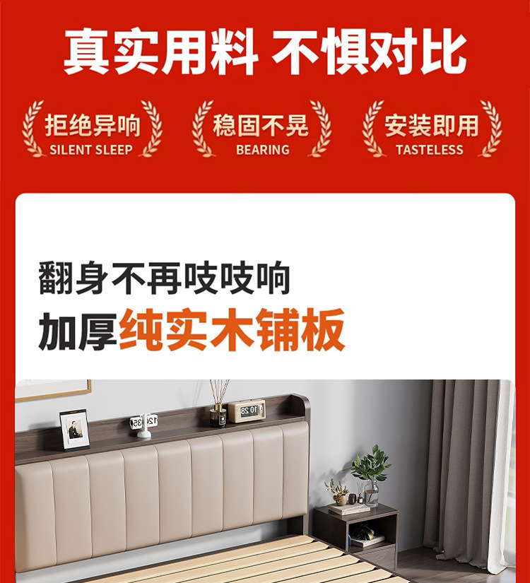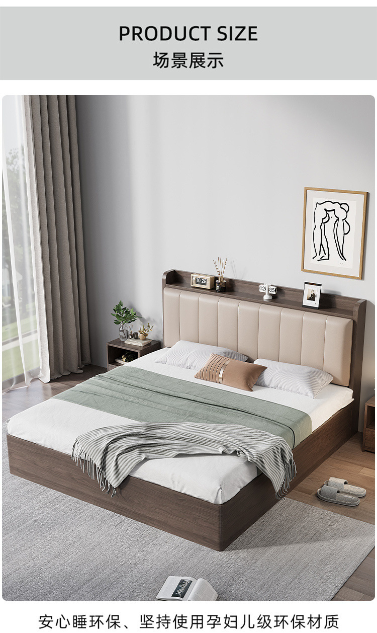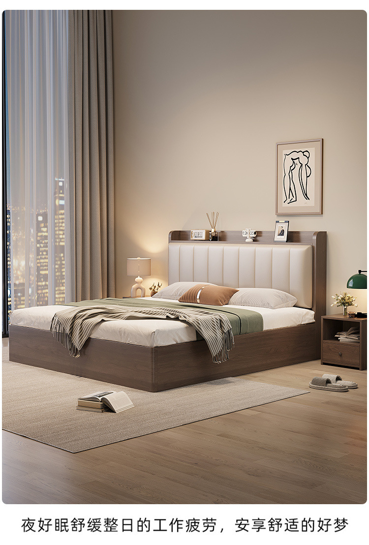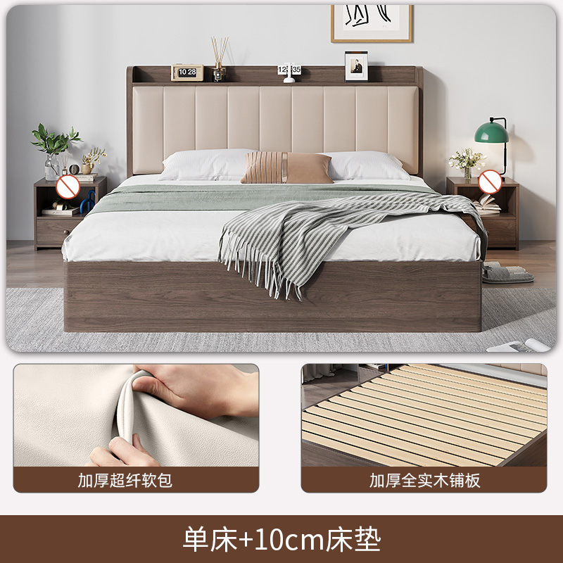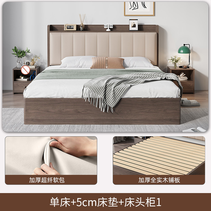 현대 간단한 단단한 나무 침대 1.8 가구 더블 침대 마스터 침실 1.5 싱글 침대 판 침대 임대 방 1.2 침대 프레임스토어 가기