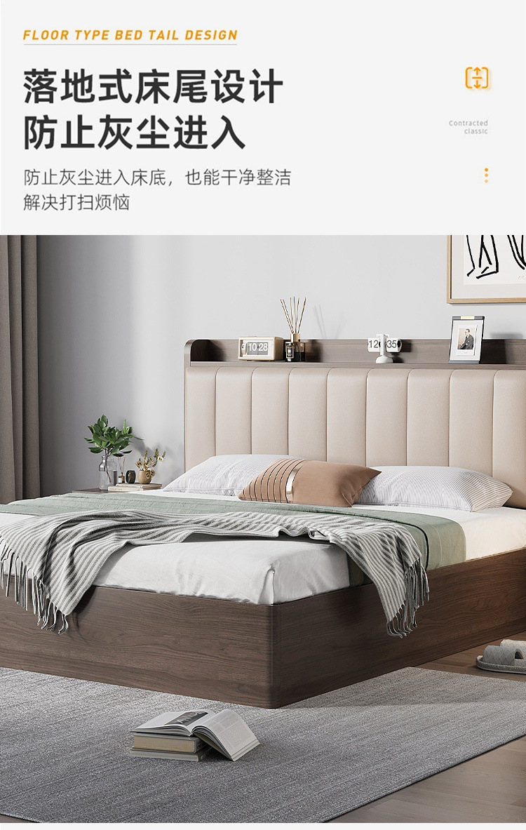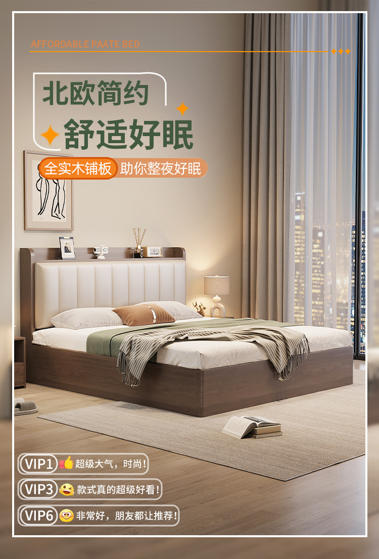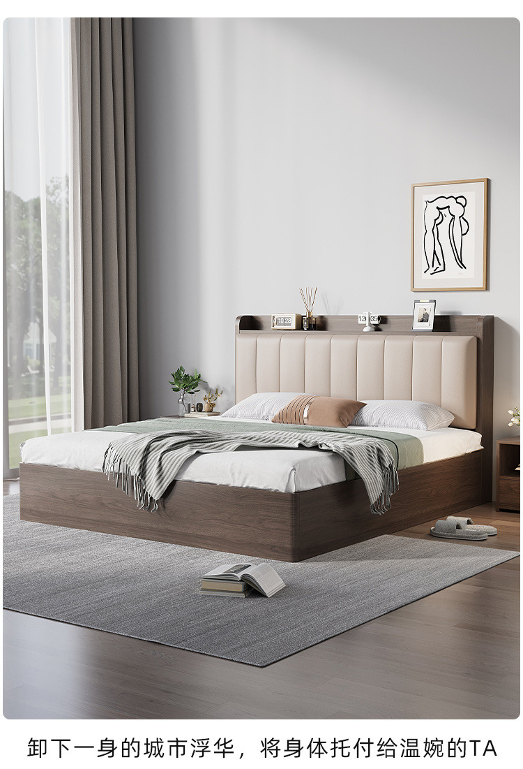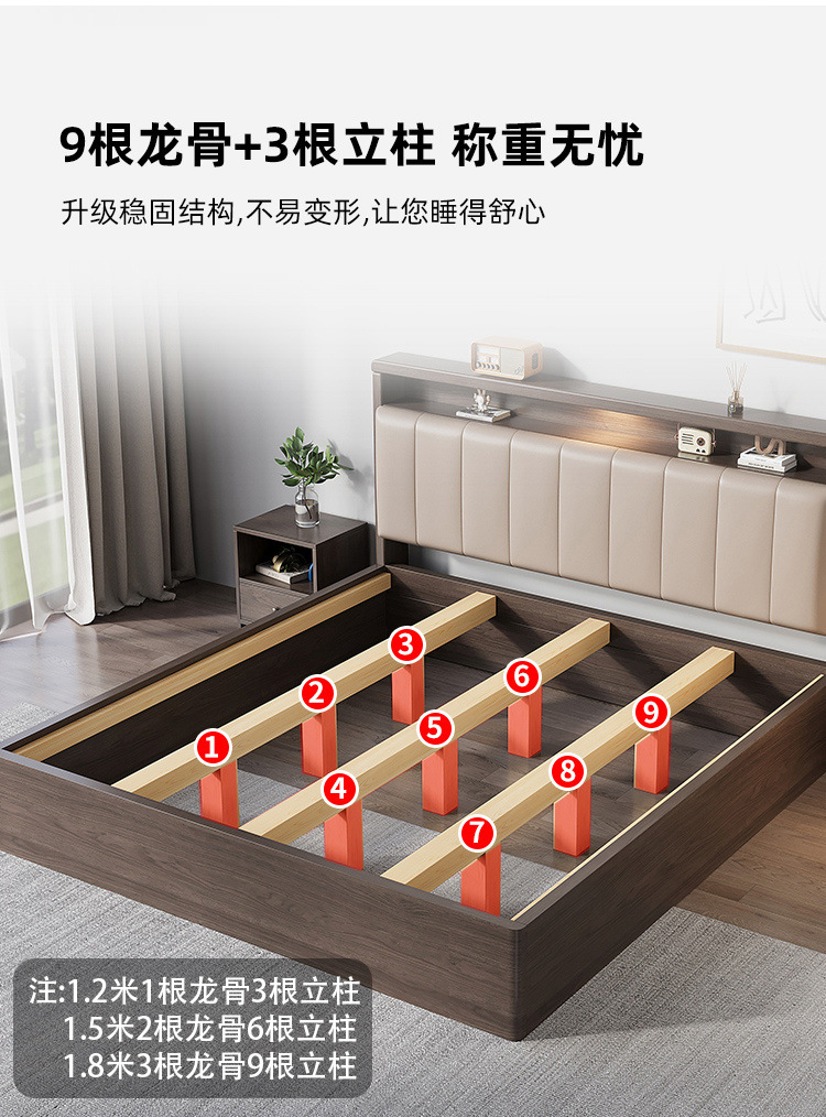 현대 간단한 단단한 나무 침대 1.8 가구 더블 침대 마스터 침실 1.5 싱글 침대 판 침대 임대 방 1.2 침대 프레임스토어 가기