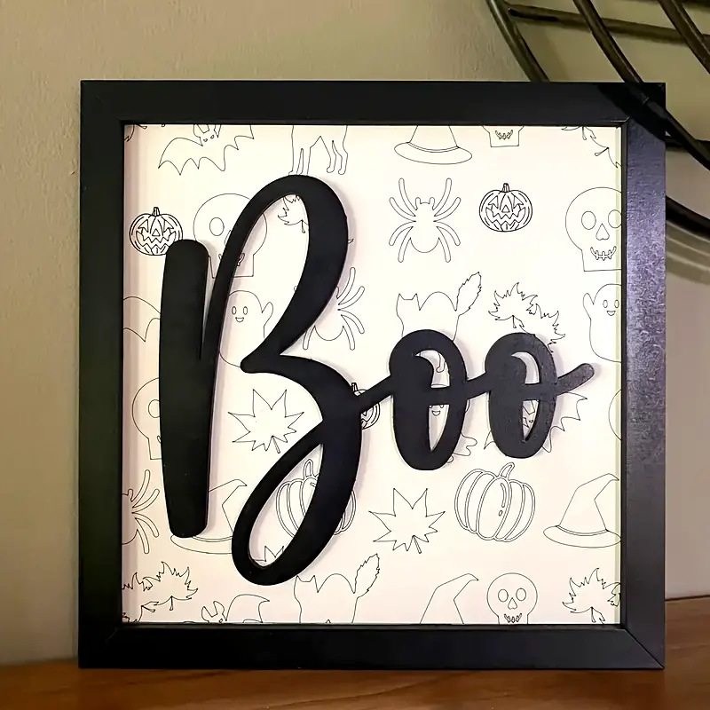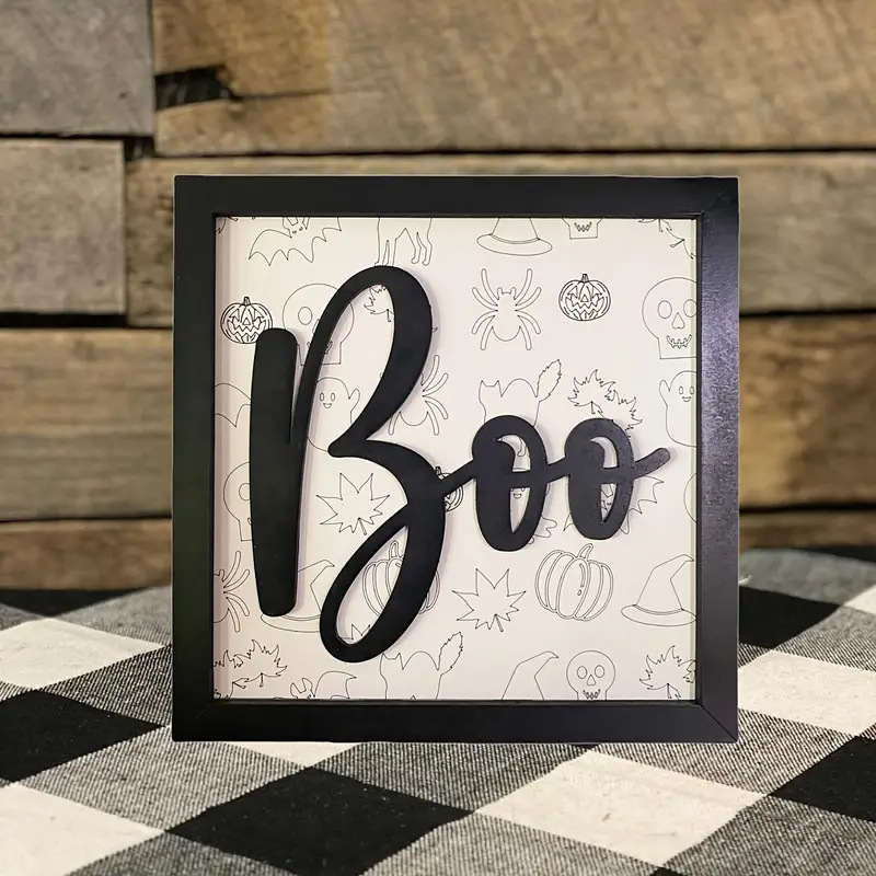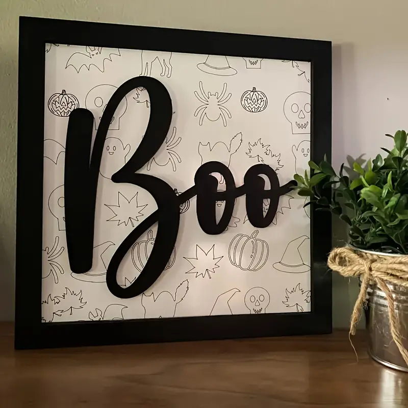 국경 새로운 할로윈 BOO 나무 사진 프레임 벽 스티커 홈 장식 벽 나무 공예스토어 가기