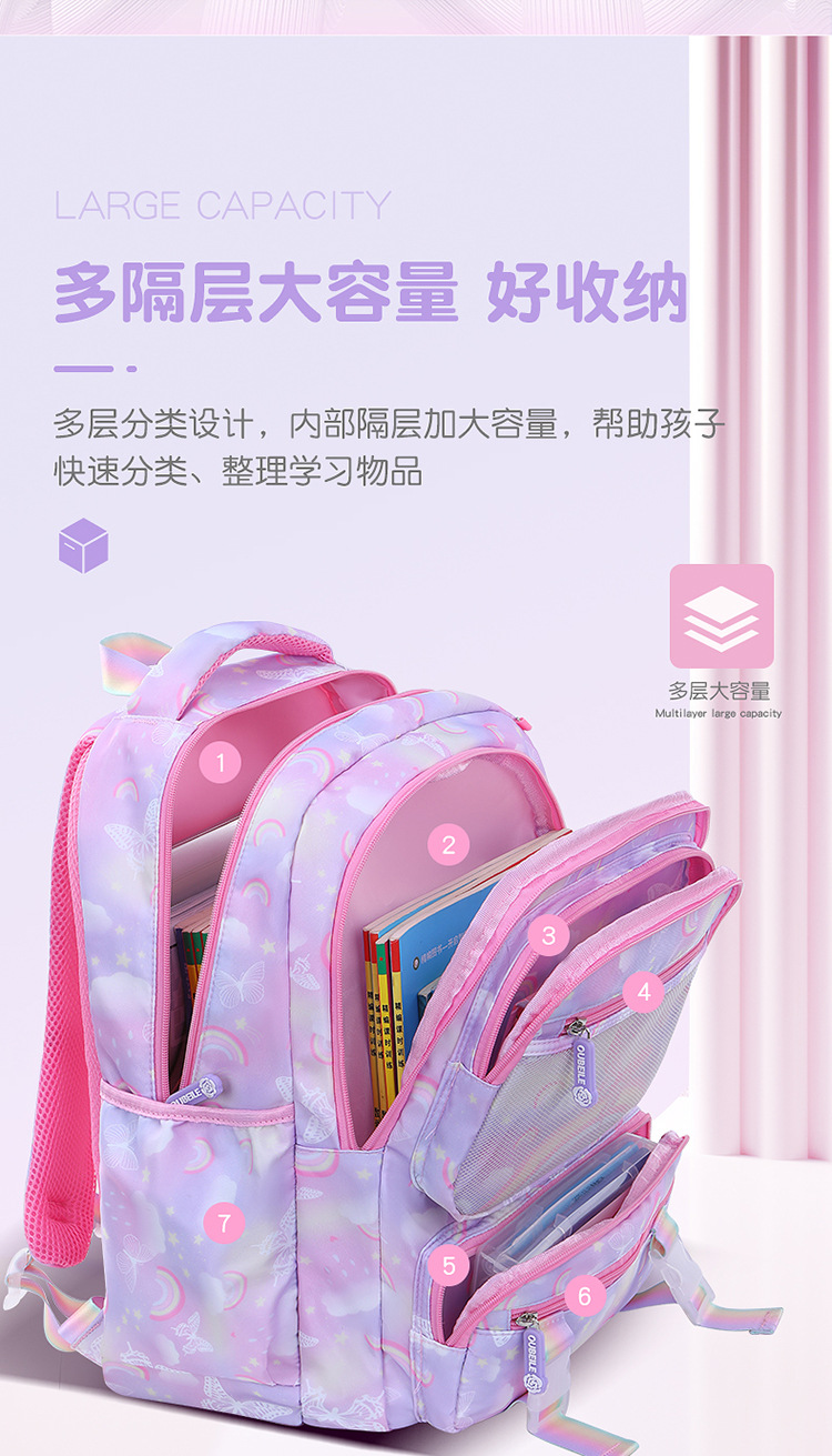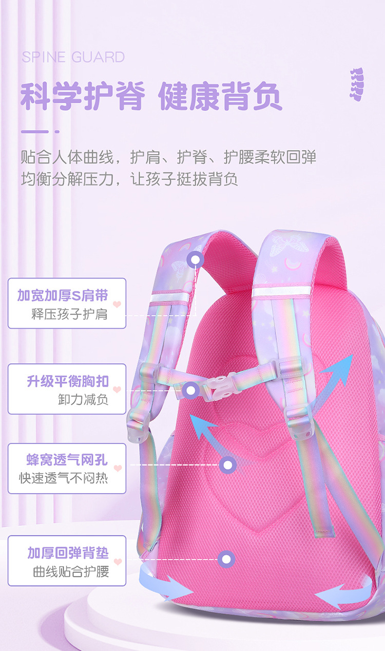 초등학교 여학생을위한 새로운 Schoolbag 13-6 학년 어린이 경량 경량 경량 경량 배낭 리지 보호 배낭