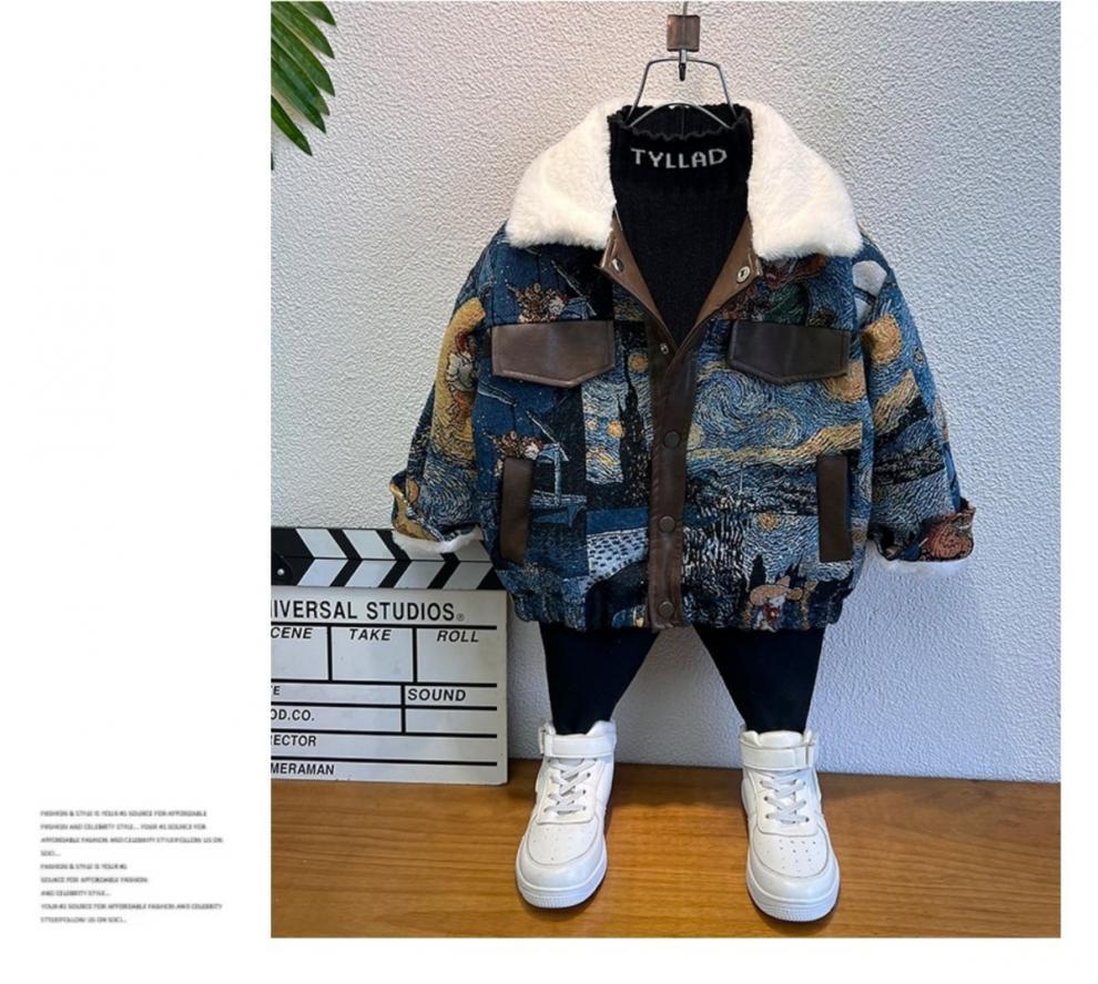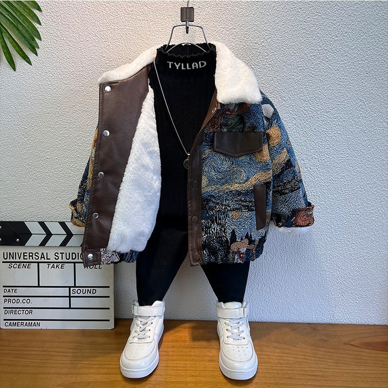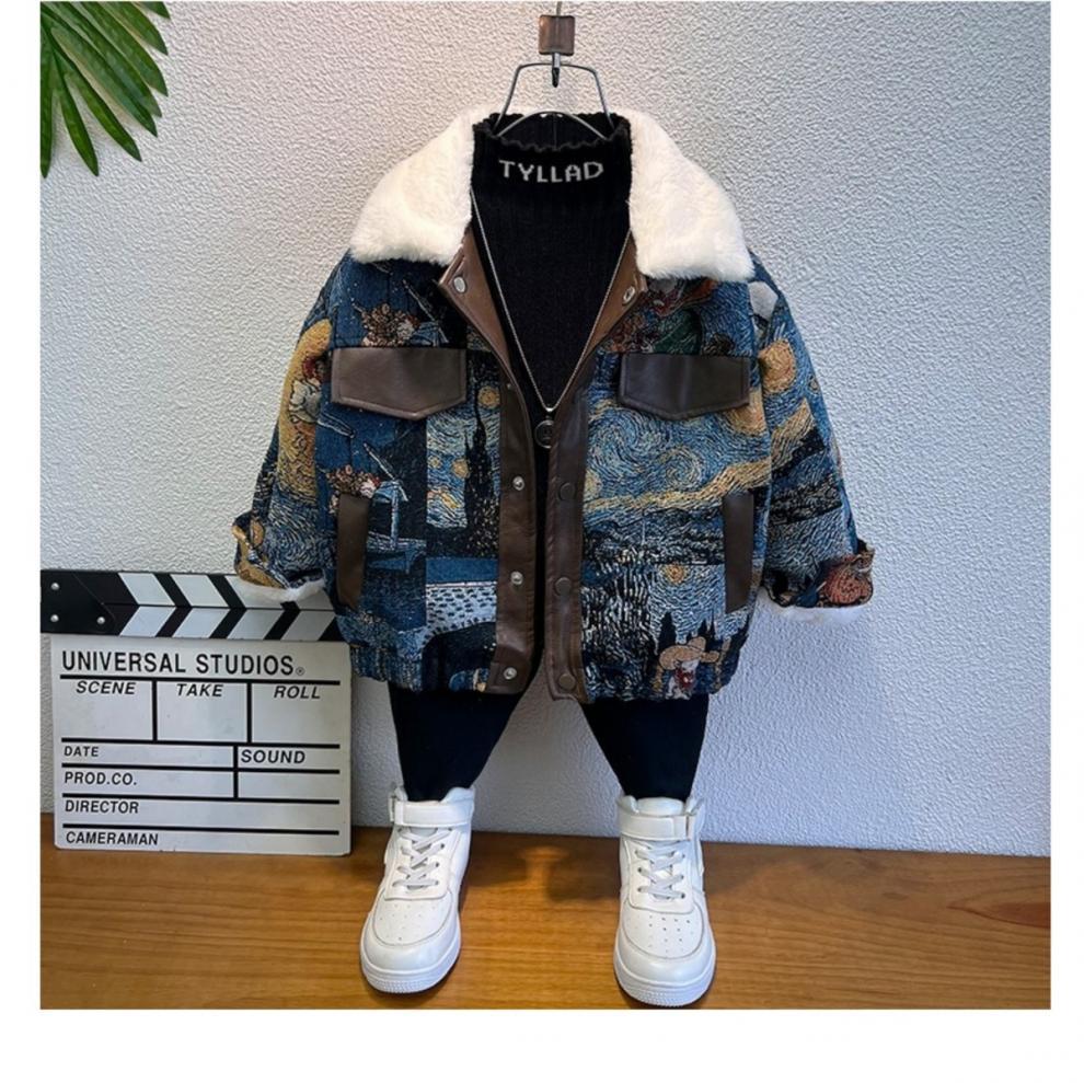 소년의 겨울 기모 두꺼운 코트 2023 새로운 아기 옷 가을과 겨울 소년 코트 어린이 겨울 가죽 자켓스토어 가기