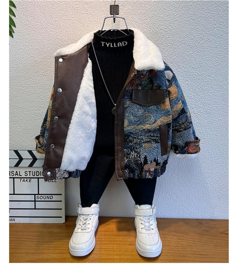소년의 겨울 기모 두꺼운 코트 2023 새로운 아기 옷 가을과 겨울 소년 코트 어린이 겨울 가죽 자켓