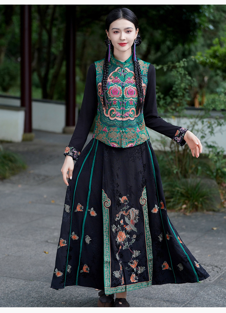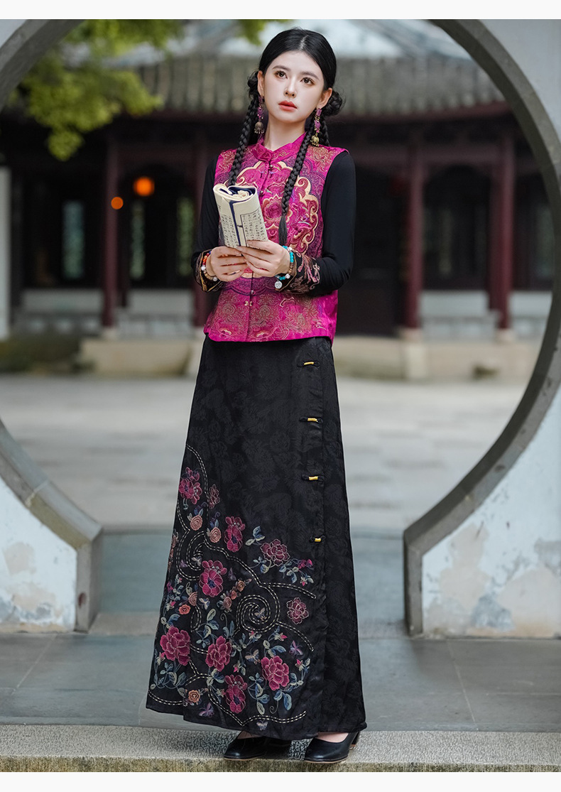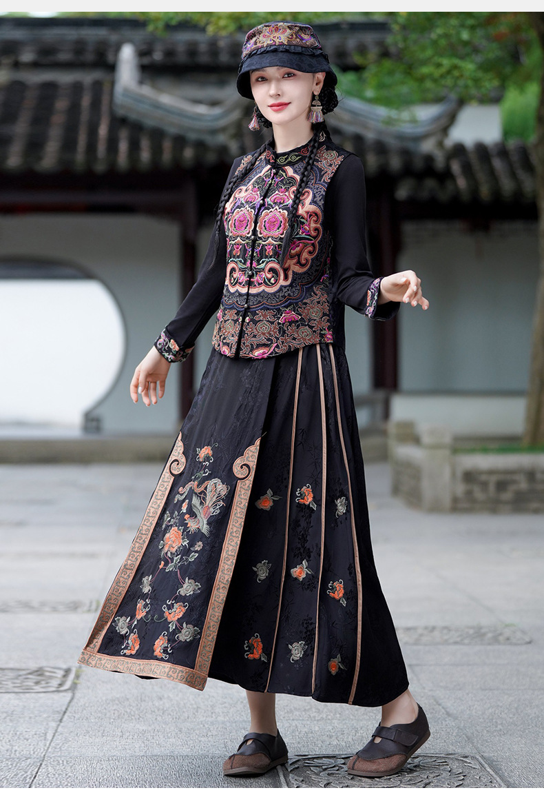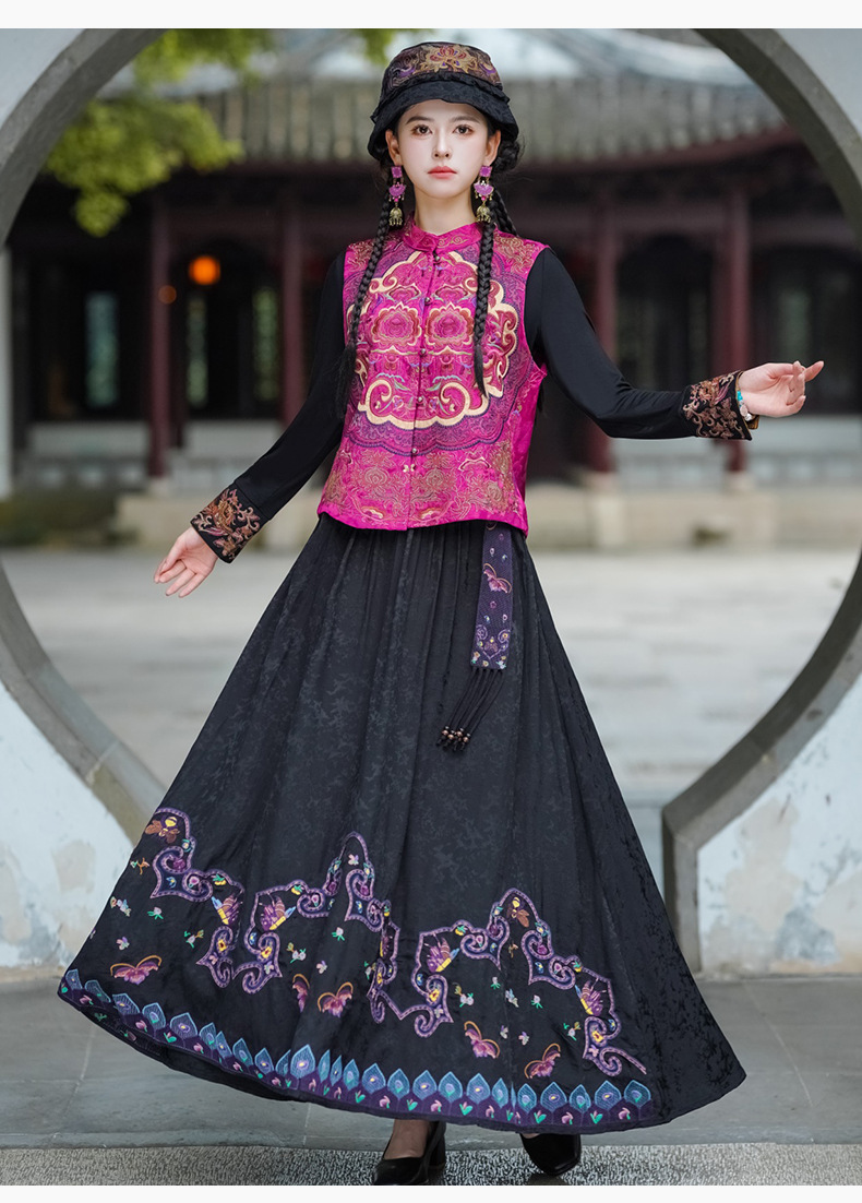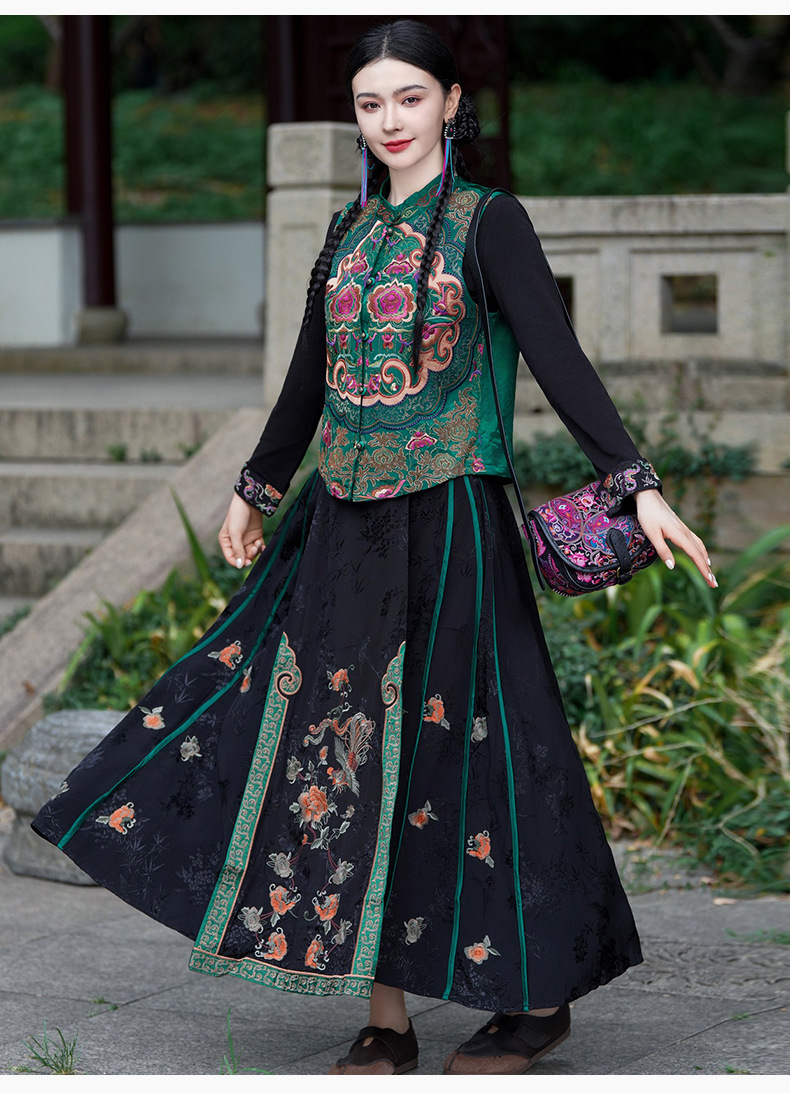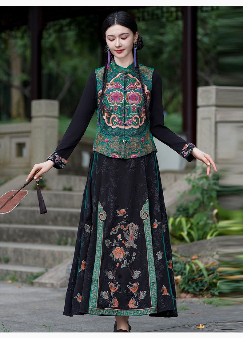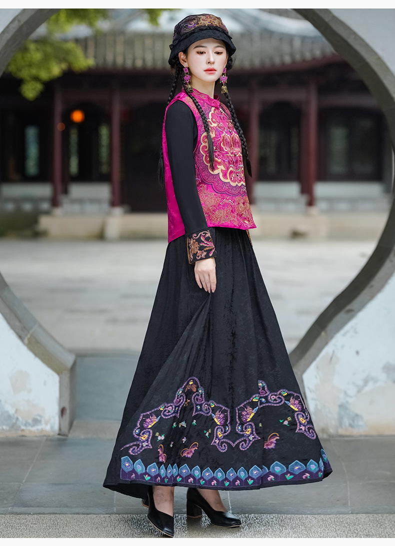 중공업 수놓은 조끼 여성 조끼 레트로 레트로 민소매 아우터웨어 2024 가을 신민족스타일 웨이스트밴드 조끼 재킷
