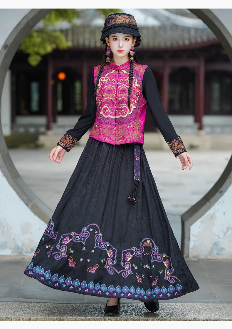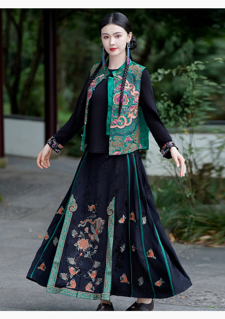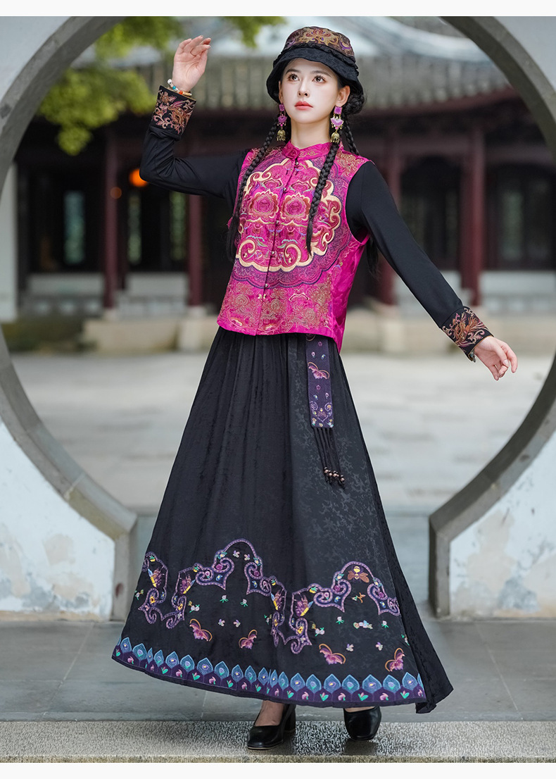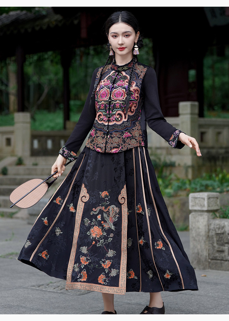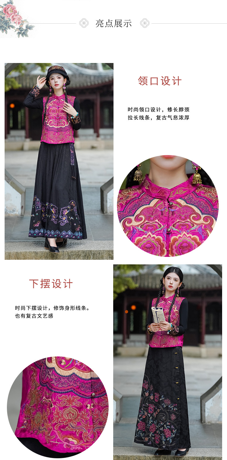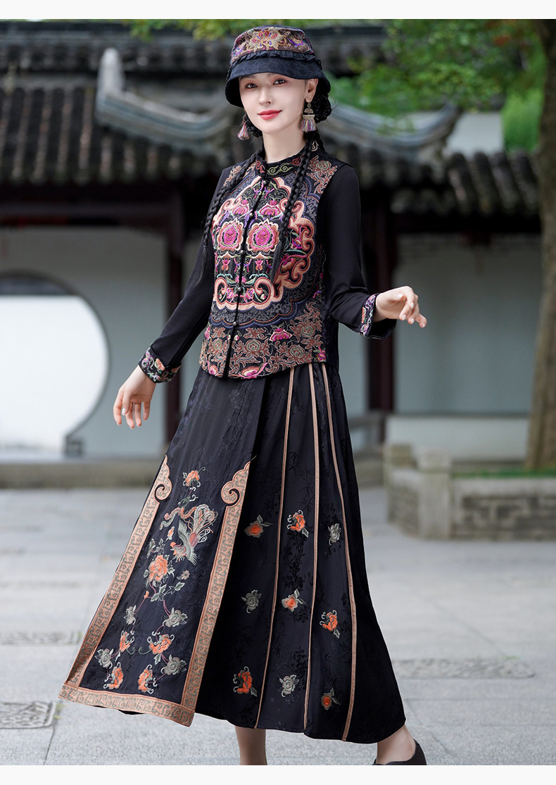 중공업 수놓은 조끼 여성 조끼 레트로 레트로 민소매 아우터웨어 2024 가을 신민족스타일 웨이스트밴드 조끼 재킷