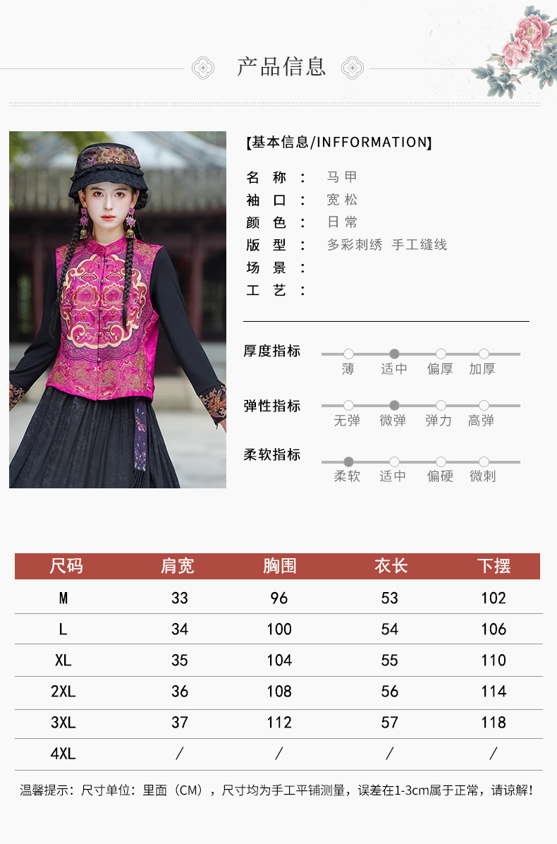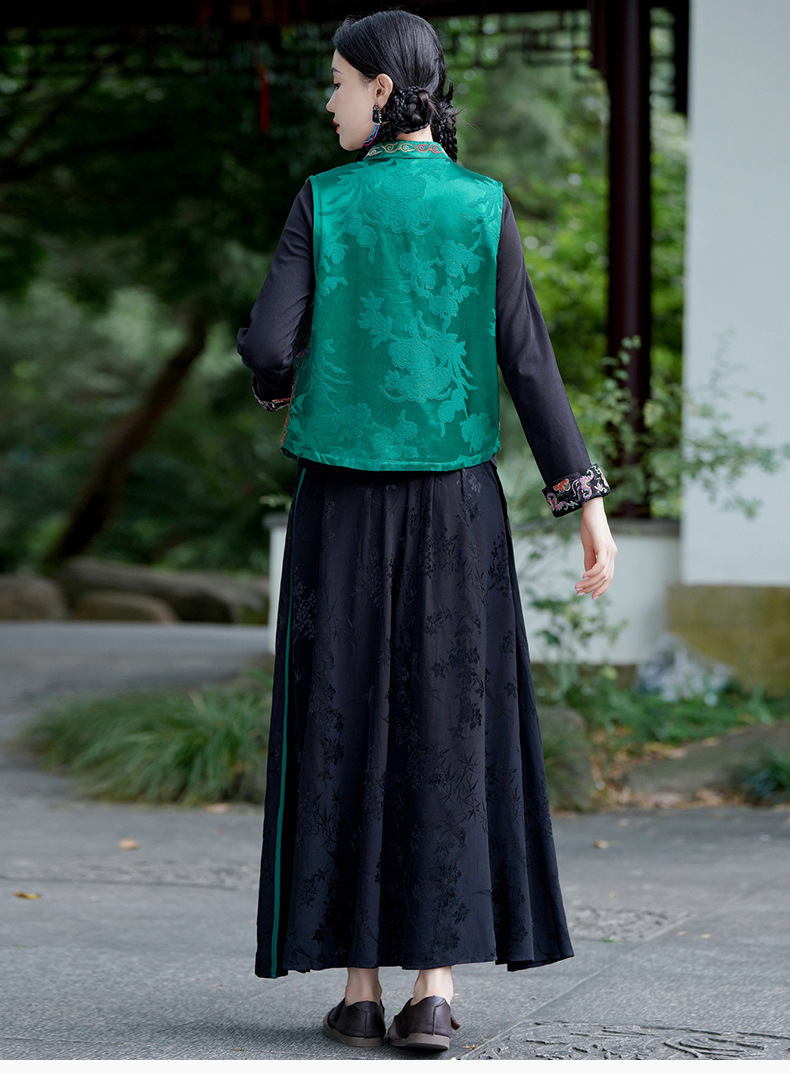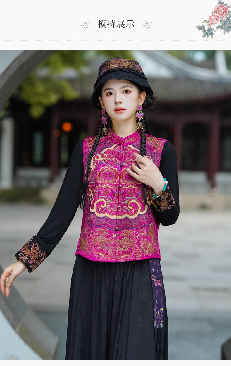 중공업 수놓은 조끼 여성 조끼 레트로 레트로 민소매 아우터웨어 2024 가을 신민족스타일 웨이스트밴드 조끼 재킷스토어 가기