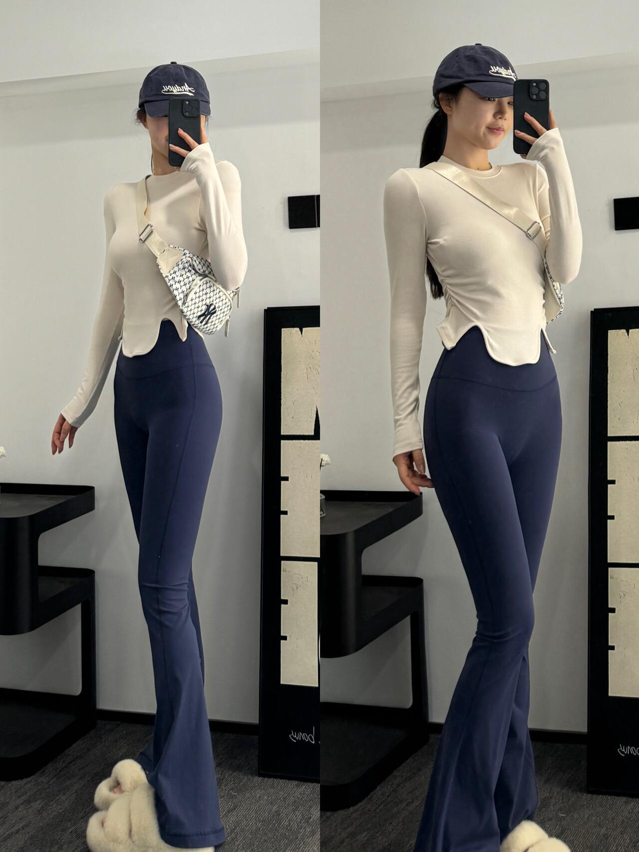 Lulu 폭발 Groove30-inch 여성의 높은 허리 플라 바지 포켓 알몸 요가 스포츠 캐주얼 바지