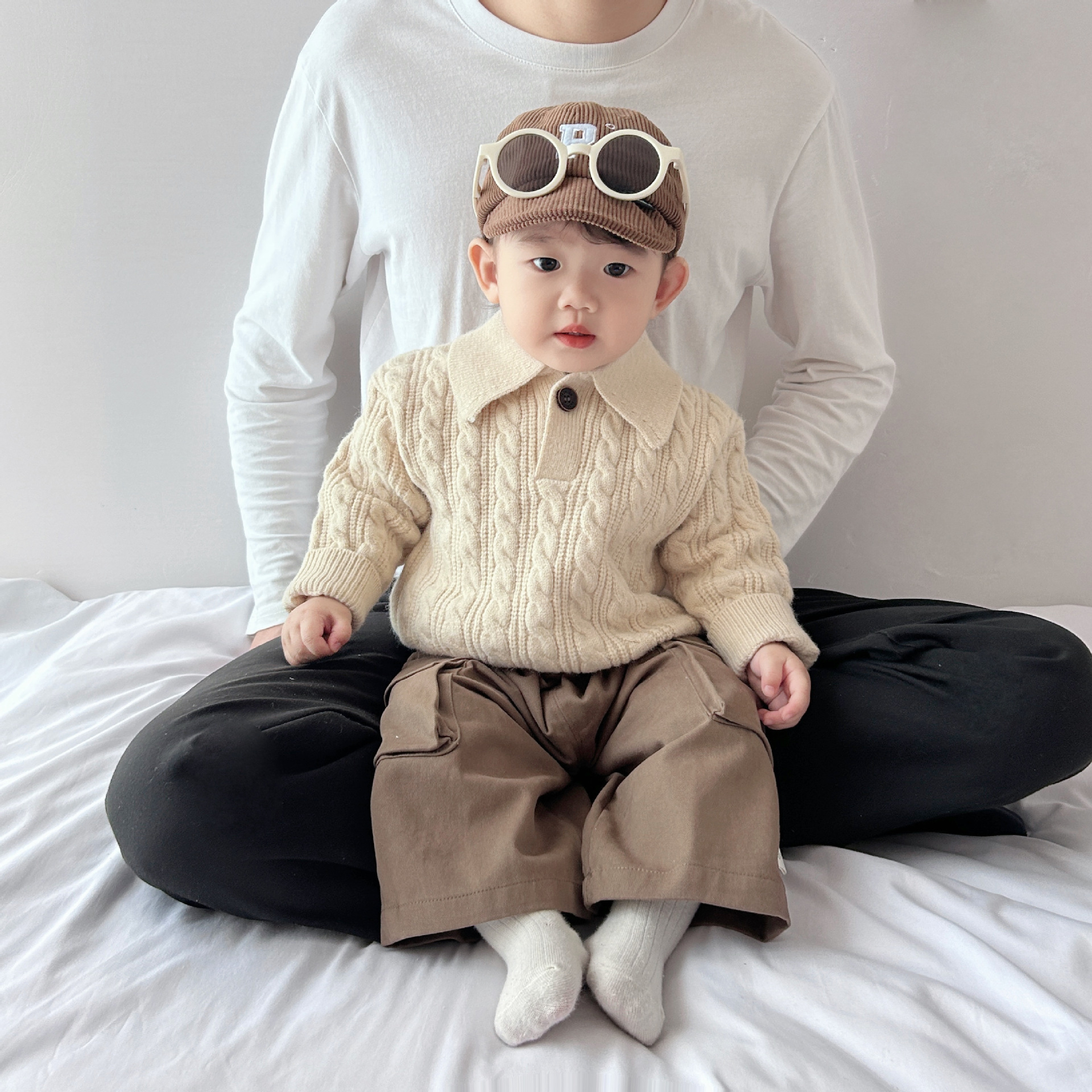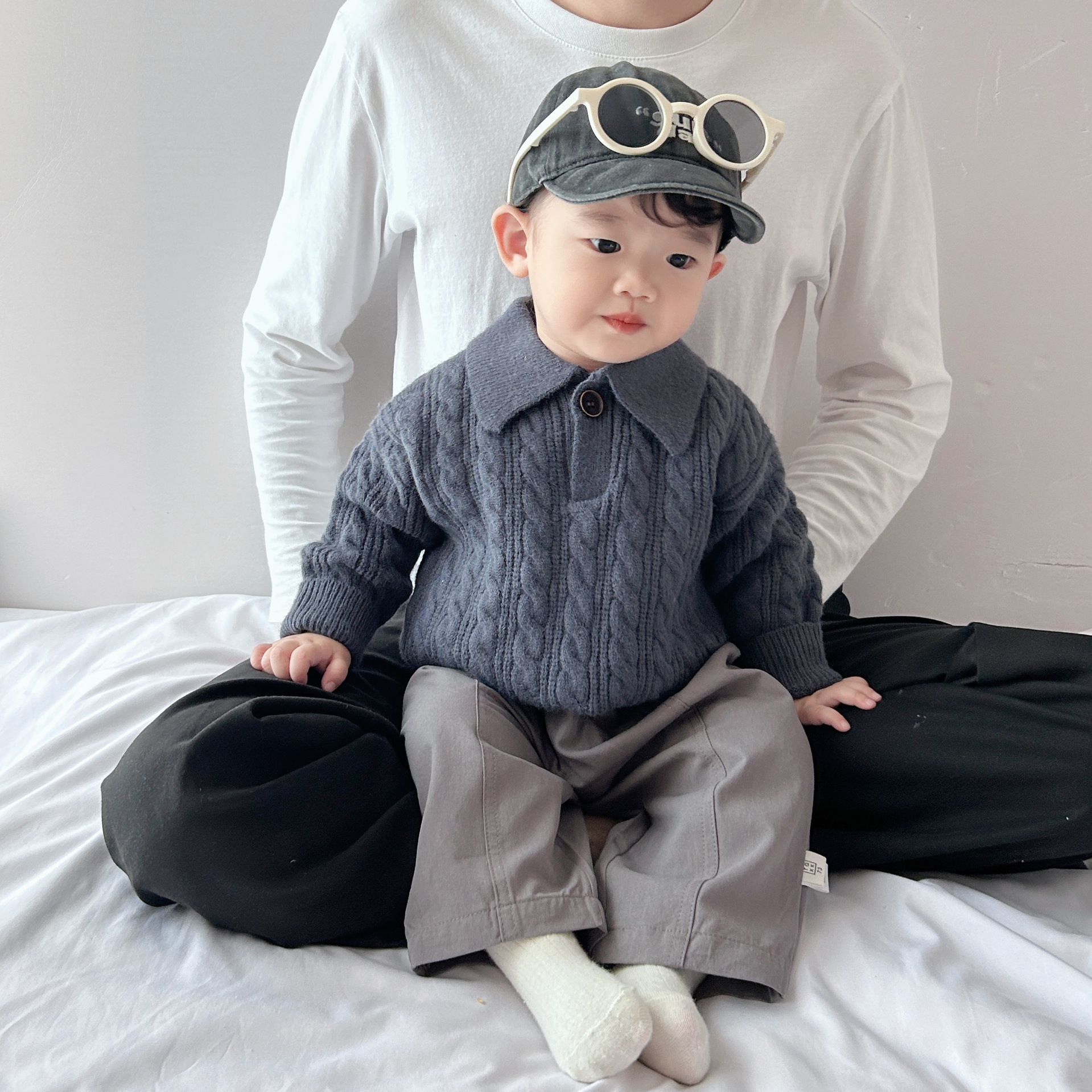 한국 어린이 세련된 옷깃 스웨터 유니섹스 베이비 보이즈와 걸스 트위스트 올 매치 니트 스웨터 가을과 겨울 따뜻한 탑스토어 가기