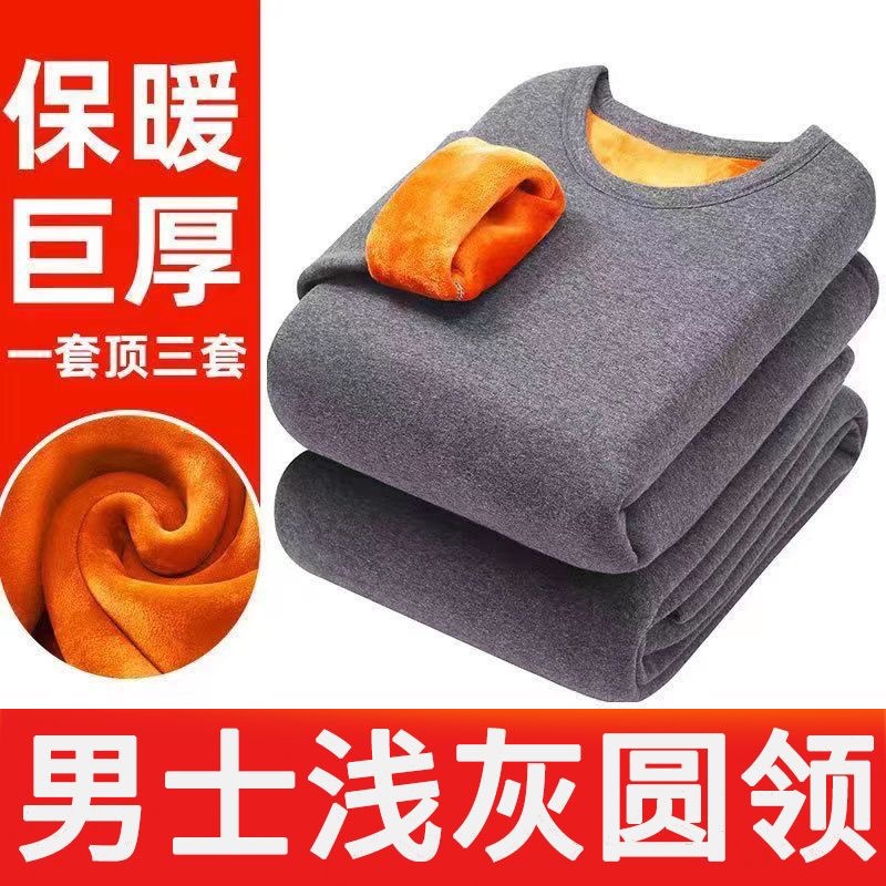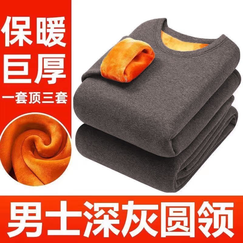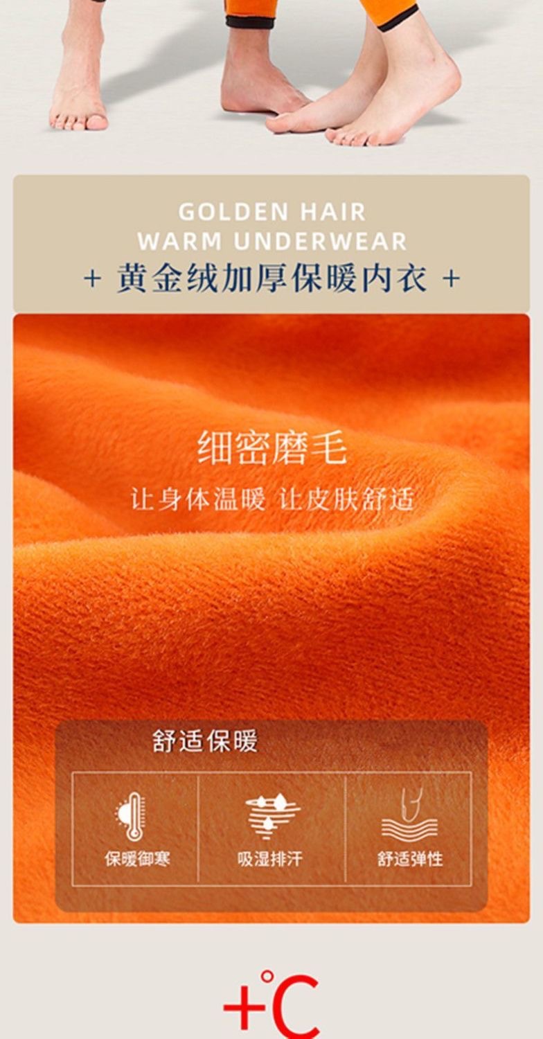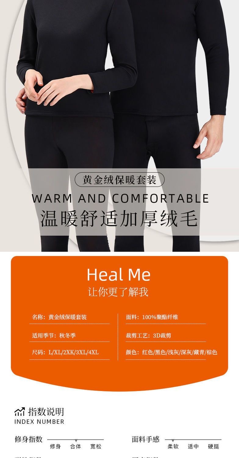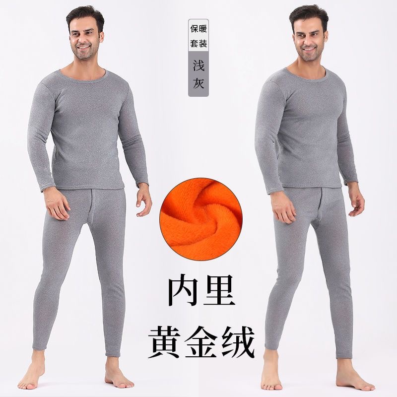 골드 벨벳 열 속옷 남성과 여성의 기모 두꺼운 싱글 레이어 중년 및 노인 가을 옷과 바지 플러스 사이즈 방한 커플 세트스토어 가기