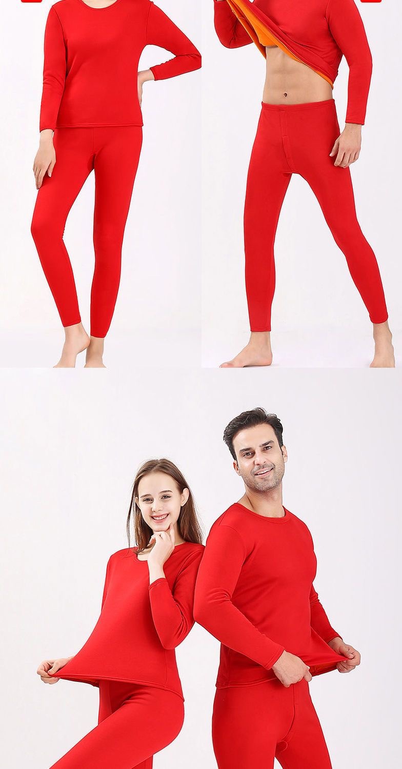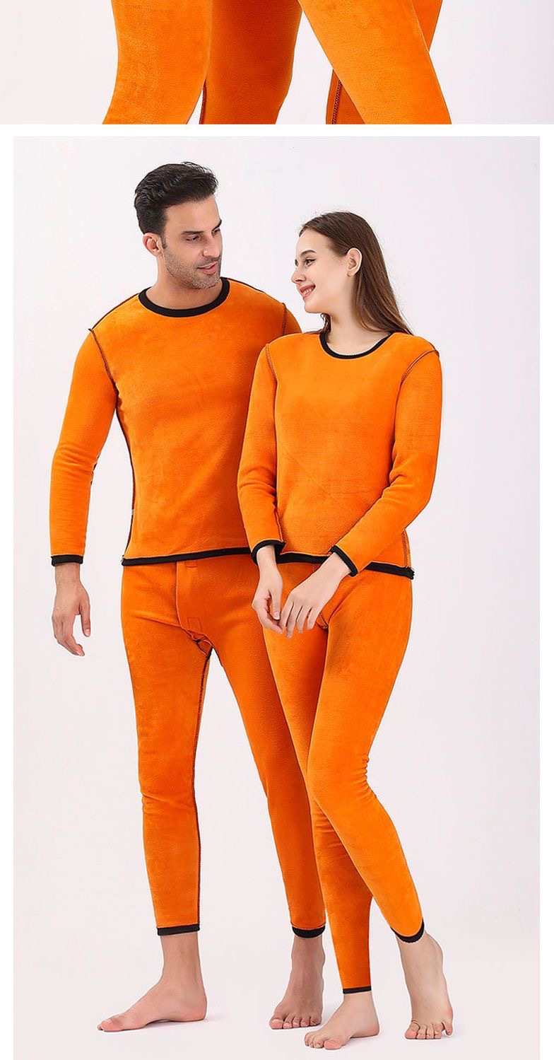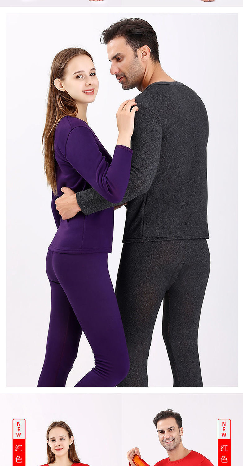 골드 벨벳 열 속옷 남성과 여성의 기모 두꺼운 싱글 레이어 중년 및 노인 가을 옷과 바지 플러스 사이즈 방한 커플 세트