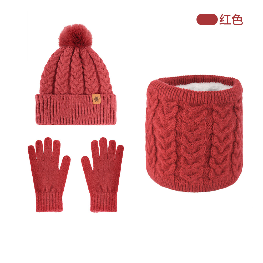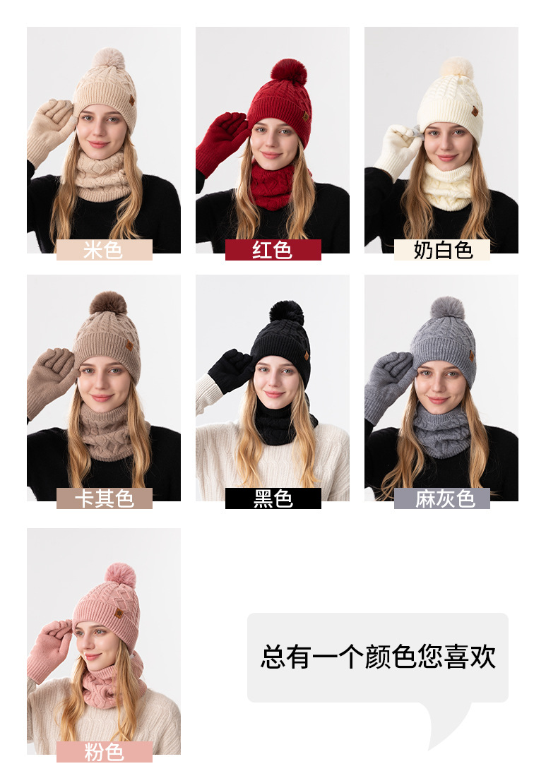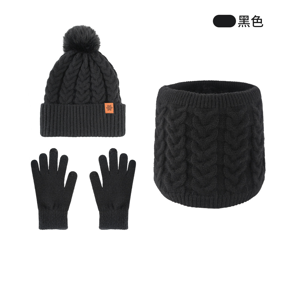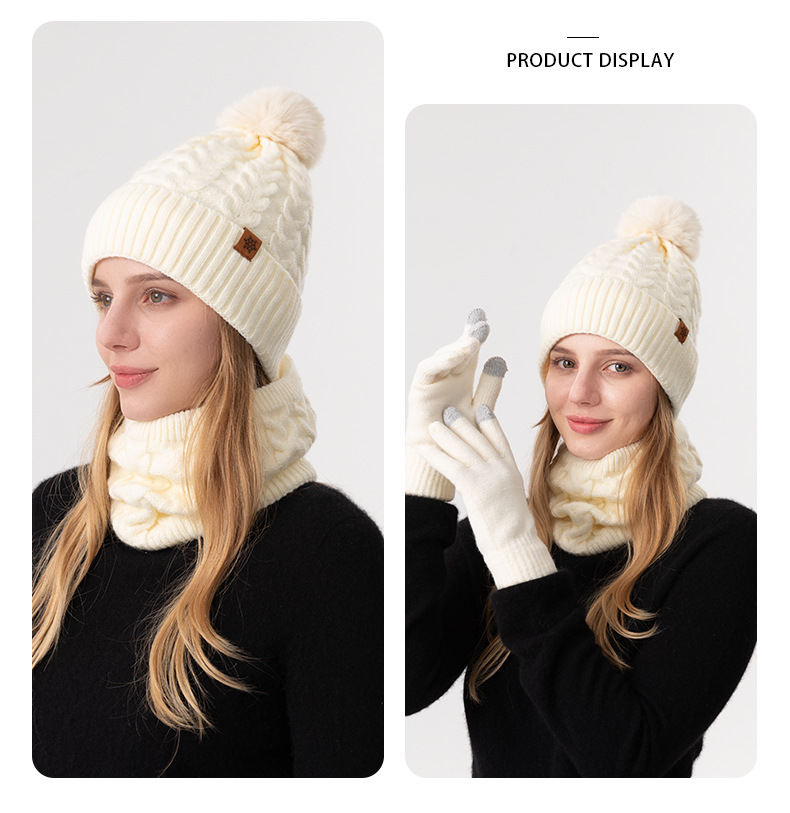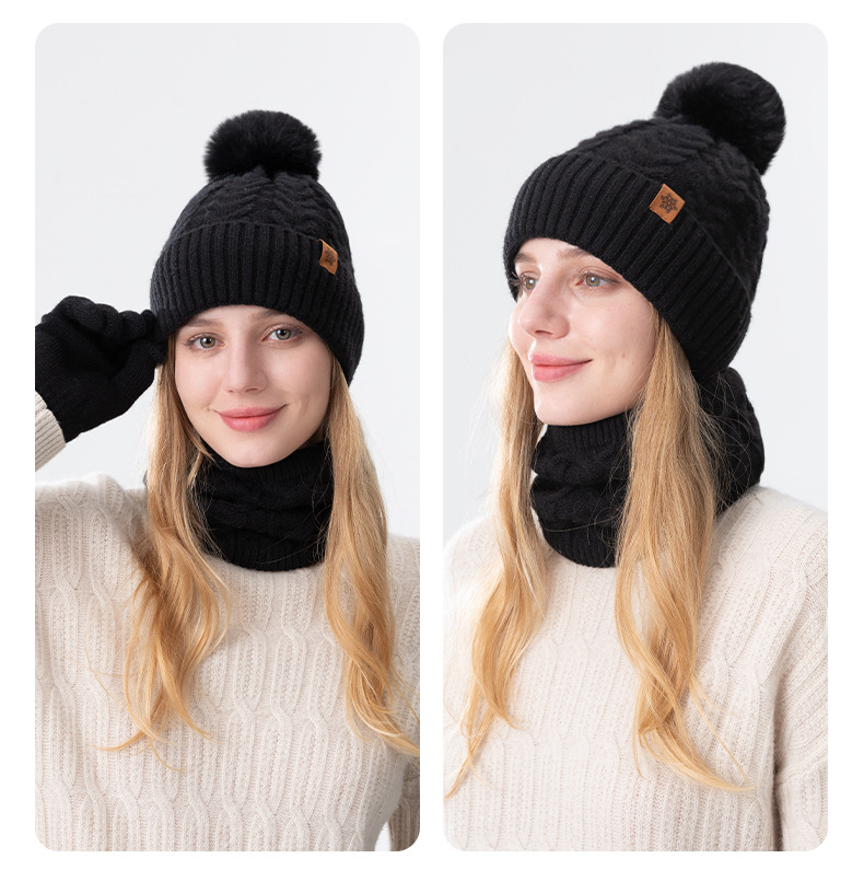 니트 모자 여성의 겨울 모자 스카프 장갑 3 피스 세트 야외 냉장 따뜻한 솔리드 컬러 니트 모자