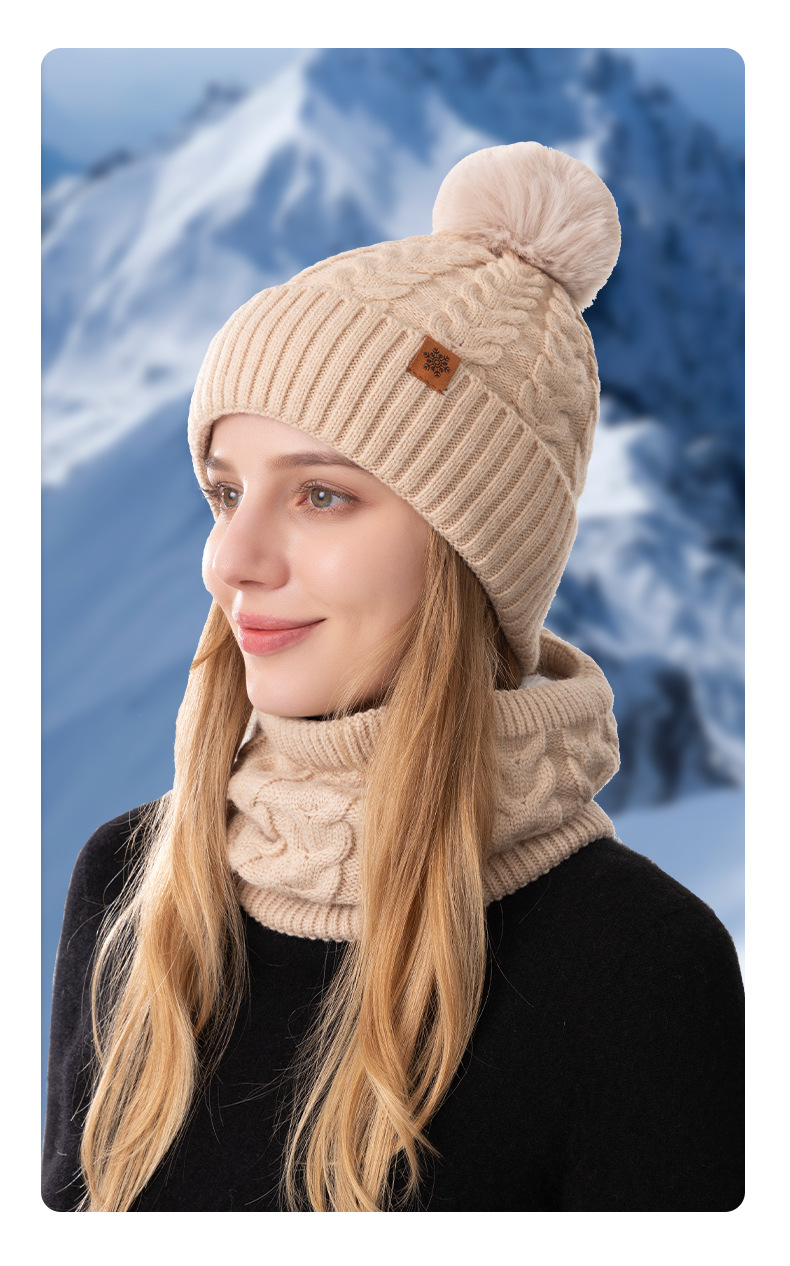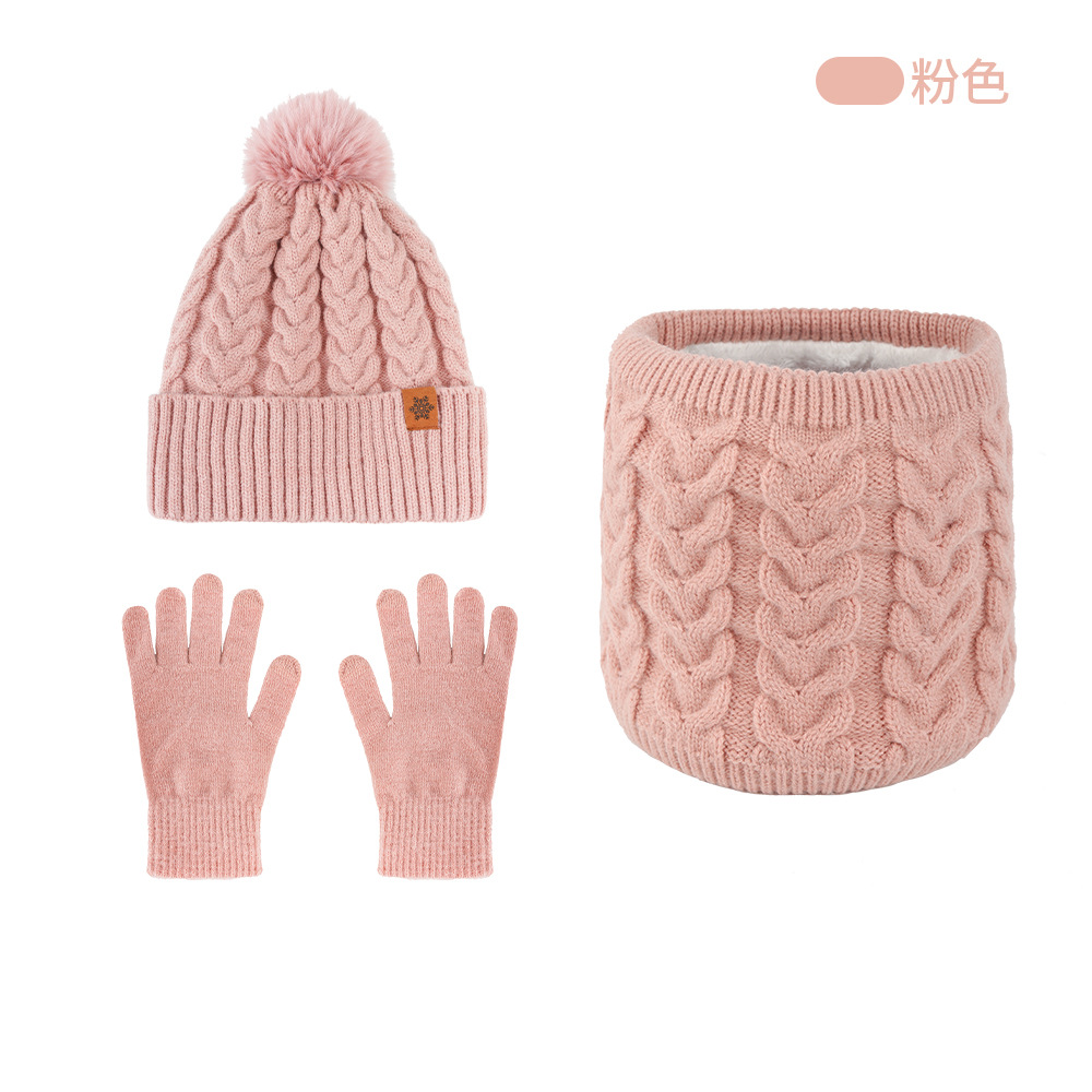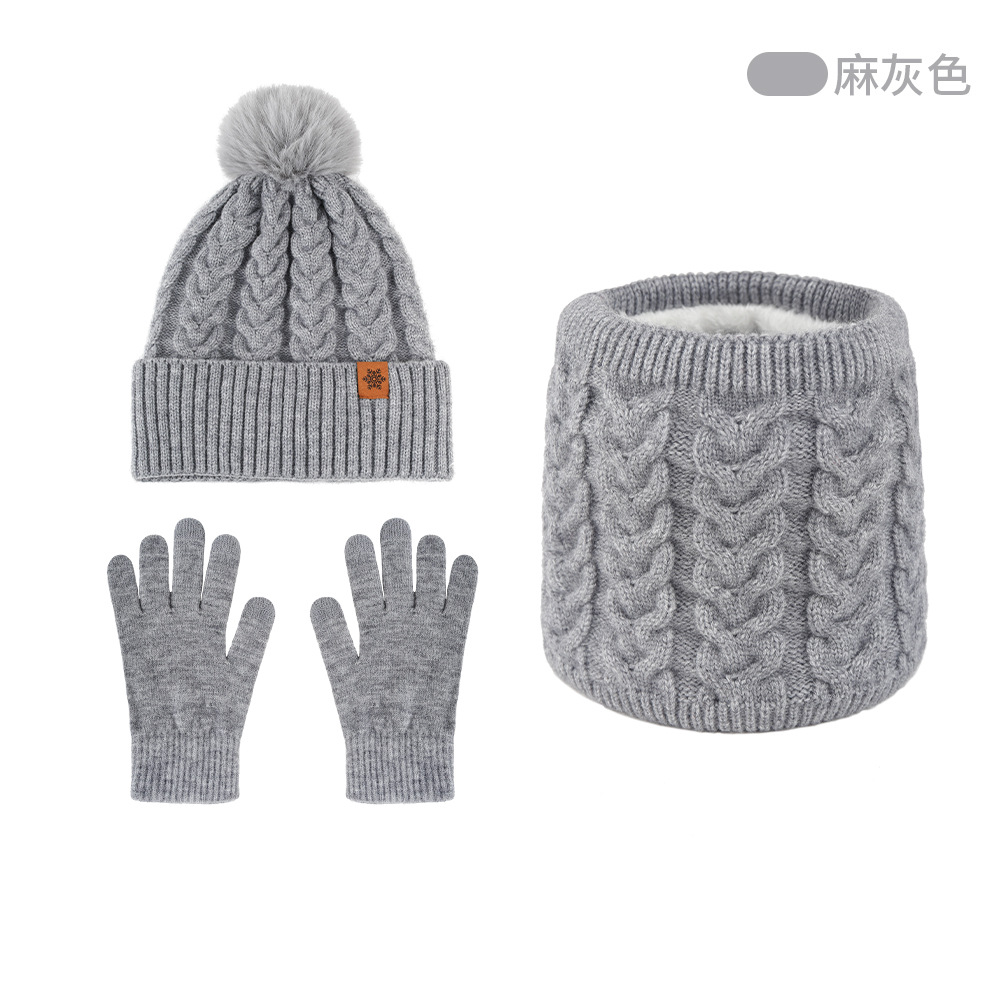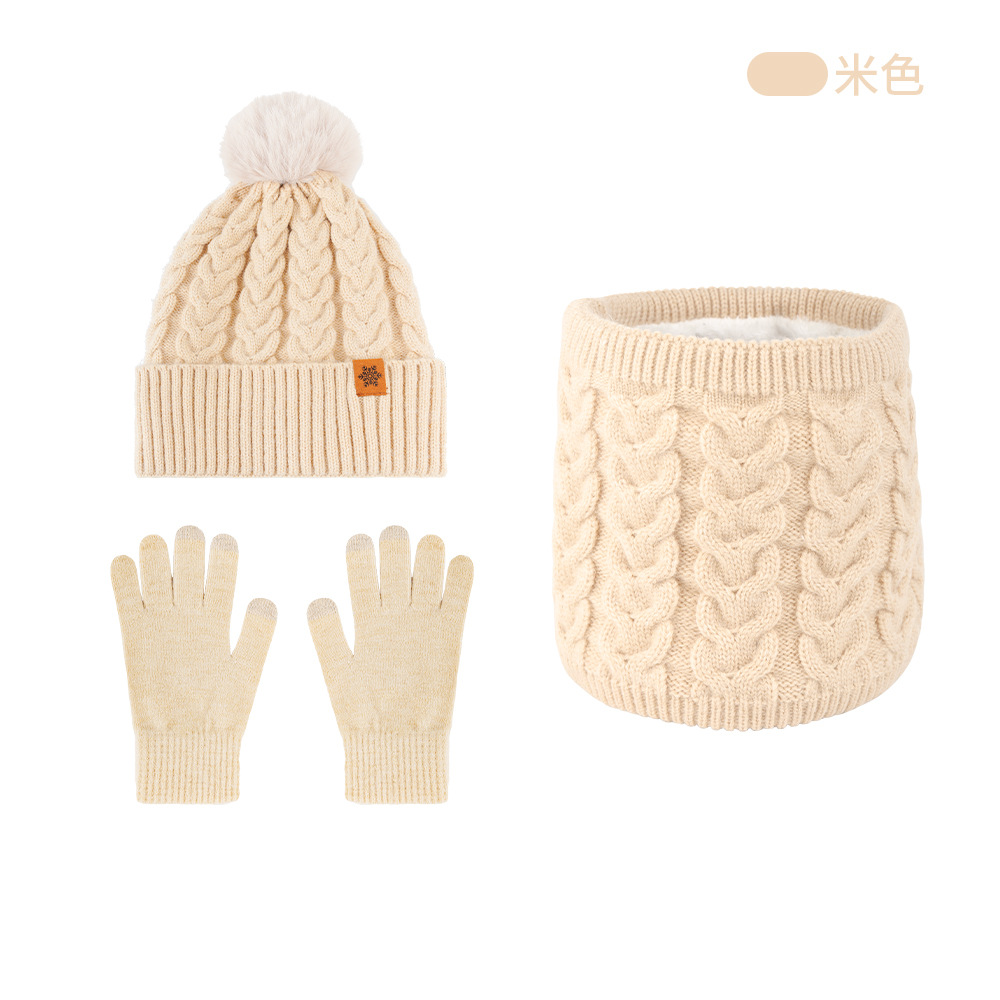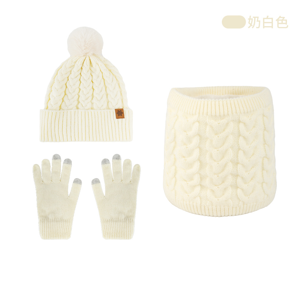 니트 모자 여성의 겨울 모자 스카프 장갑 3 피스 세트 야외 냉장 따뜻한 솔리드 컬러 니트 모자