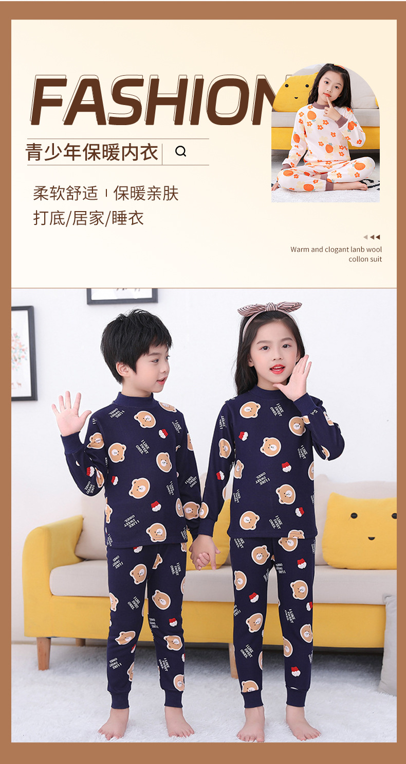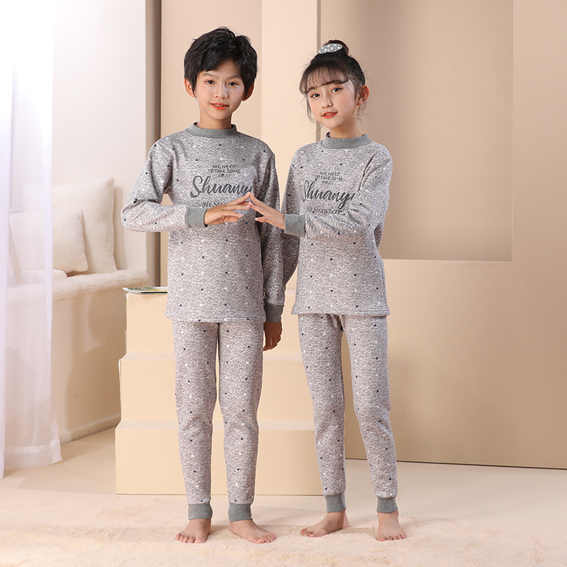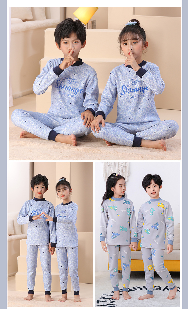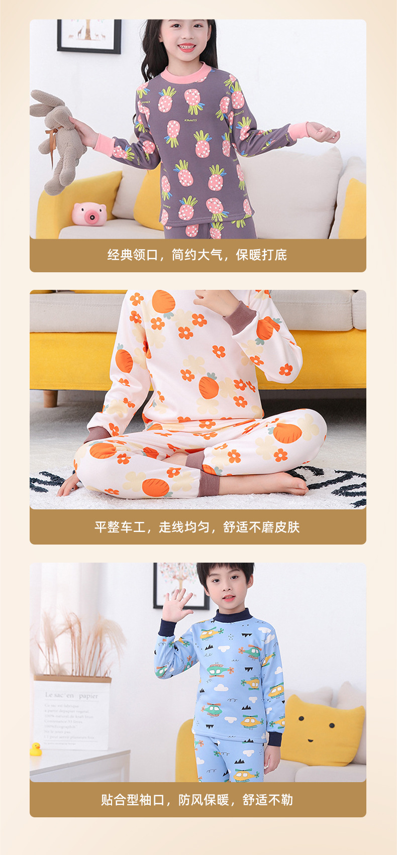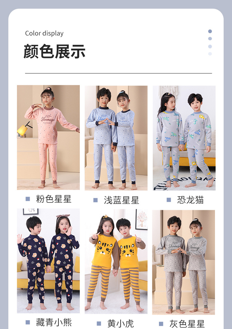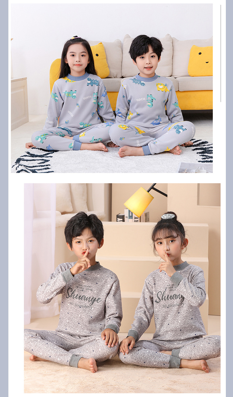 아동용 보온 속옷 세트, 유아용 벨벳 두꺼운 중간 칼라, 남아 및 여아 가을 옷 및 긴 바지, 중대형 아동용 잠옷, 가을 겨울스토어 가기