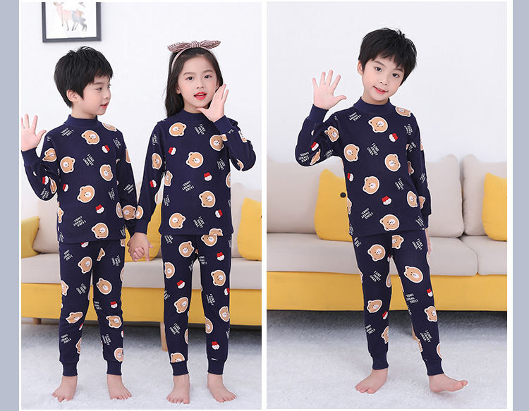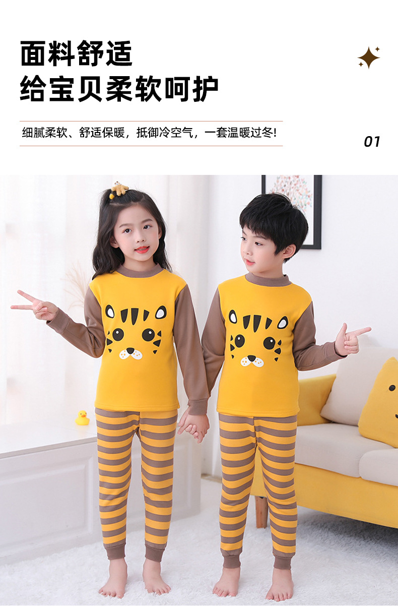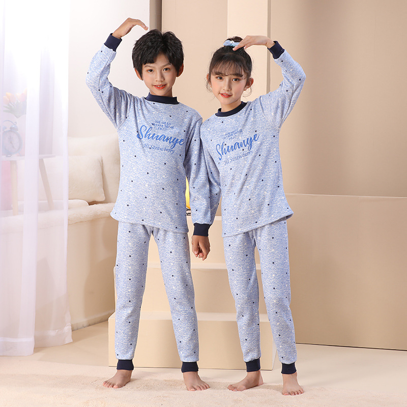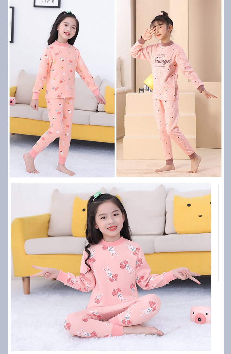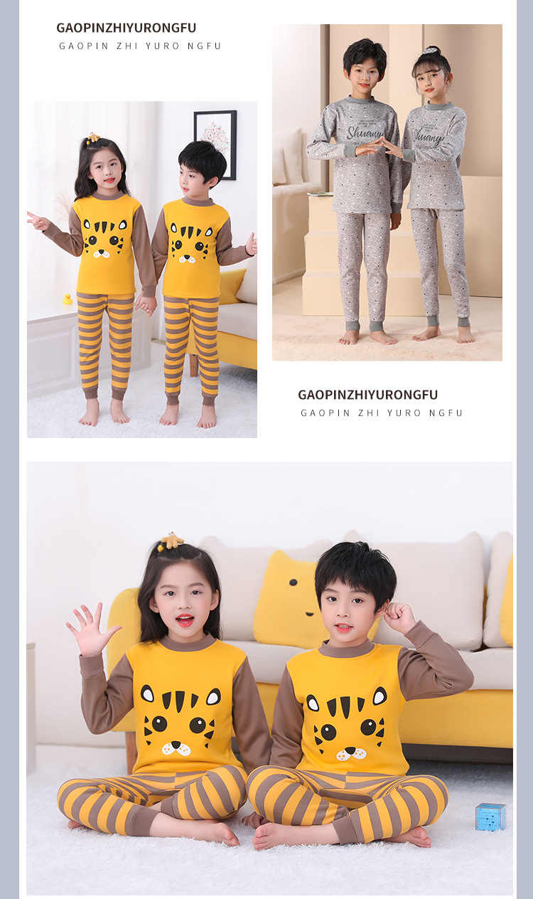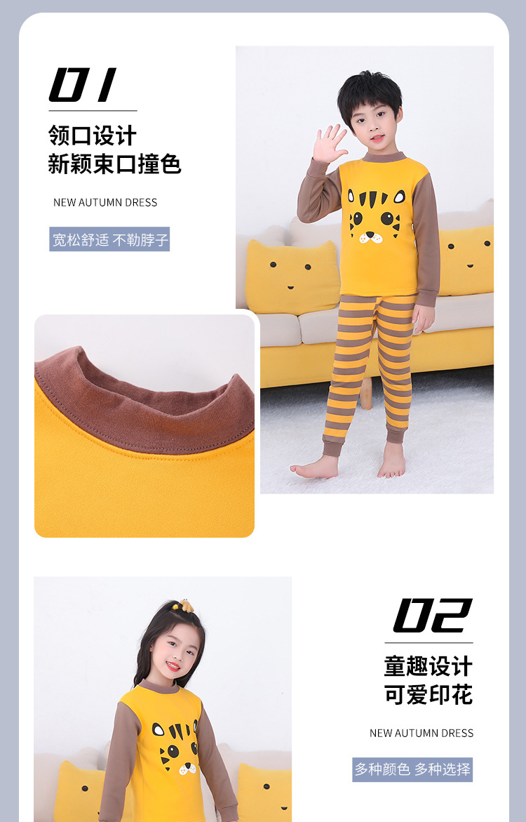 아동용 보온 속옷 세트, 유아용 벨벳 두꺼운 중간 칼라, 남아 및 여아 가을 옷 및 긴 바지, 중대형 아동용 잠옷, 가을 겨울스토어 가기